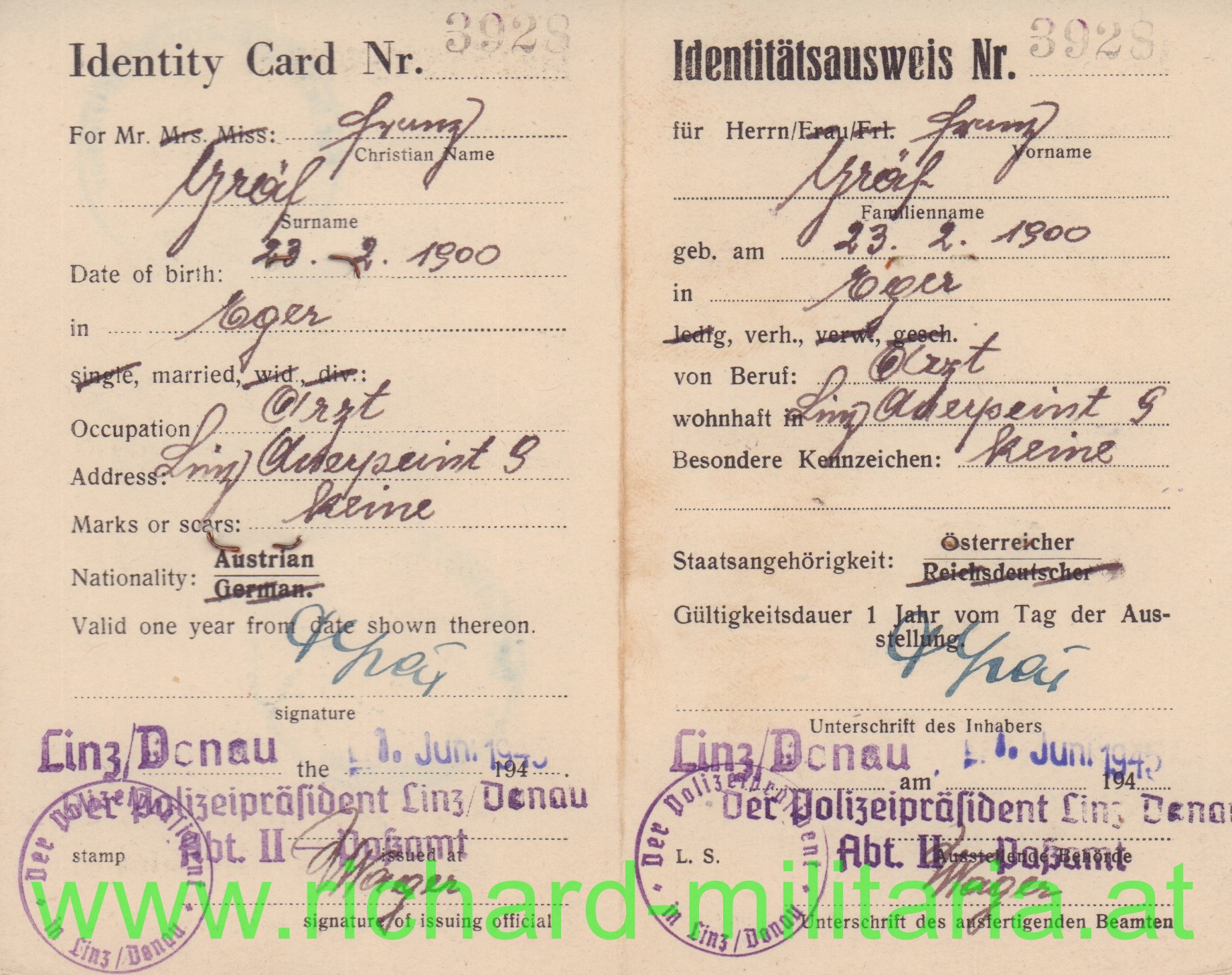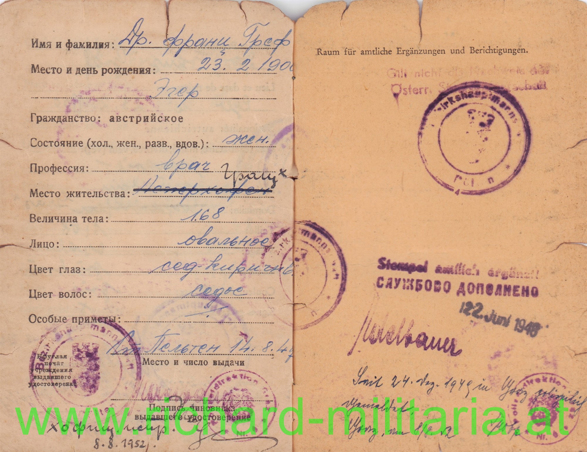 Eine interessante Lebensgeschichte - dokumentiert mit den verschiedensten Schriftstücken, Fotos und Ausweisen (!)