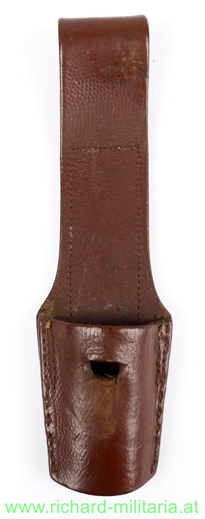 Koppelschuh zum Messerbajonett M1895 für GRIECHENLAND; rotes, starkes, genarbtes Leder, alle Nähte im guten Zustand;