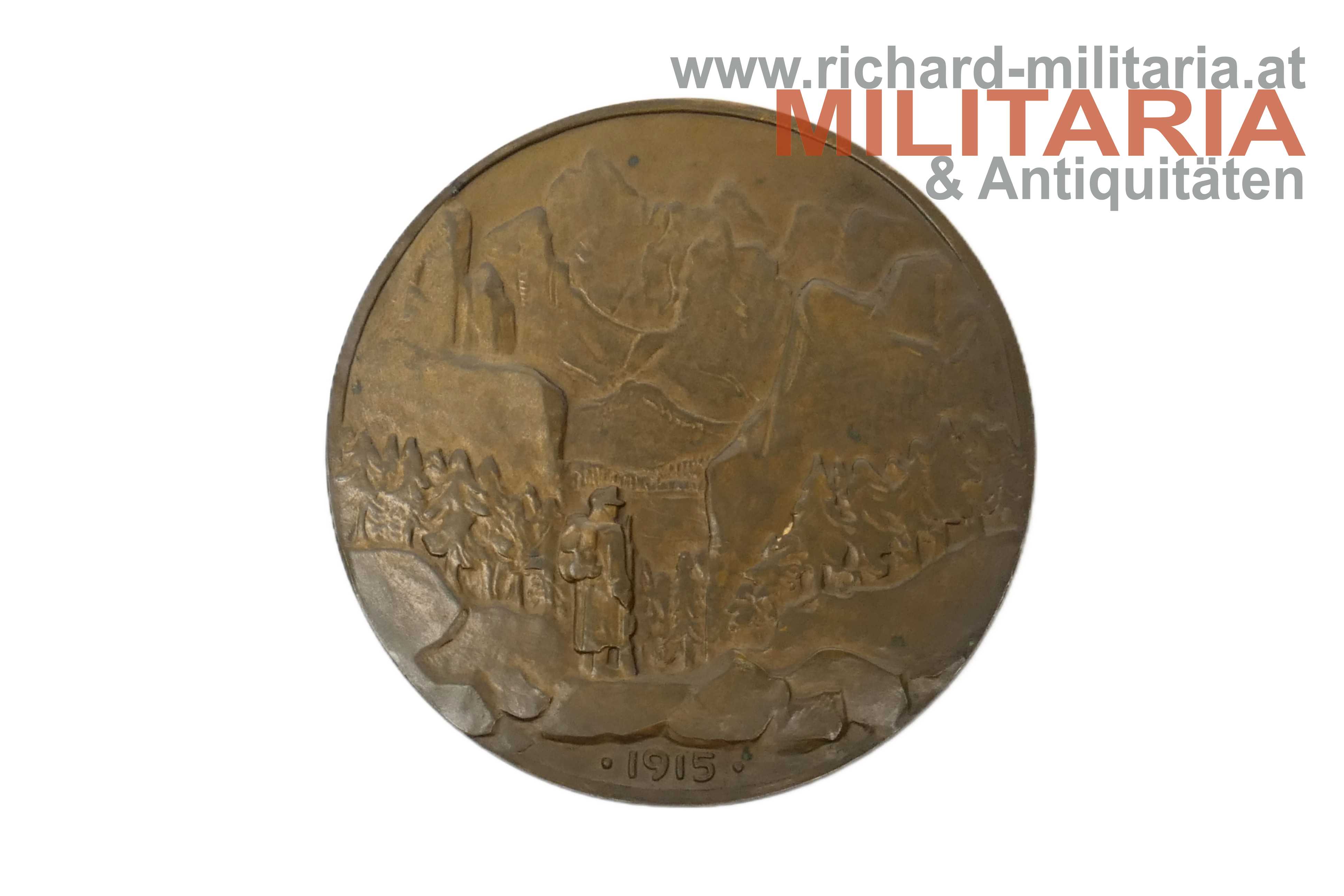 Kriegsfürsorgeamt - Bronzemedaille Generaloberst Erzherzog Eugen mit Etui; Bronze; revers Gebirgslandschaft mit einer Wache; zugehöriges rotes Etui mit goldener Deckelaufschrift;