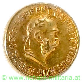Kriegsmedaille 1873 - Auflage für die Feldspange, Tombak vergoldet, 2 Splinte, DM ca.: 9mm