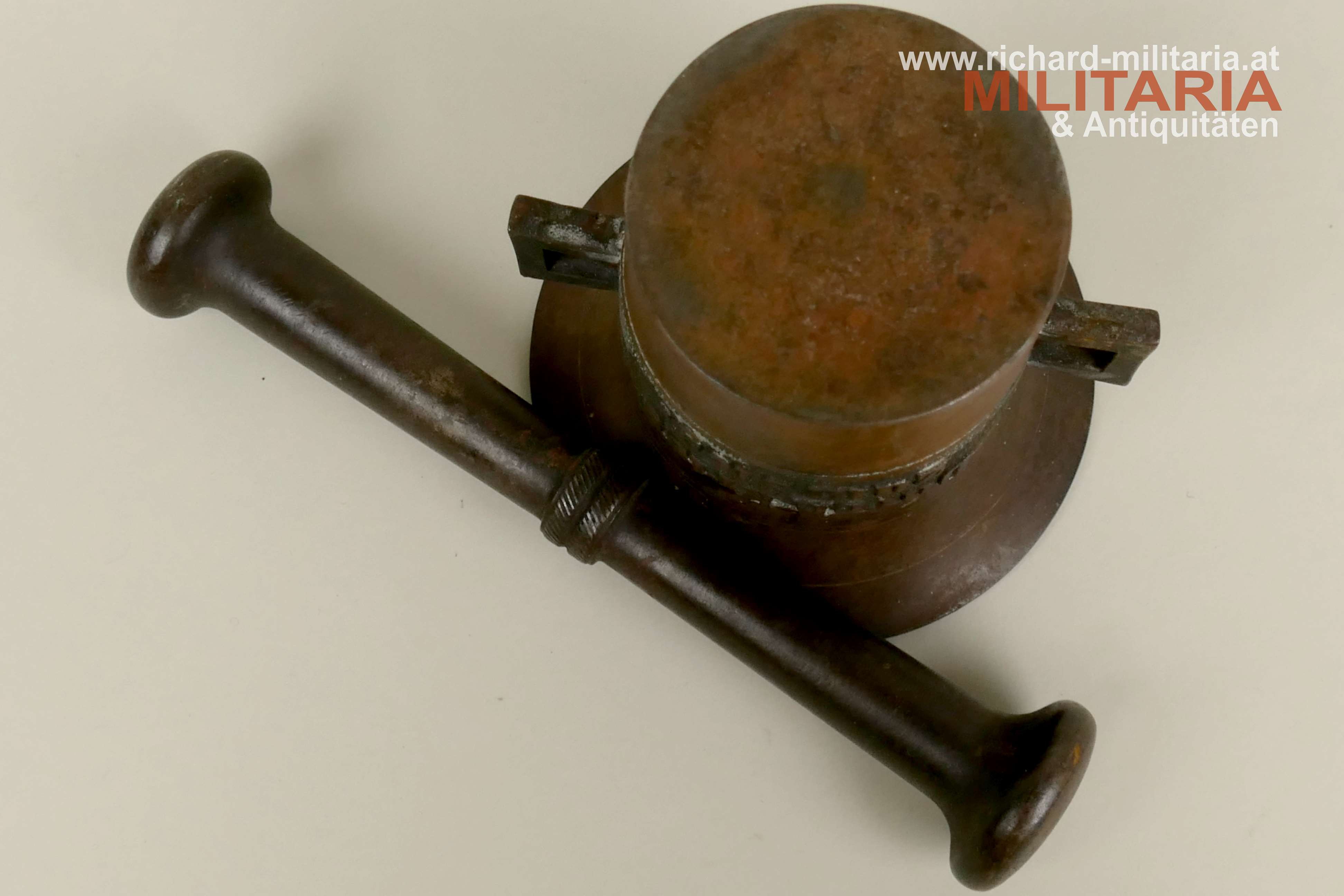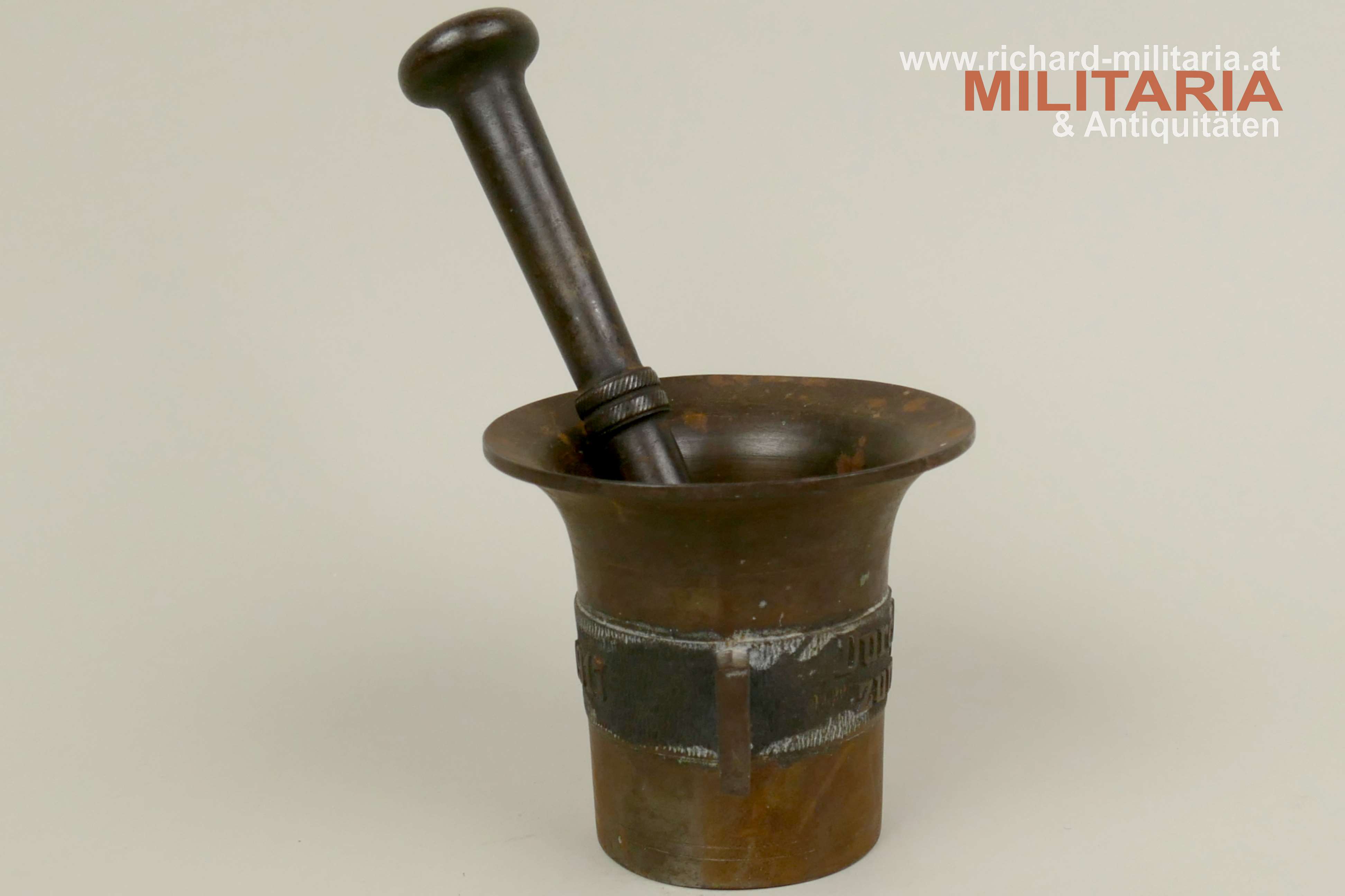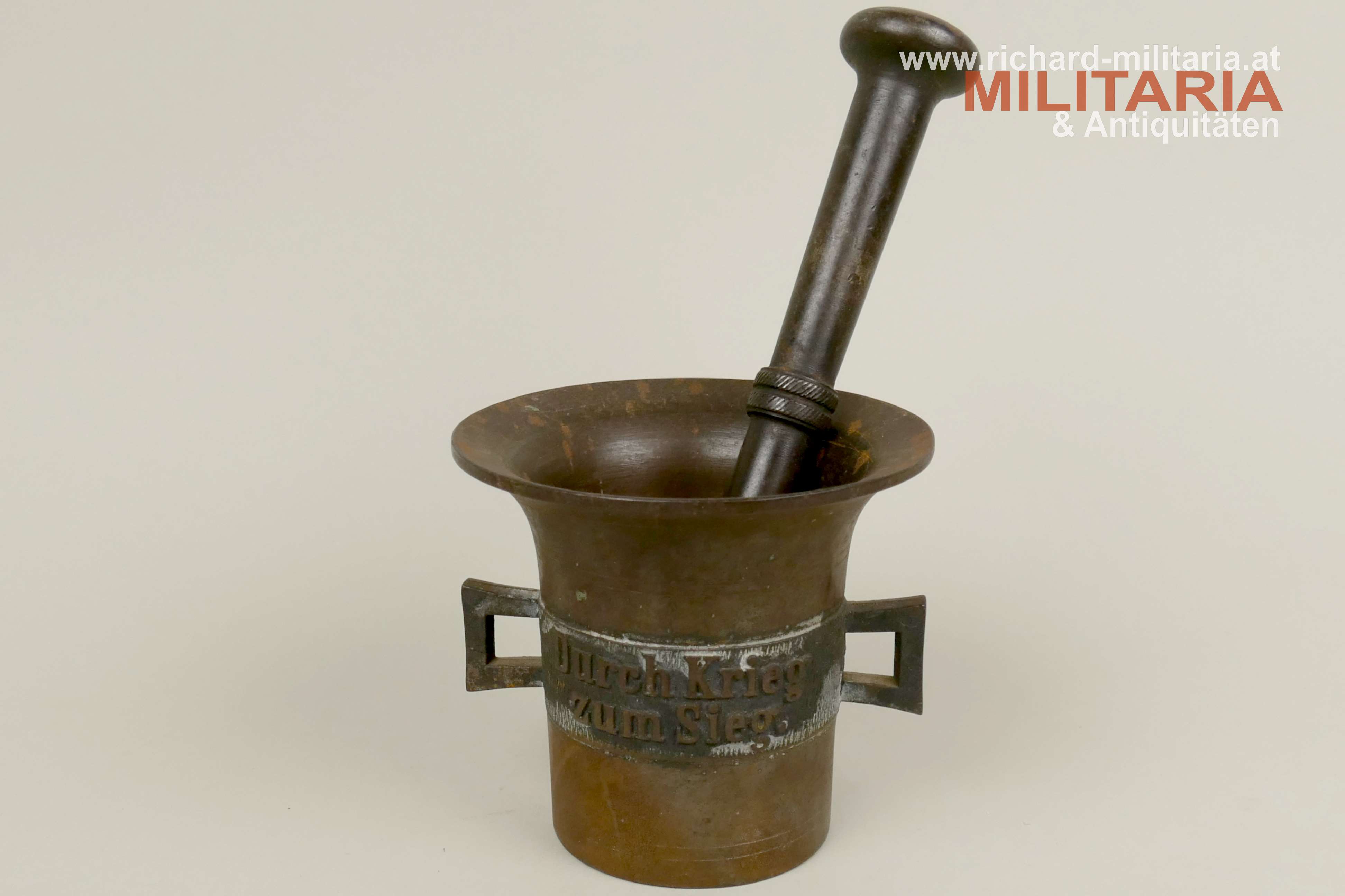Kriegsmörser 1914-1917 - Eisen - Durch Krieg zum Sieg, komplett mit Stößel, flugrostig verbesserungsfähig, Höhe ca: 11 cm, Gewicht: ca. 2 kg;