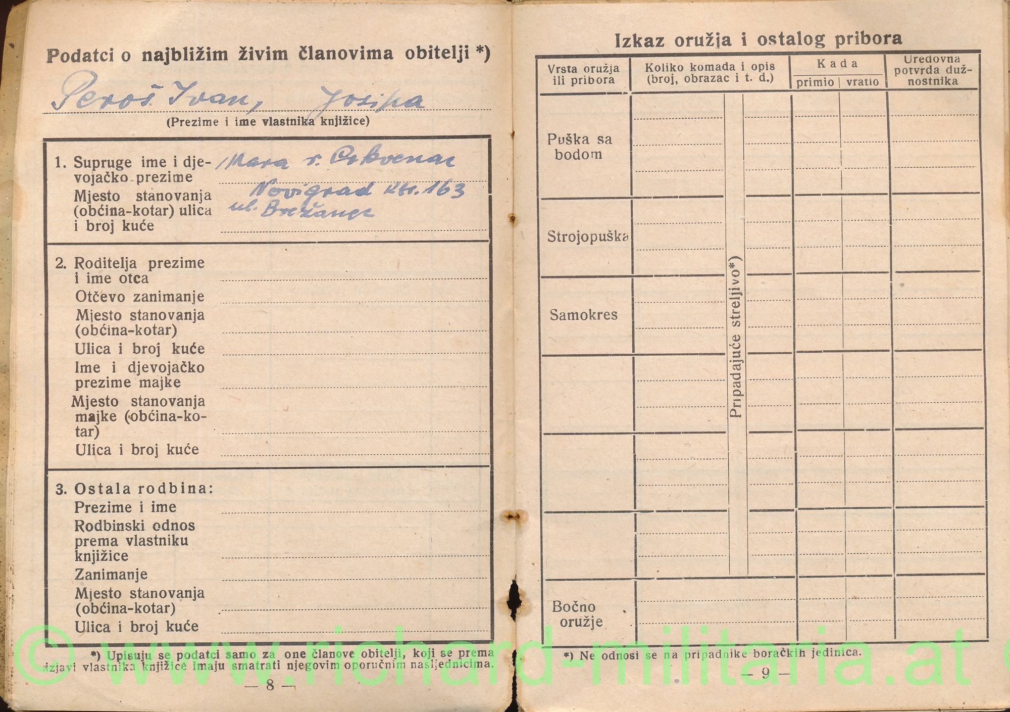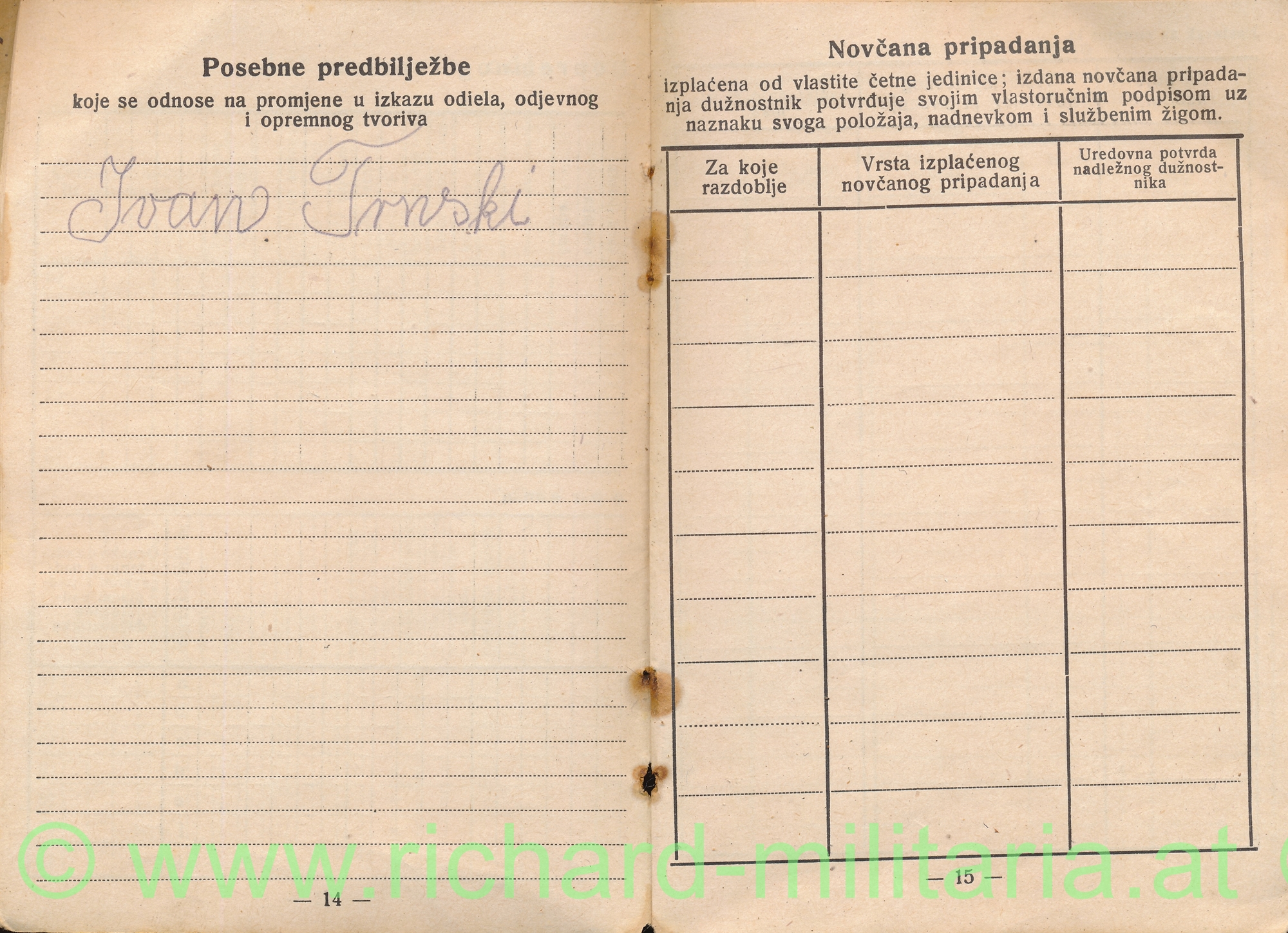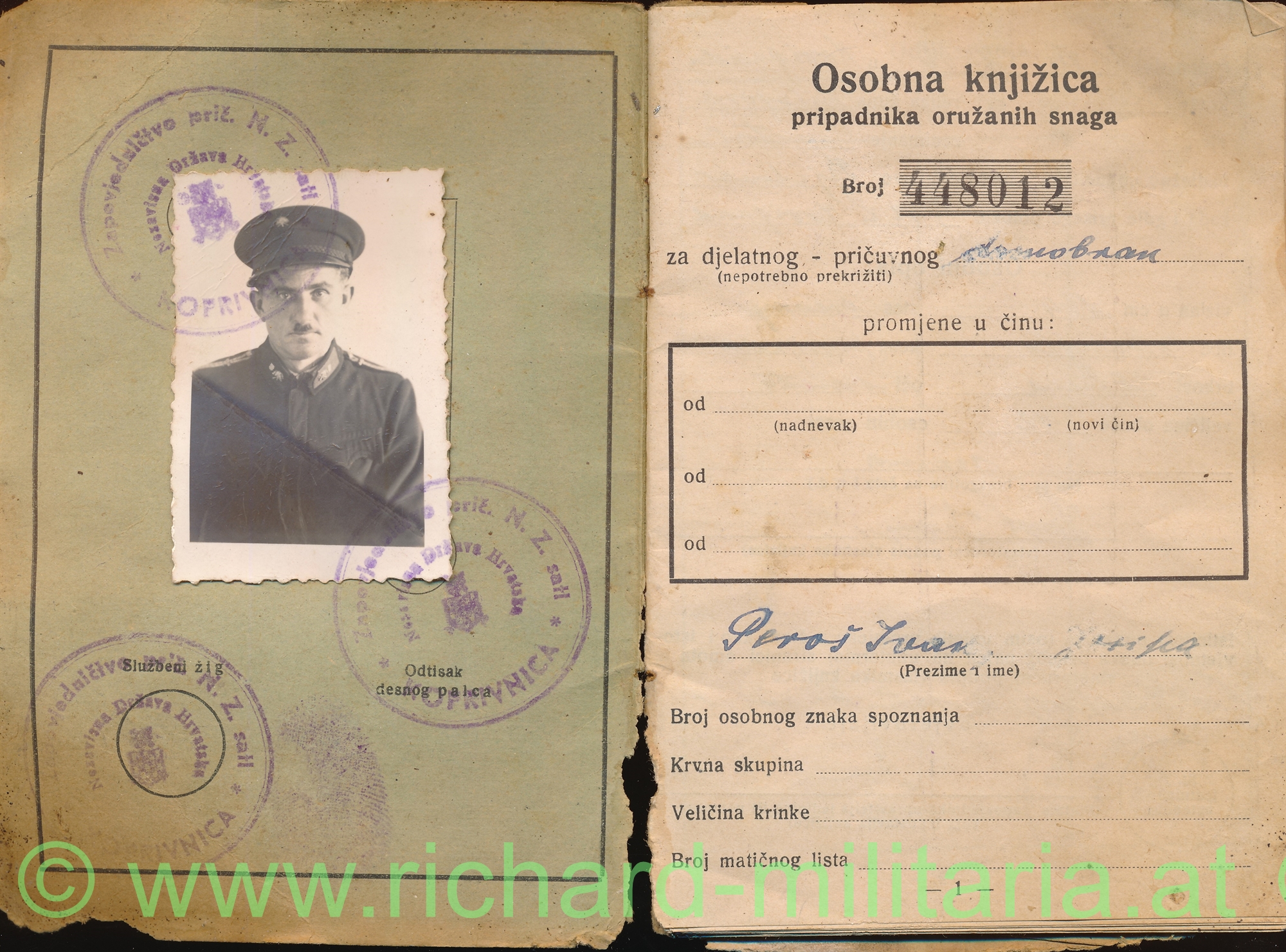 Kroatien - USTASCHA -Wehrpass; mit Foto, einige Eintragungen; Lagerungsschäden (!); SEHR SELTEN!!!!