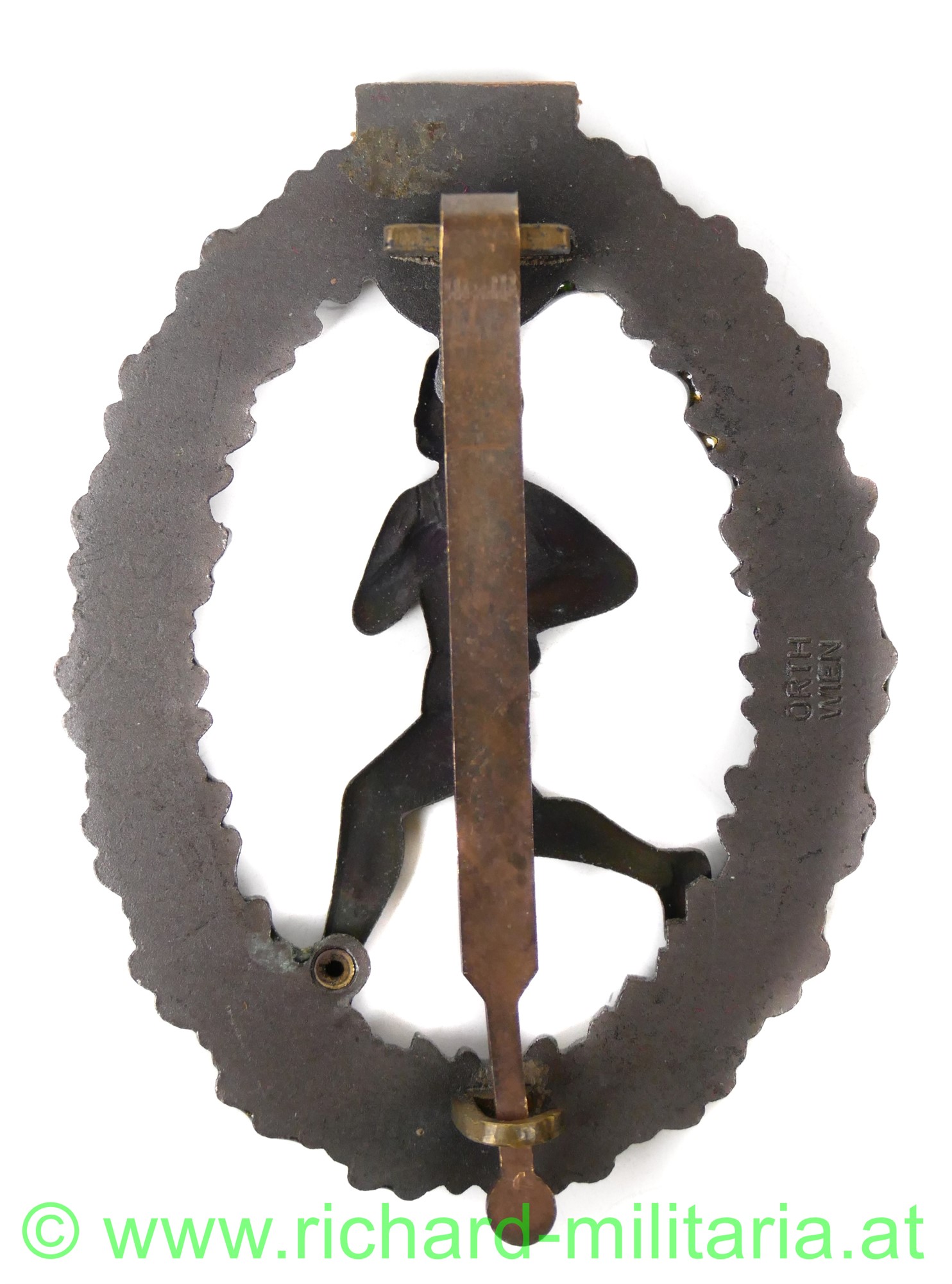Leistungsabzeichen für Orientierungslauf in Bronze, emailliert, originale Nadel, Hersteller: ORTH, Wien