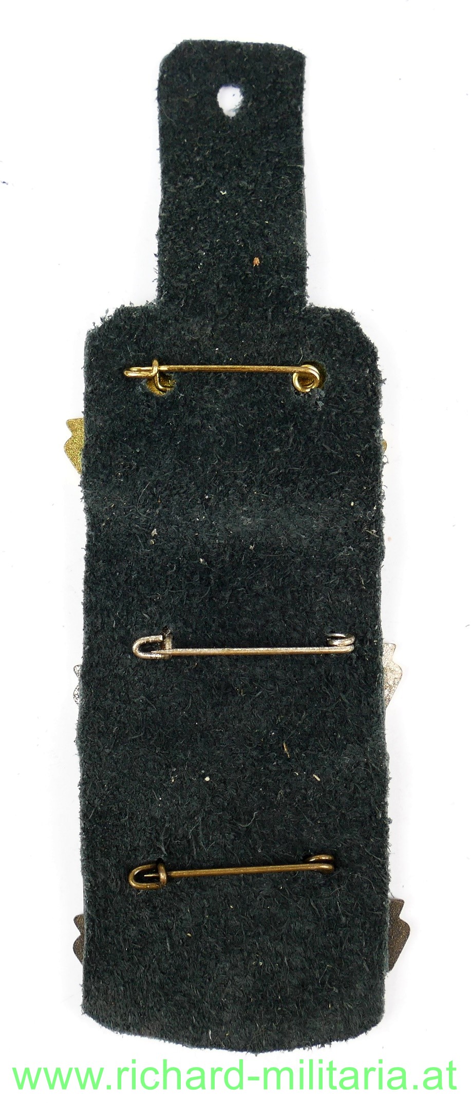 Leistungsabzeichen - Gefechtdienstleistungabzeichen - GOLD SILBER BRONZE, alle 3 Stufen aufgebracht auf eine schwarze Ledertragelasche;
