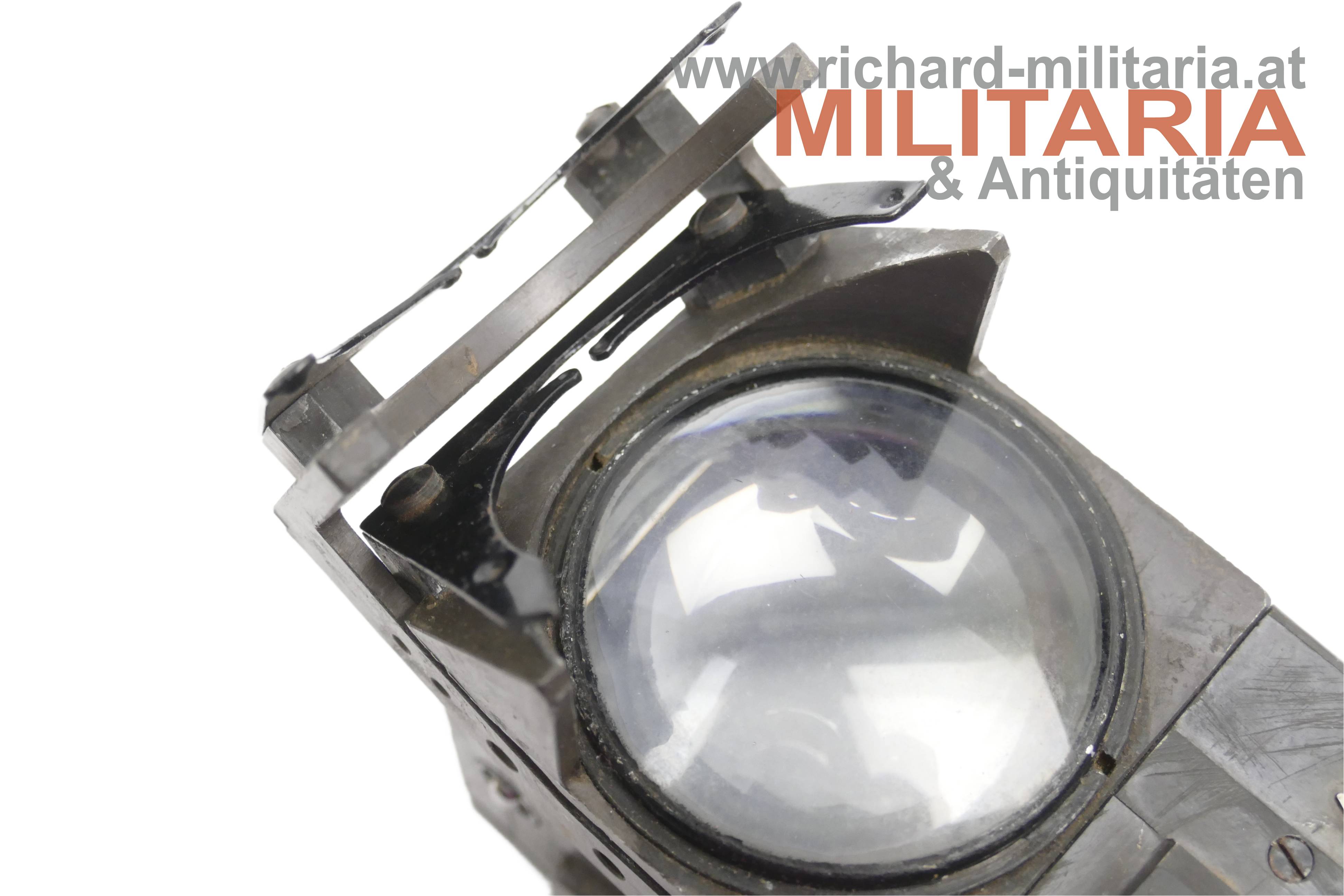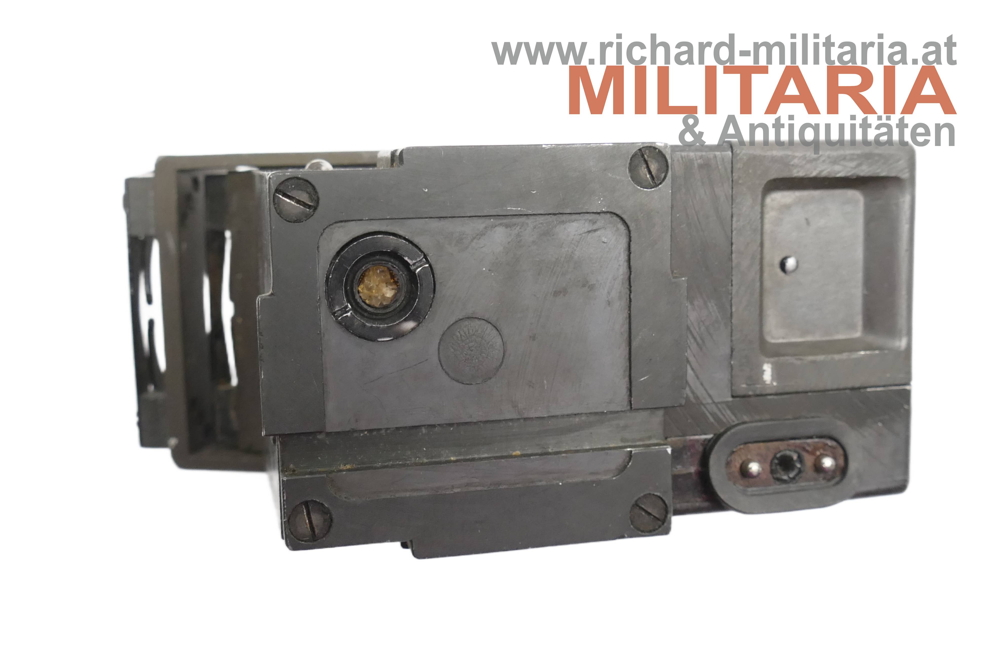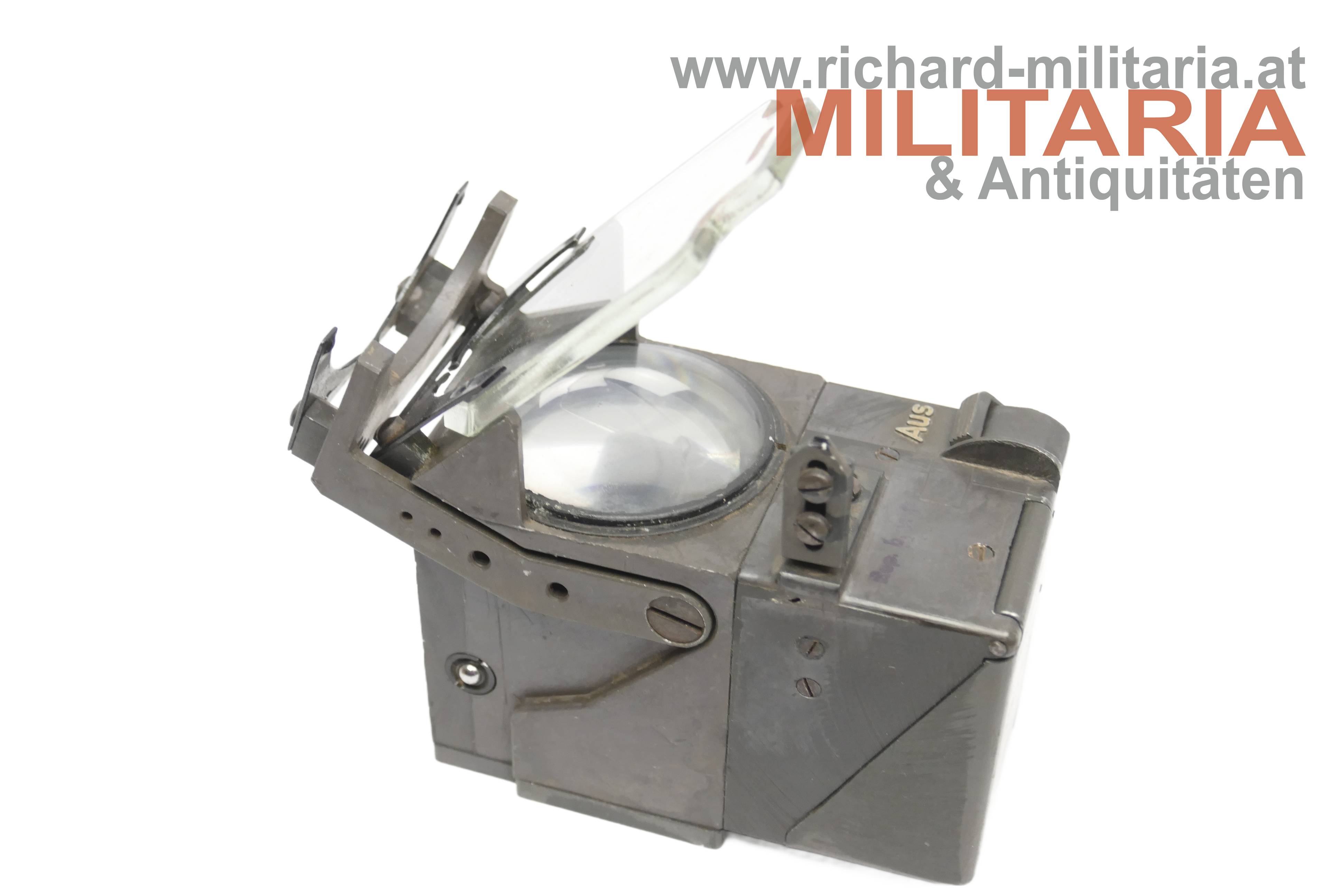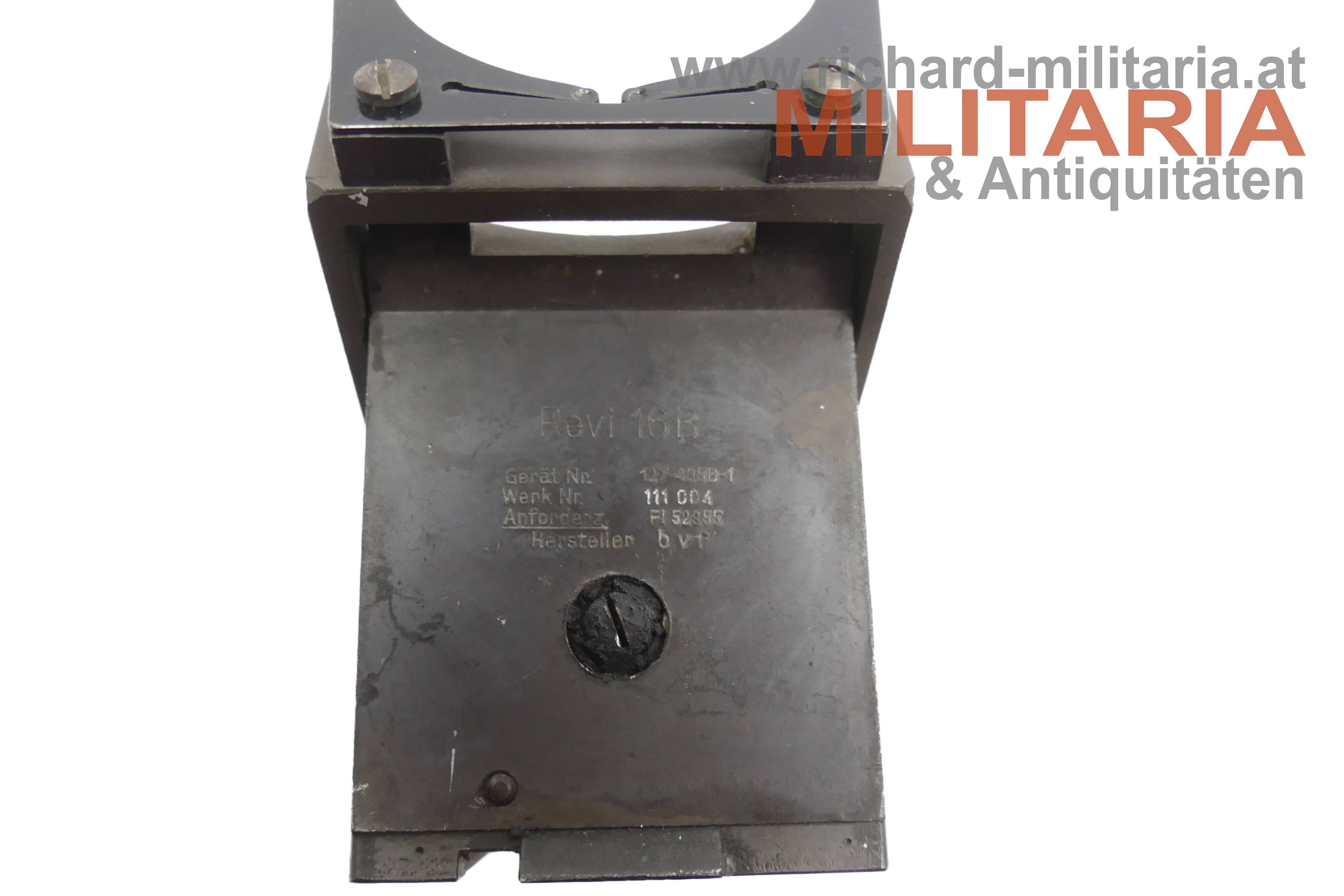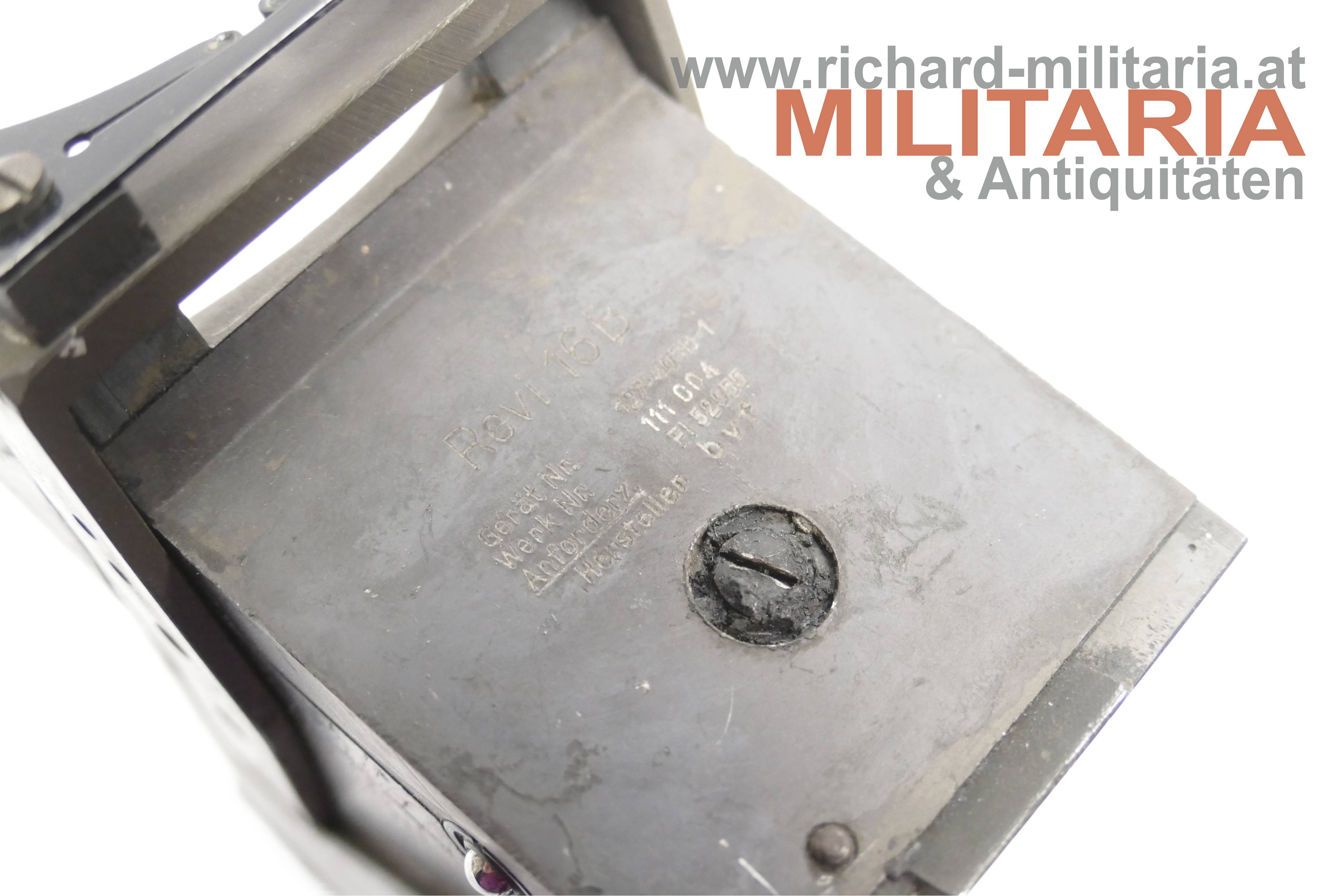 Luftwaffe - Reflex-Visier ReVi 16b u.a. für das deutsche Jagdflugzeug Me109; Geräte-Nummer 127-405B-1; Werk-Nr. 111 004; Anforderz. 52955; Hersteller bvf (Firma Optische Werke C. Reichert, Wien); komplett mit Einschubglas - darauf die Anforderz. Fl. 52271; im originalen Unterteil der Kartonkiste (!);