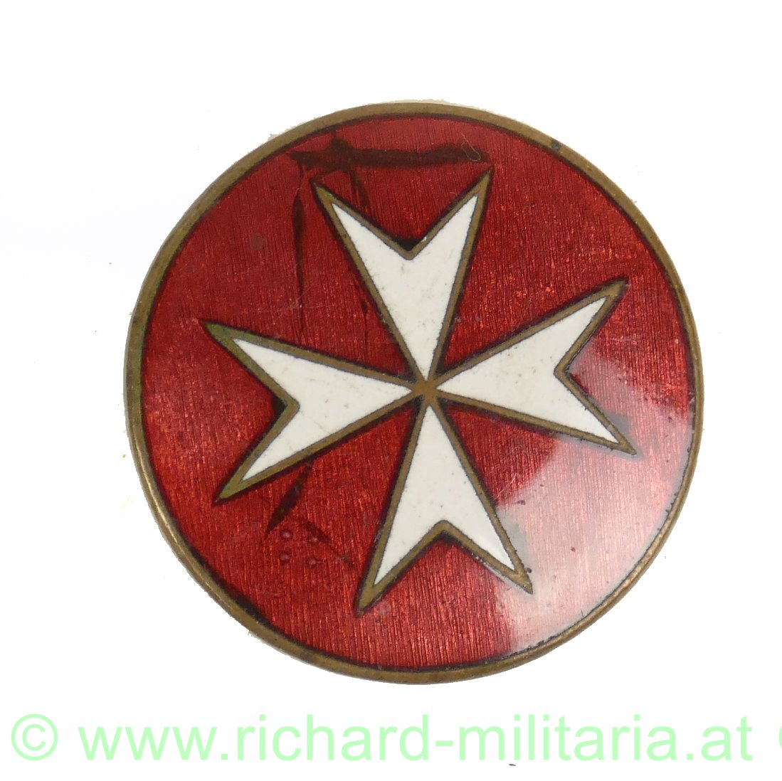 Malteserkreuz - Abzeichen, Tombak emailliert, originales Nadelsystem;