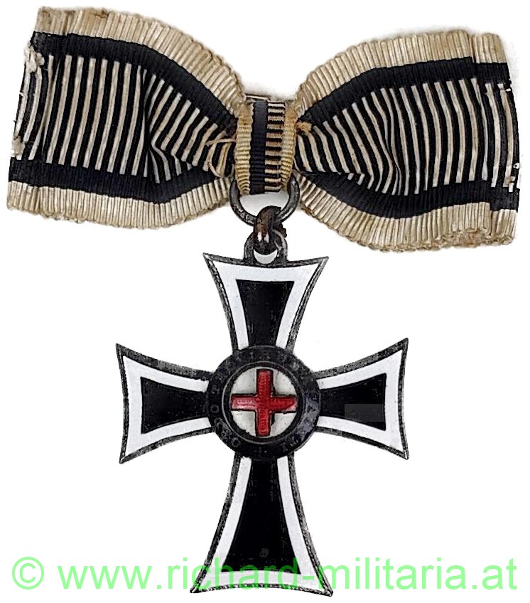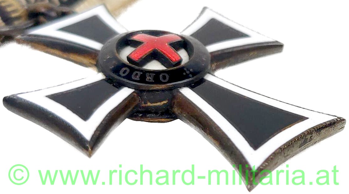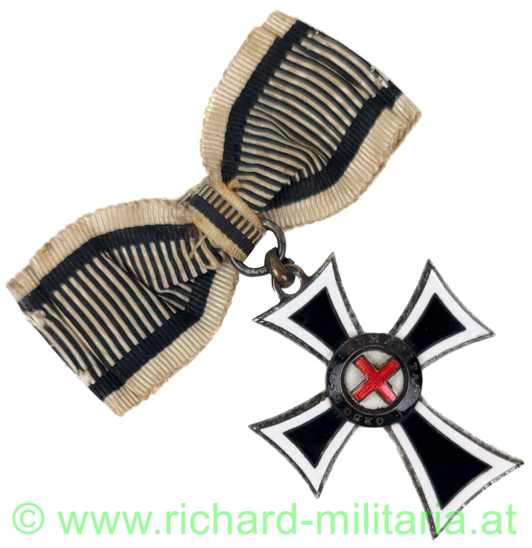 Marianerkreuz mit Damenmasche; TOMBAK (!!) emailliert; ohne Punzierungen; mit originaler Damenmasche;