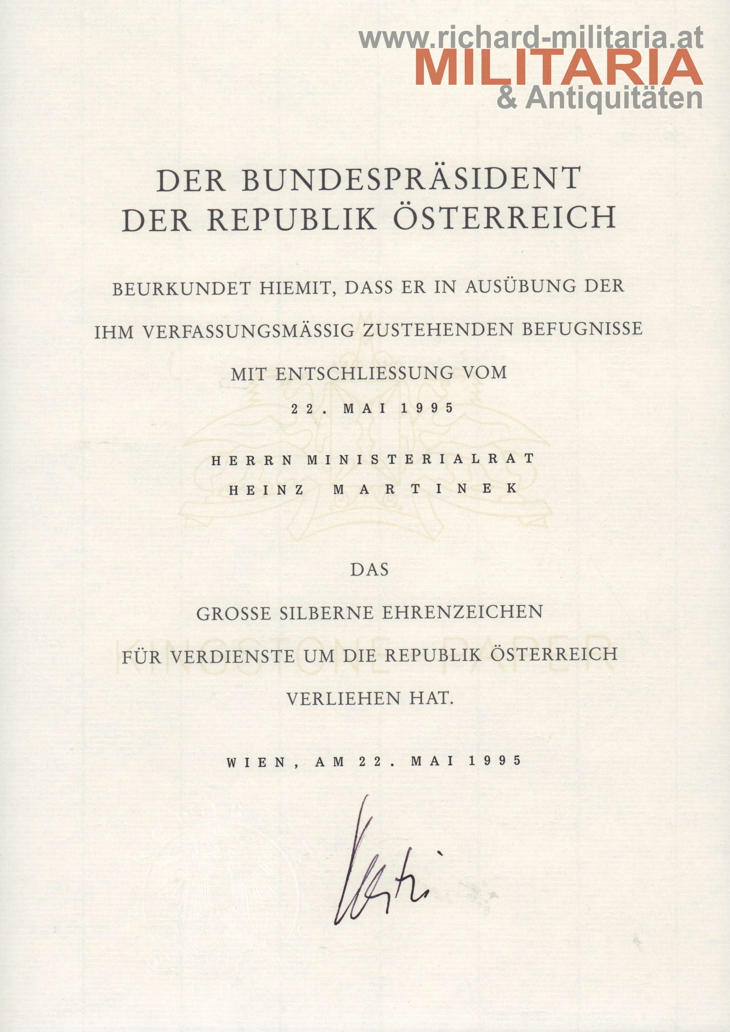 - Großes Silbernes Ehrenzeichen für Verdienste um die Republik Österreich, 1995; OU Thomas Klestil