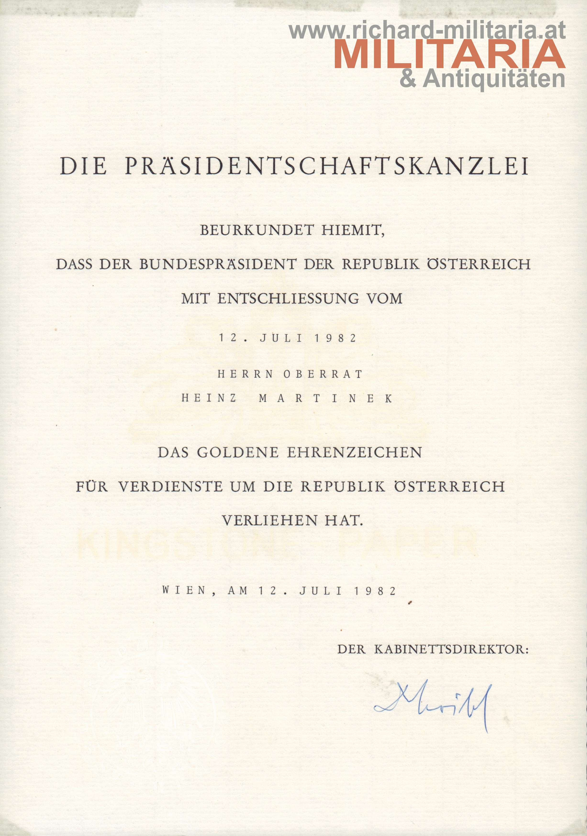 Produktinformationen "Ministerialrat Heinz Martinek - 3 Urkunden"