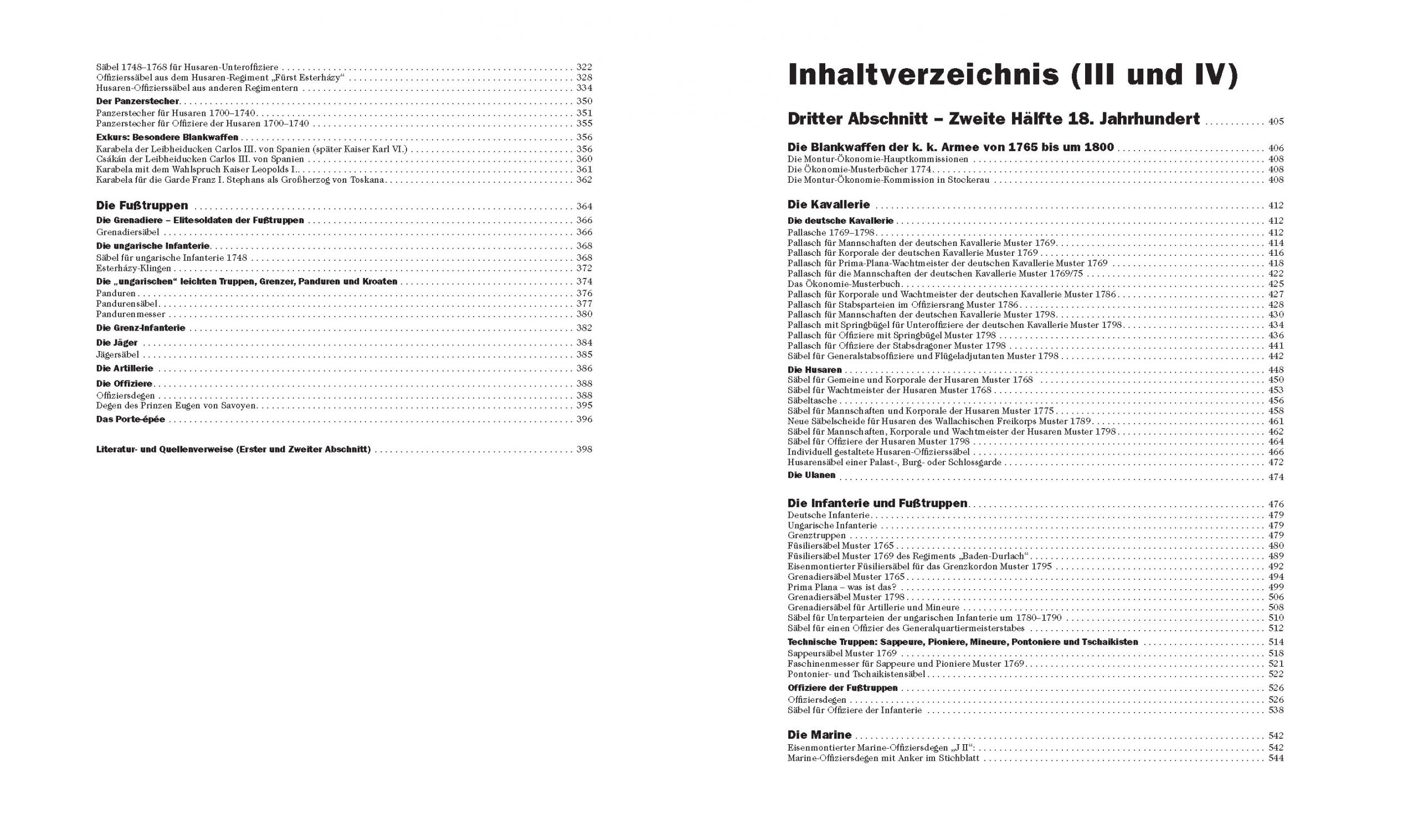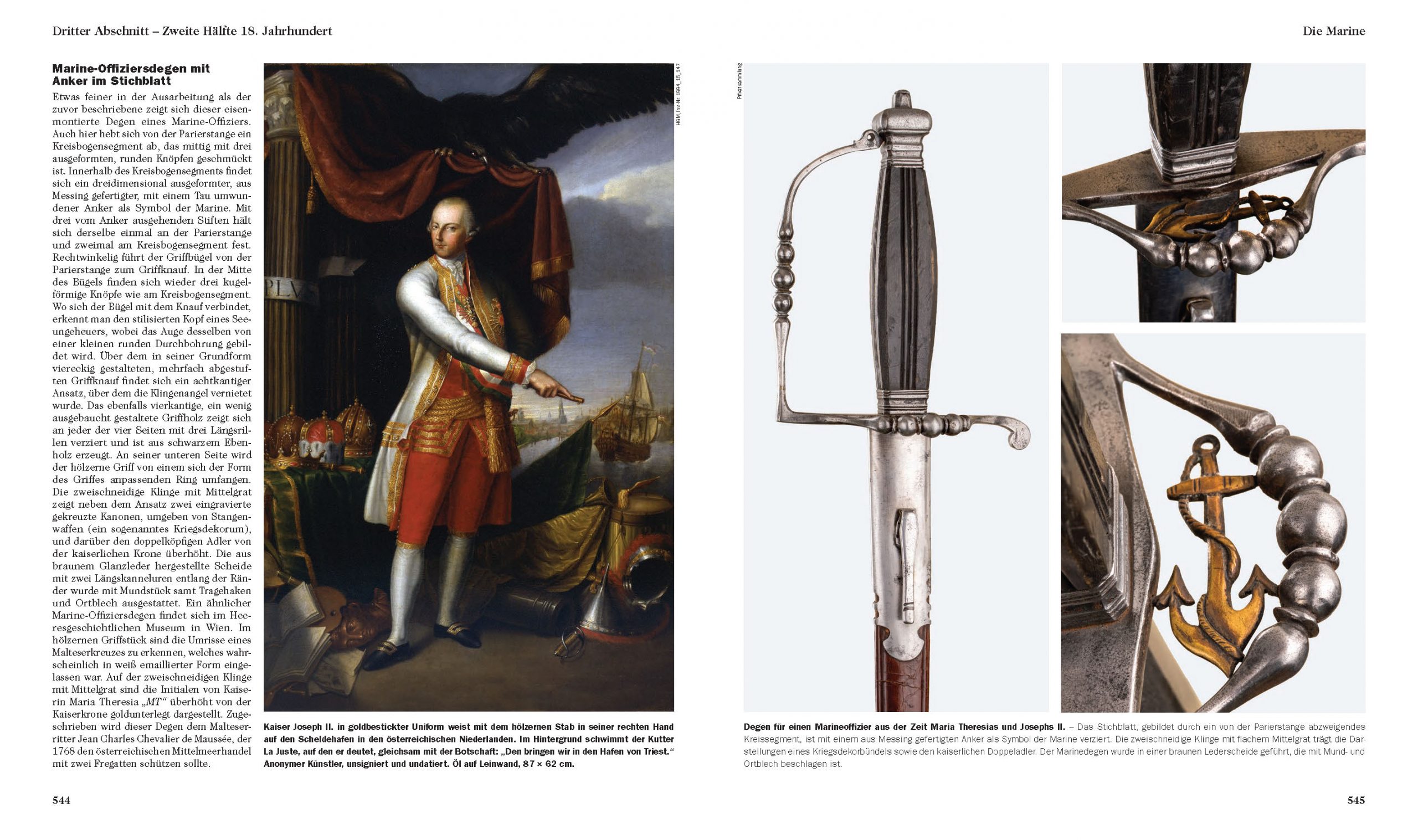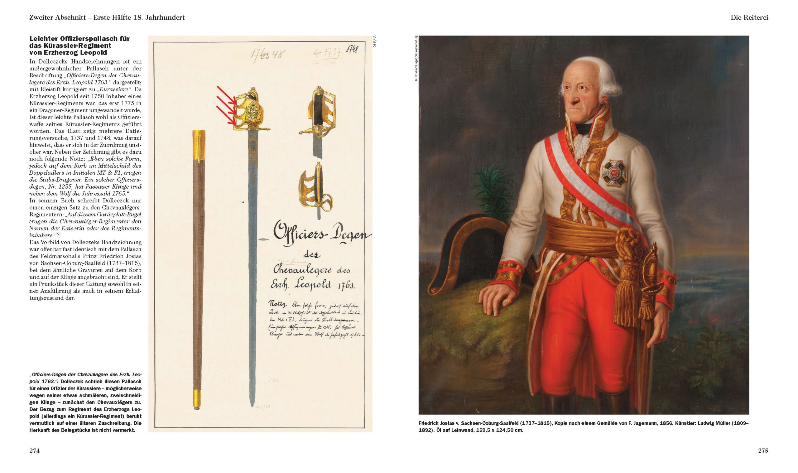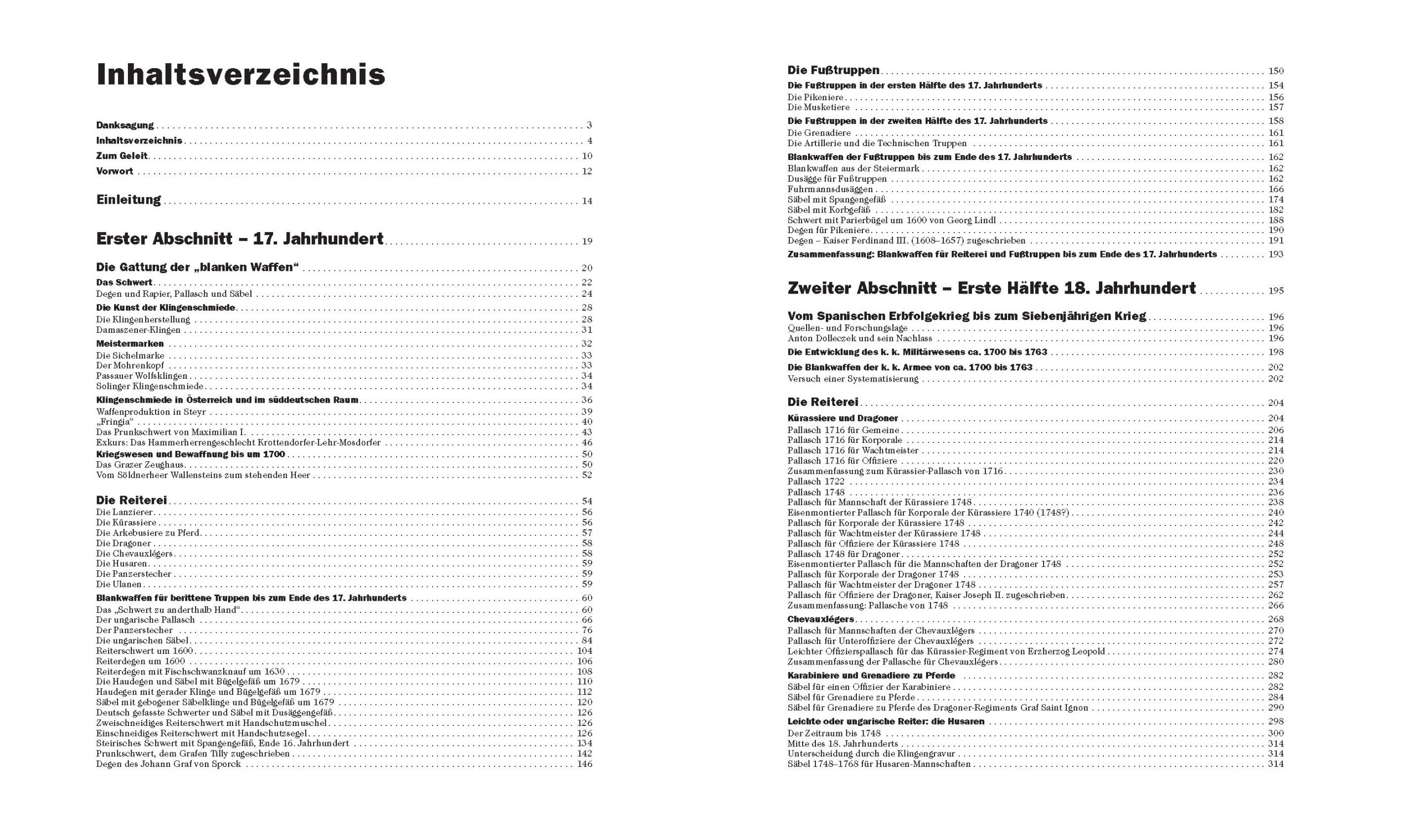 Der erste Abschnitt des Bandes stützt sich dabei auf die einzigartigen Bestände des Landeszeughauses Graz, das bis heute als eines der größten und bedeutendsten erhaltenen Zeugnisse frühneuzeitlicher Rüstungskultur gilt. Im zweiten Abschnitt wird auf bislang wenig beachtetes Material aus dem Wiener Kriegsarchiv zurückgegriffen: das Handzeichnungsarchiv des Artilleriehauptmanns Anton Dolleczek. Dieser war nicht nur Mitarbeiter des neu eröffneten Heeresmuseums, sondern auch Dozent an der Artillerie-Kadettenschule in Wien. Seine 1896 erschienene „Monographie der k.u.k. österr.-ung. blanken und Handfeuer-Waffen“ ist bis heute ein grundlegendes Standardwerk. Der von ihm unternommene frühe Versuch einer Systematisierung der Hieb- und Stichwaffen der ersten Hälfte des 18. Jahrhunderts – lange bevor verbindliche Adjustierungsvorschriften erlassen wurden – wird in diesem Band erneut aufgegriffen, kritisch beleuchtet und in den größeren historischen Zusammenhang gestellt.