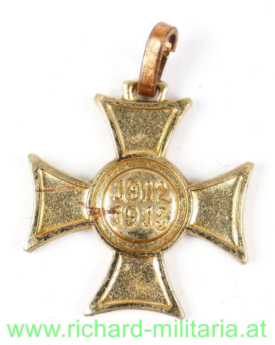 Mobilisierungskreuz 1912/13 MINIATUR; Tombak vergoldet, Tragering ersetzt, Höhe ohne Tragering 20 mm.