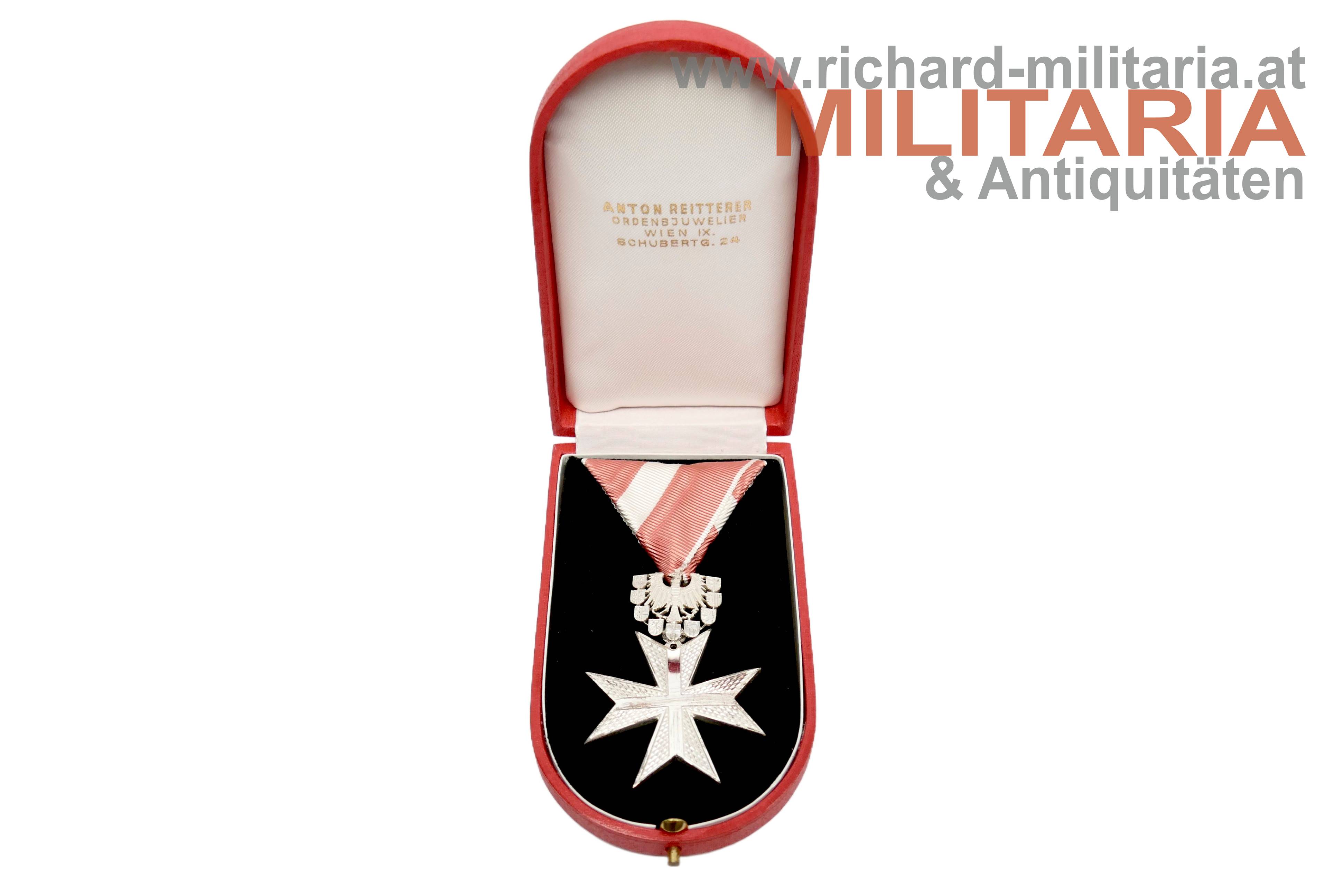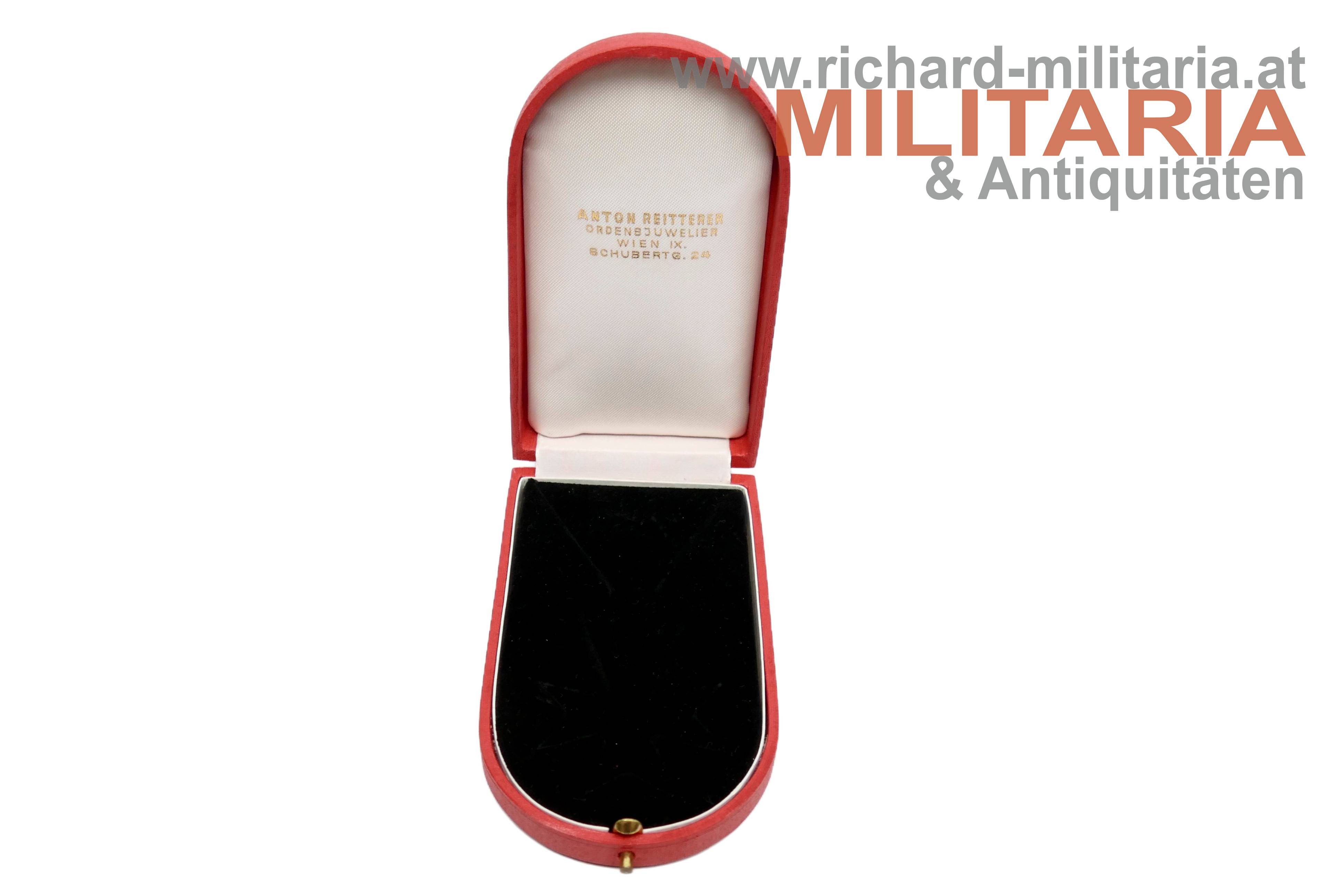 Österreich 2. Republik - Silbernes Verdienstzeichen im Etui; Buntmetall versilbert; am passenden Band; im zugehörigen Etui von Anton Reitterer;