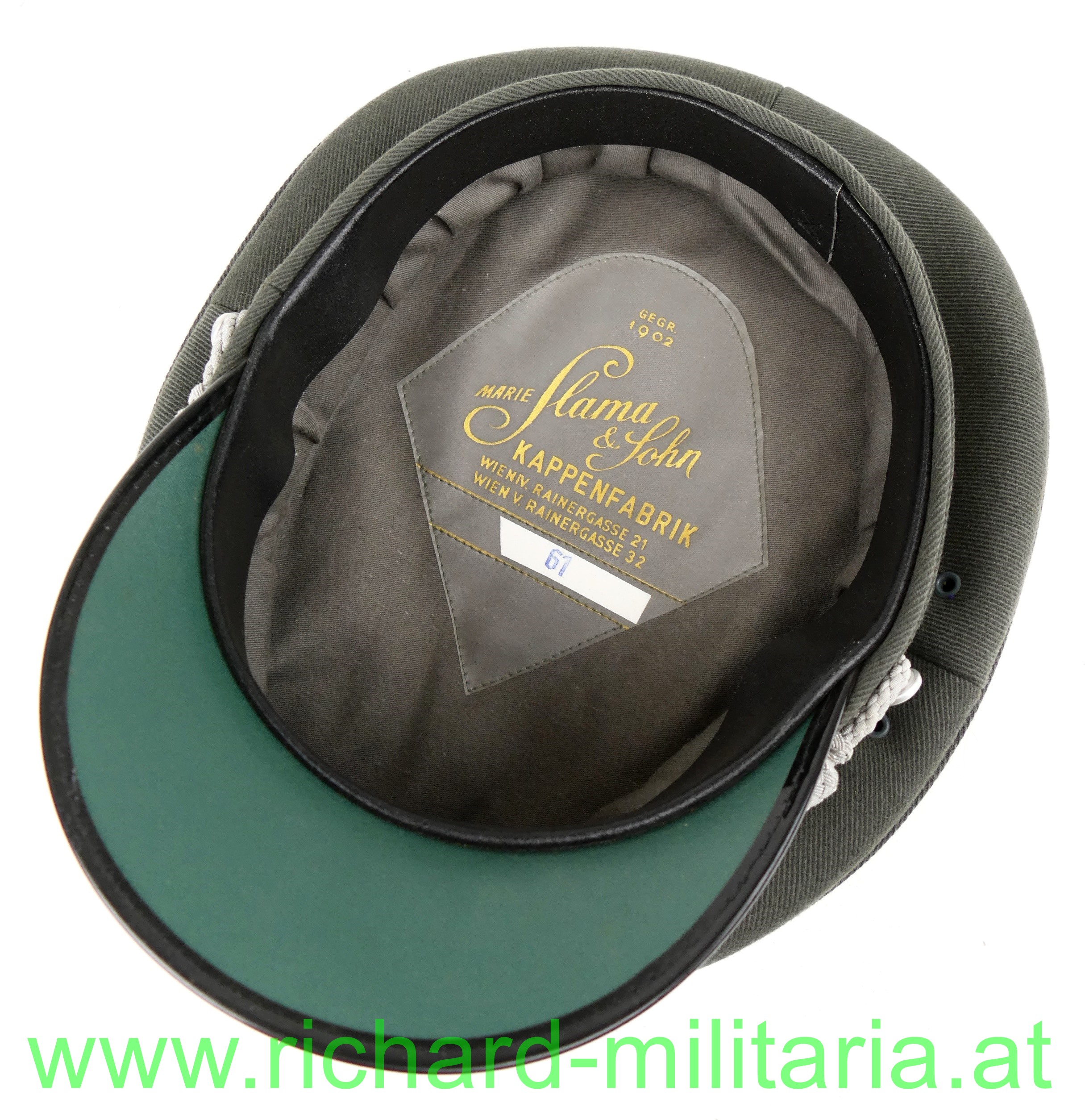 Österreich Bundesheer Tellerkappe Luftstreitkräfte für Chargen, Hersteller: "Slama Wien", gestickte Kokarde und geprägtes Luftwaffenemblem; Größe: 61