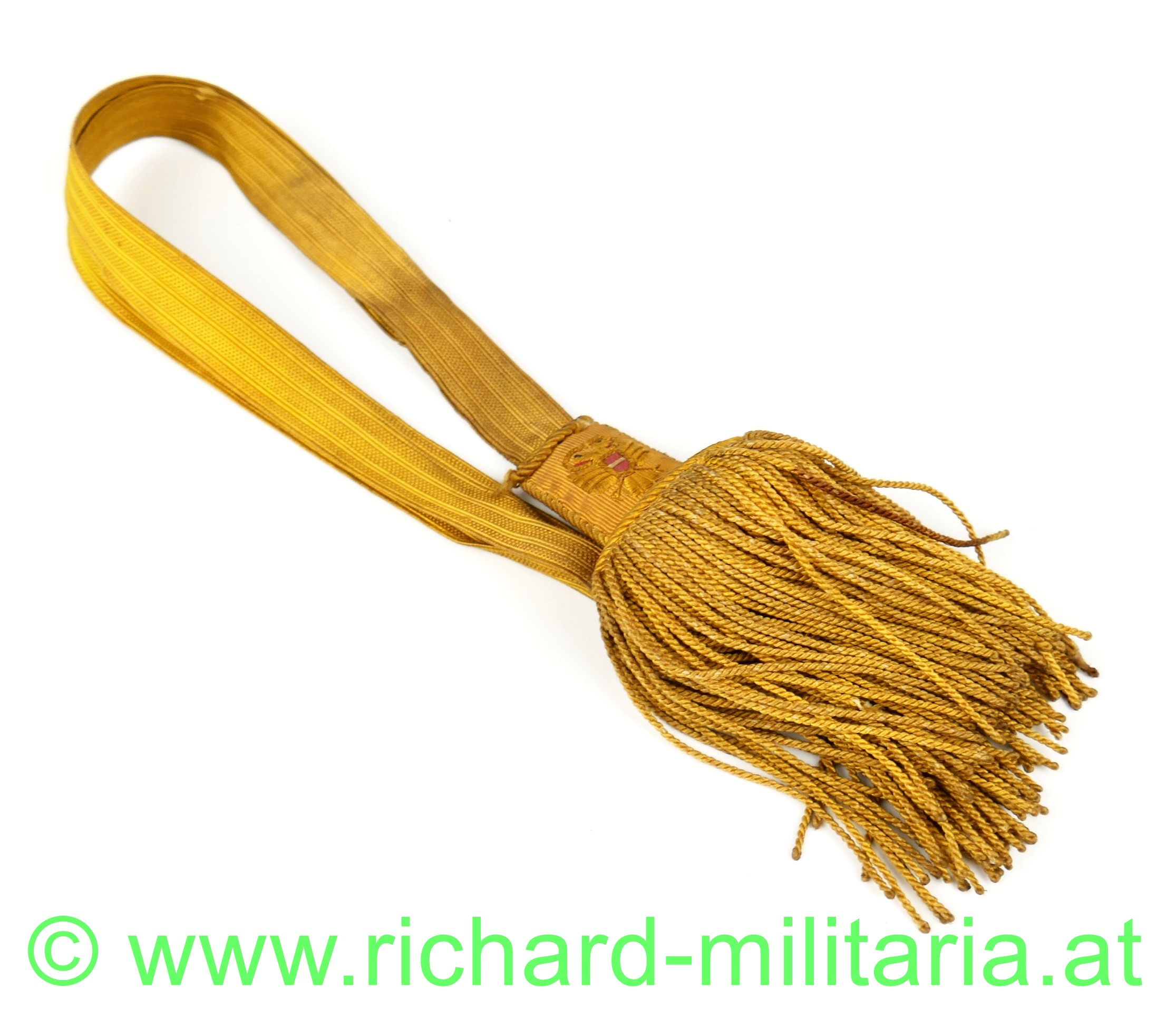 Österreich Bundesstaat - Portepee für Unteroffiziere, offene Form für den Säbel, gelbe Wolle mit beidseitig plastisch eingesticktem doppelköpfigen Bundesadler aus der Zeit des Ständestaats (1934-38), guter getragener Zustand mit leichter Verschmutzung