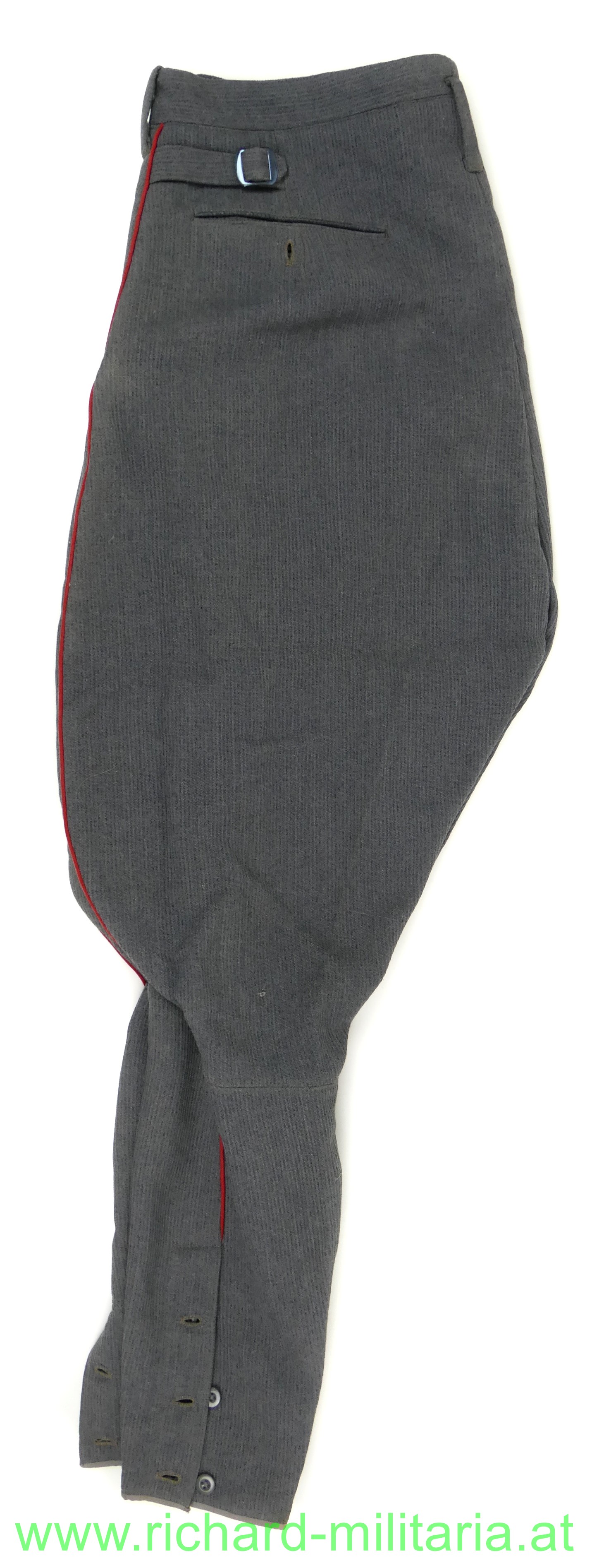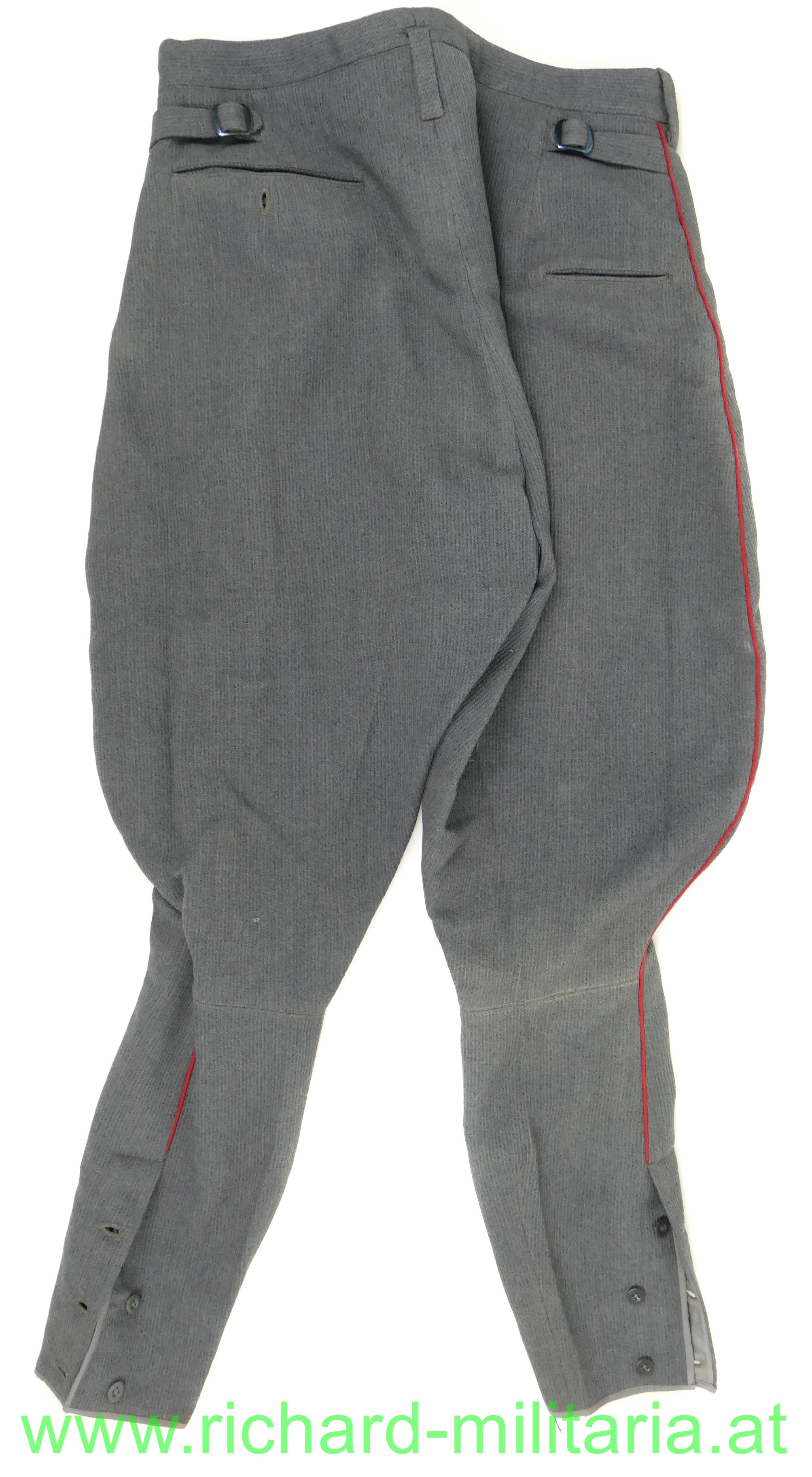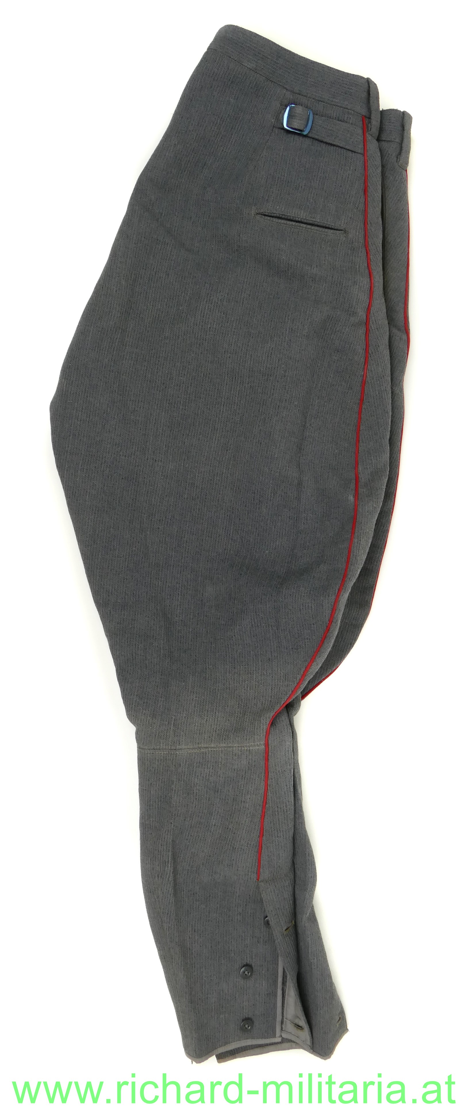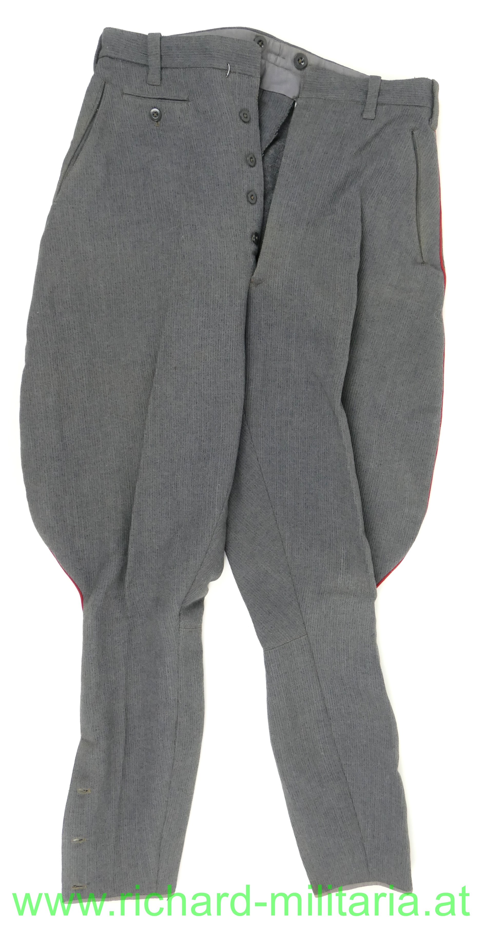 Österreich Gendarmerie - Breeches - 1955, frühe Gendarmeriebreeches mit Abnahmestempel: "GBA 1955", grauer strukturiert Stoff - ähnlich wie Cord; rote Paspelierung, lange Tasche für die Unterbringung eines Schlagstockes;