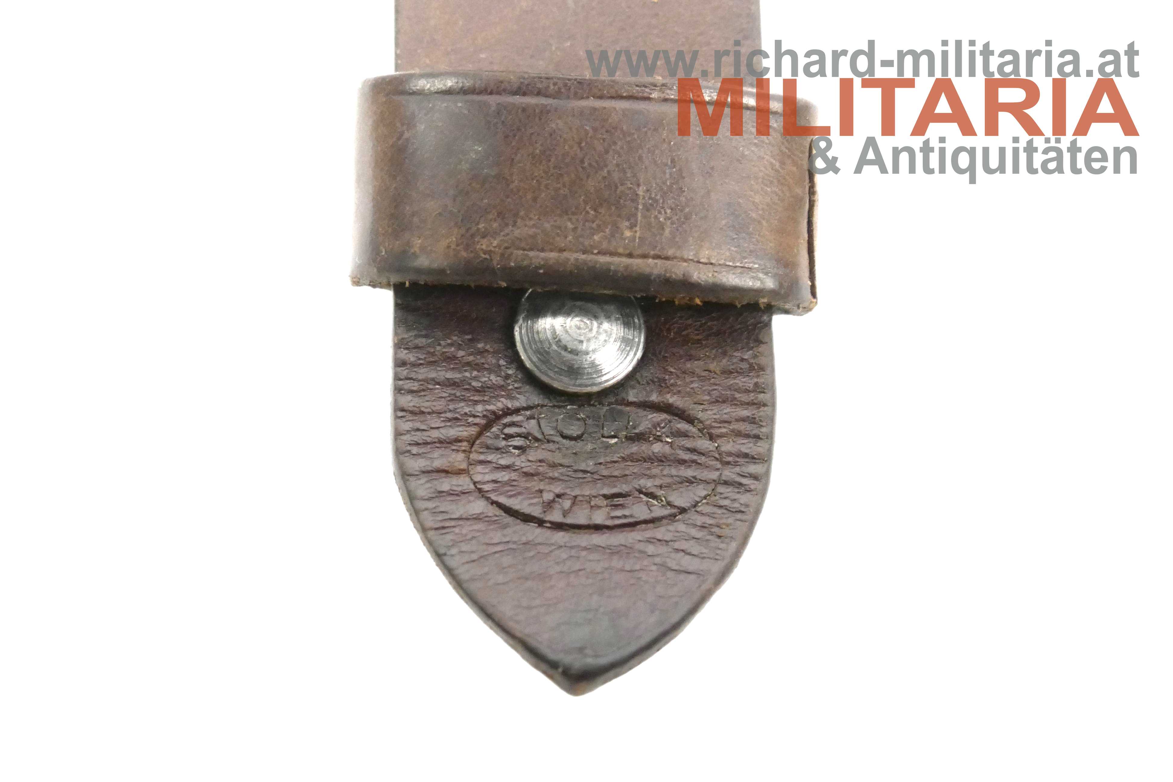 Österreich - Gewehrriemen zum Mannlicher M95 Karabiner; dunkelbraunes Leder; mit Herstellerstempel "STOLLA Wien";