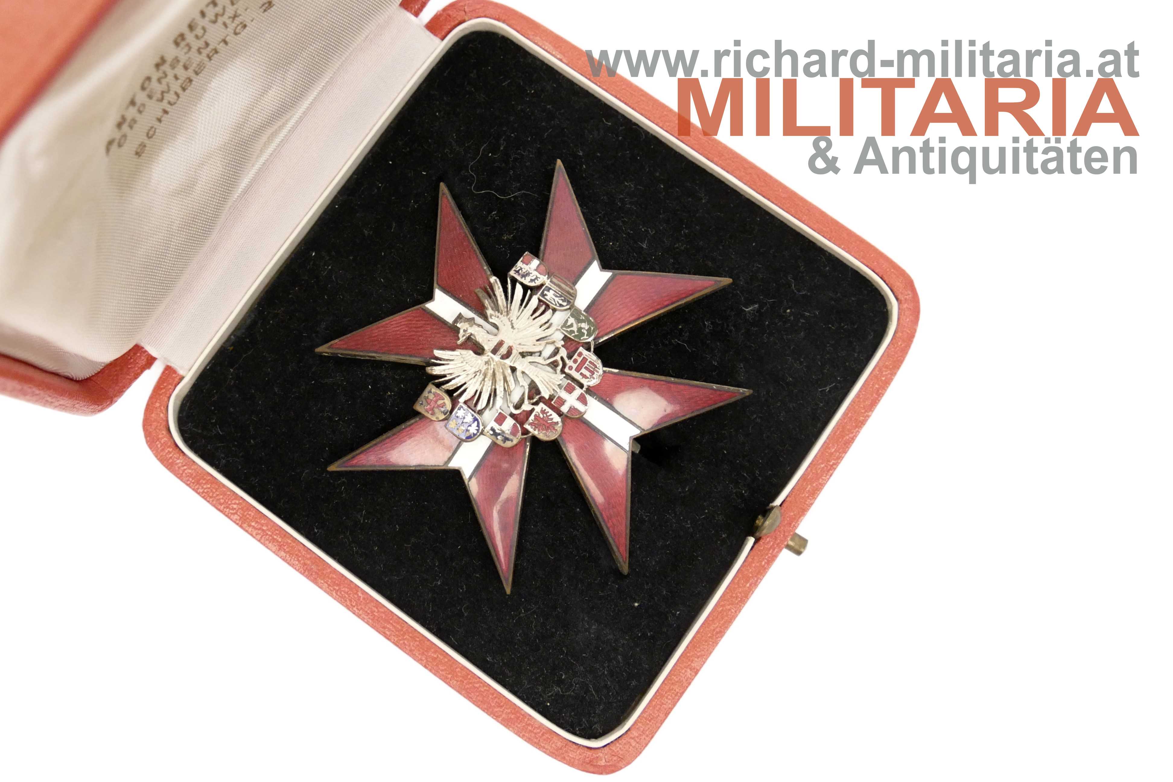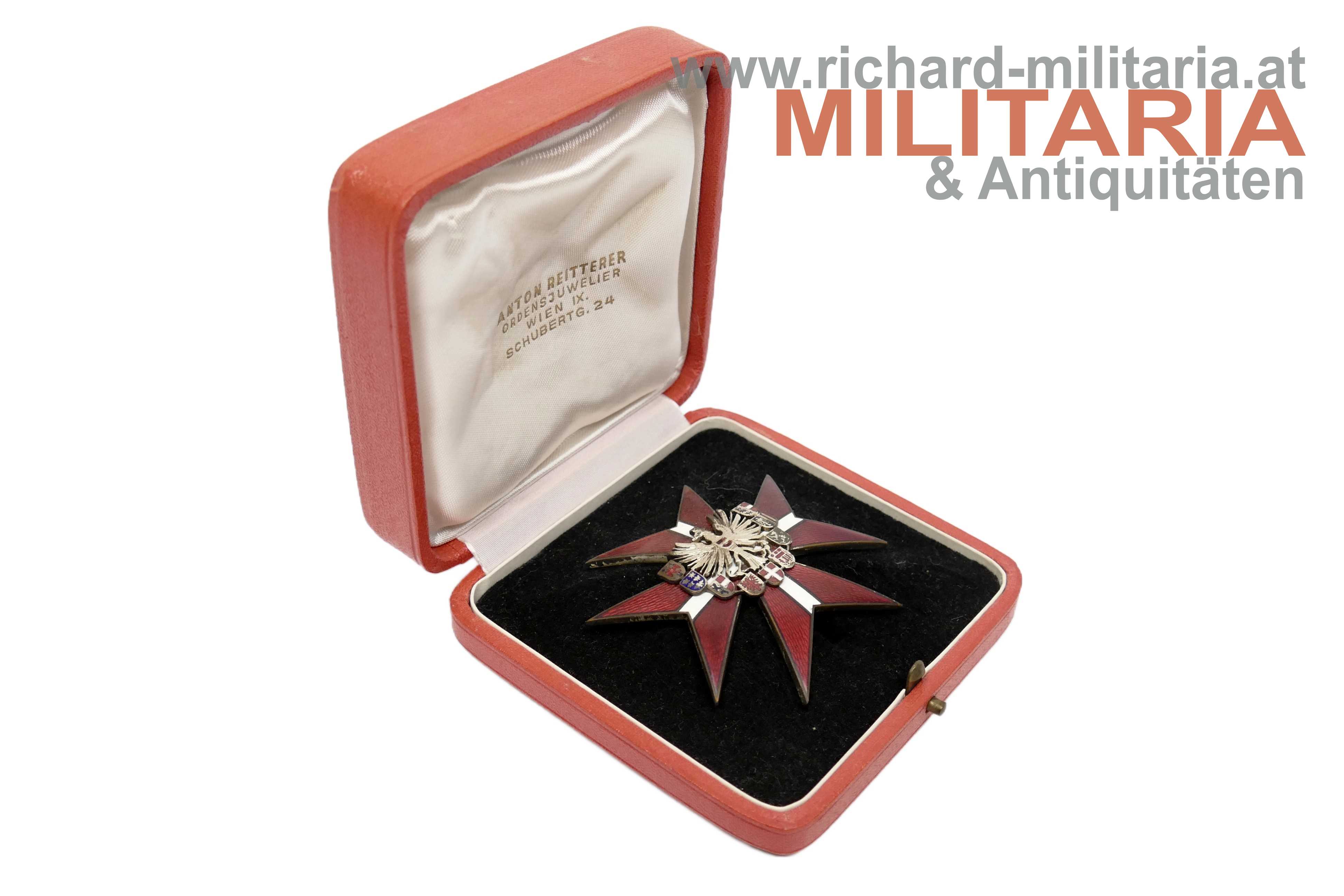 Österreich - Großes Ehrenzeichen für Verdienste um die Republik mit Etui; Tombak versilbert und emailliert; Auszeichnung und Etui vom Hersteller Anton Reitterer; Etui in sehr gutem Zustand;