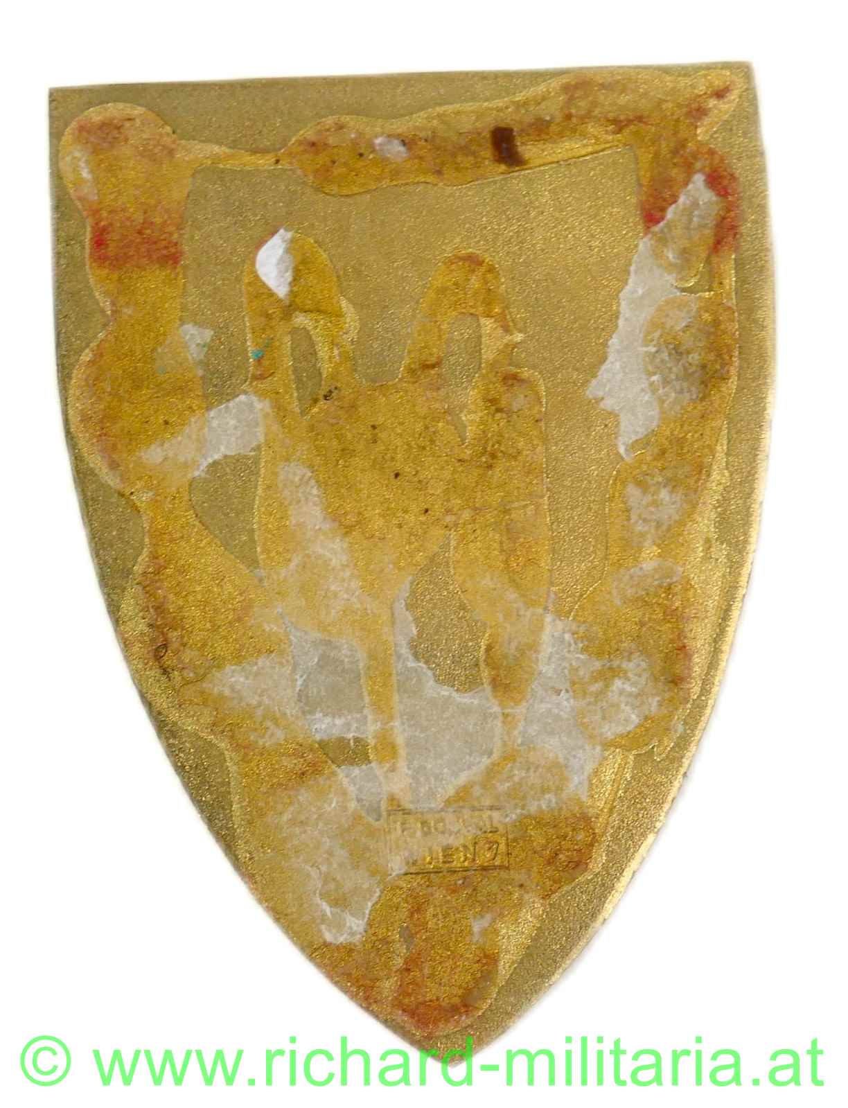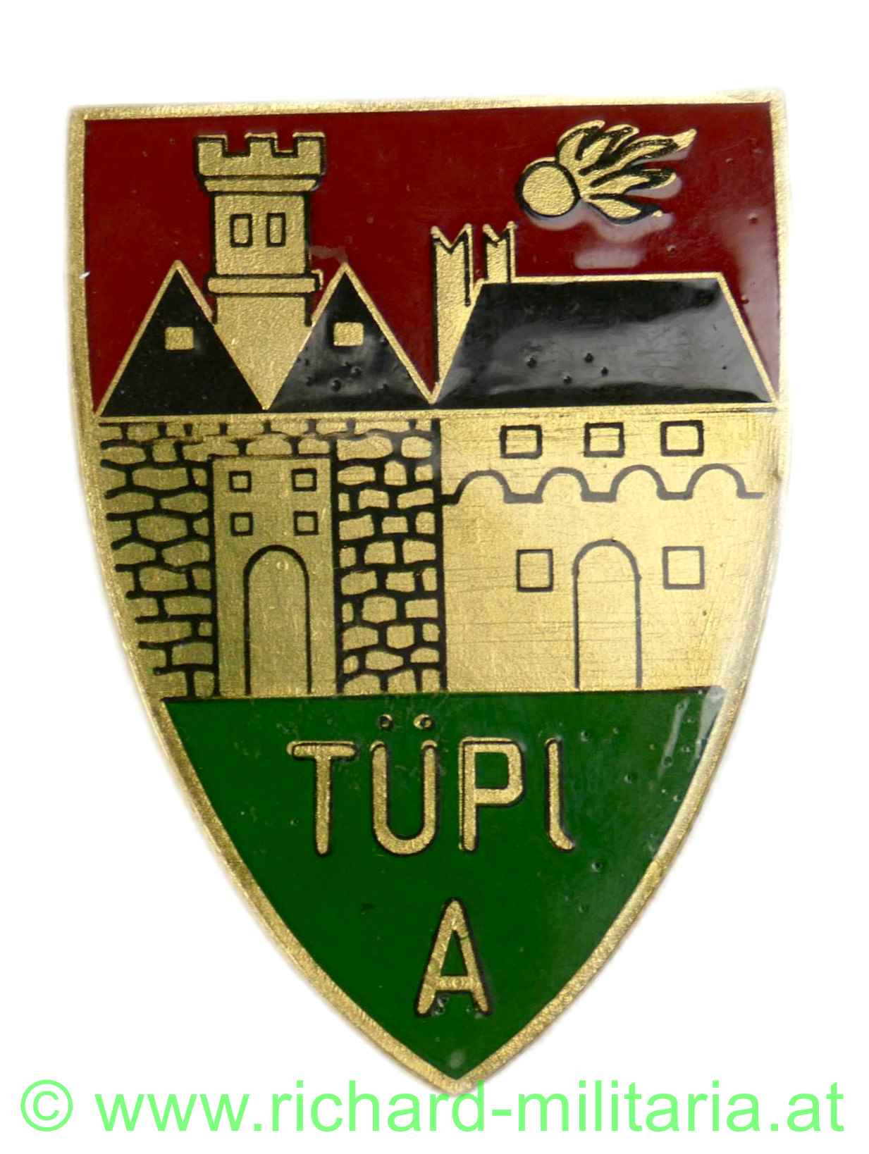 Österreich Truppenkörperabzeichen TÜPL A - ALLENTSTEIG, Tombak vergoldet mit Kunstharz, auf der Rückseite Hersteller: "R. Souval, Wien",