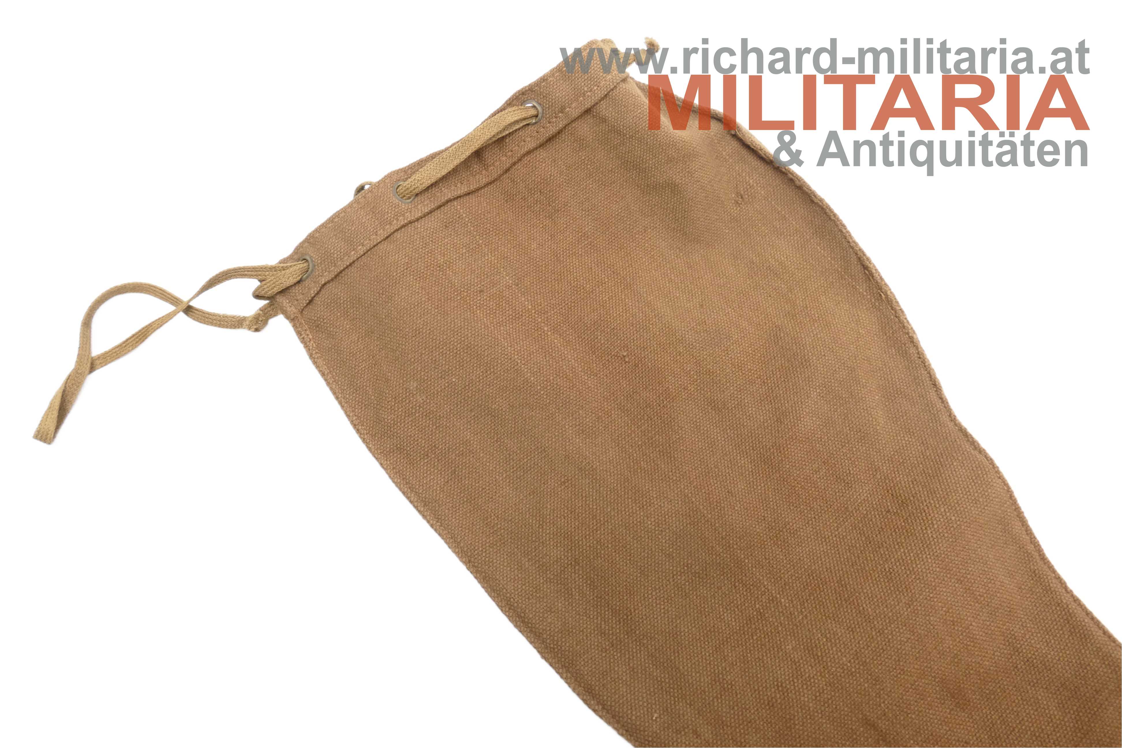 k.u.k. Säbelsack für einen Offizierssäbel; typisches rotbraunes grobes Leinen wie es von der österr.-ungar. Armee im 1. Weltkrieg verwendet wurde; im Oberteil mit Ösen versehen; 2-fach durchgezogenes Stoffband zum Verschließen, keine Beschädigungen; aufgrund der Länge wahrscheinlich für einen Säbel der Landwehrgebirgstruppen.