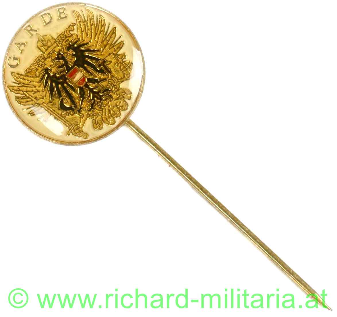 Österreichisches Bundesheer - Garde - Anstecker, Tombak vergoldet, Kunstharz versiegelt mit langer Anstecknadel, mit Hersteller;