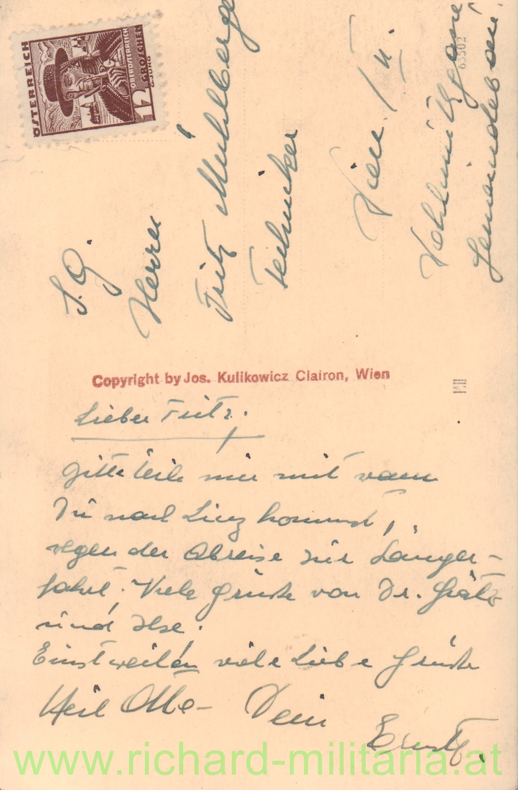 originale Postkarte - in österreichischer Uniform mit Ordenschmuck der k.u.k. Monarchie (!)