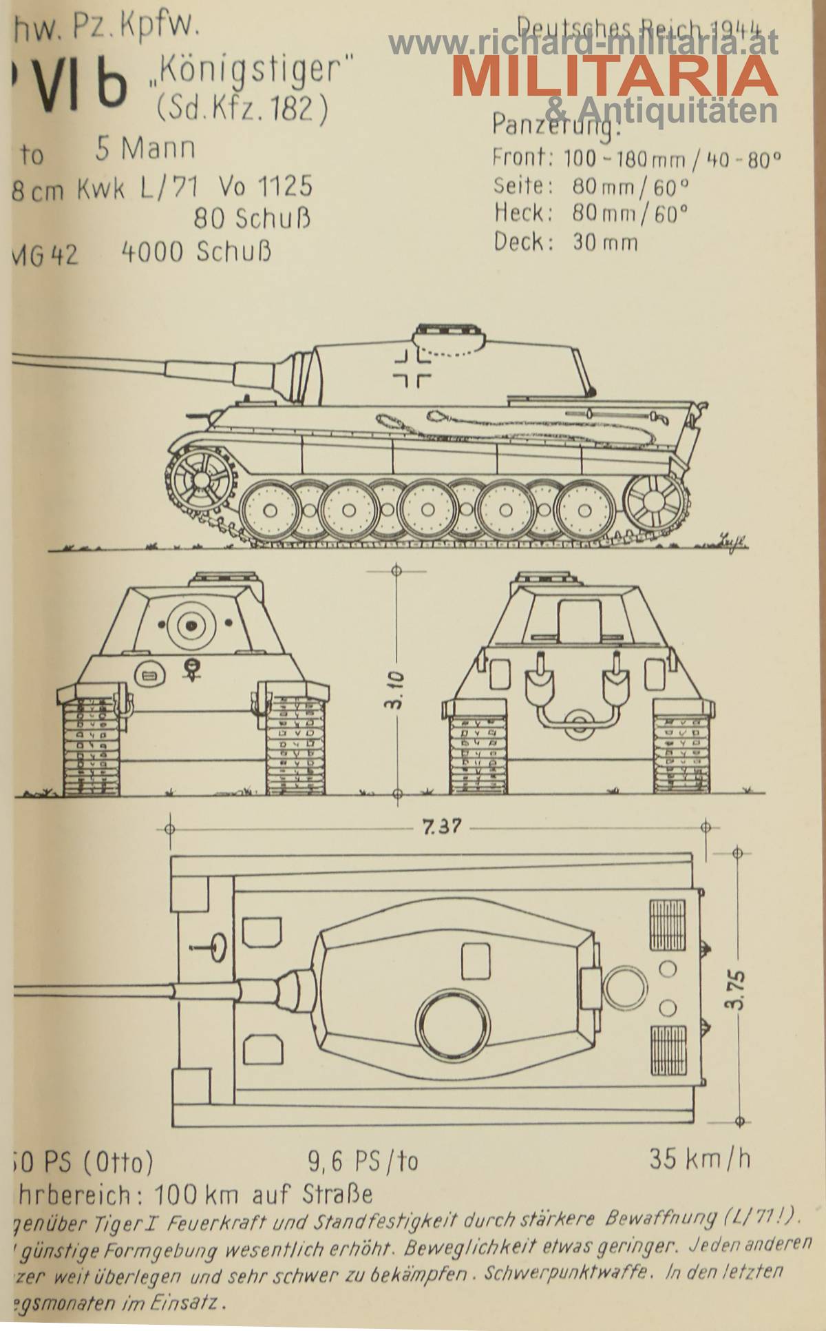 Serie I: Deutsches Reich (Panzer III - V) - Sowjet-Union (Panzer 1941 - Josef Stalin II), USA, ... etc. bis in die 1960er Jahre!; schematische Darstellungen der unterschiedlichsten Panzertypen aller Armee der Welt; jeweils mit Detailangaben und Zusatzinformationen über Verwendung, Qualität, Problemen, etc.