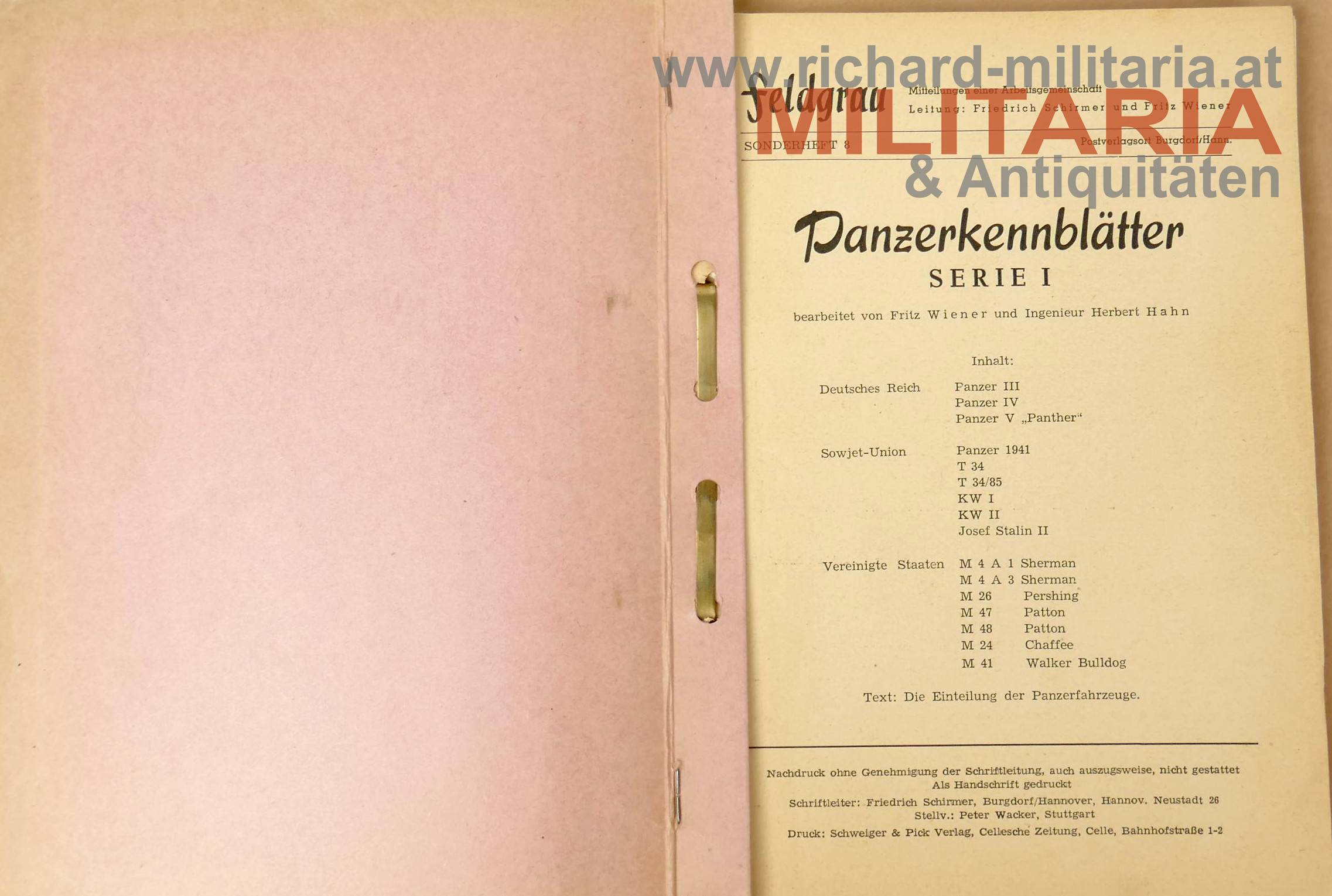 Panzer Kennblätter - 4 Sammelmappen; bearbeitet von Fritz Wiener und Herbert Hahn; Wien - 1957; Serie FELDGRAU;