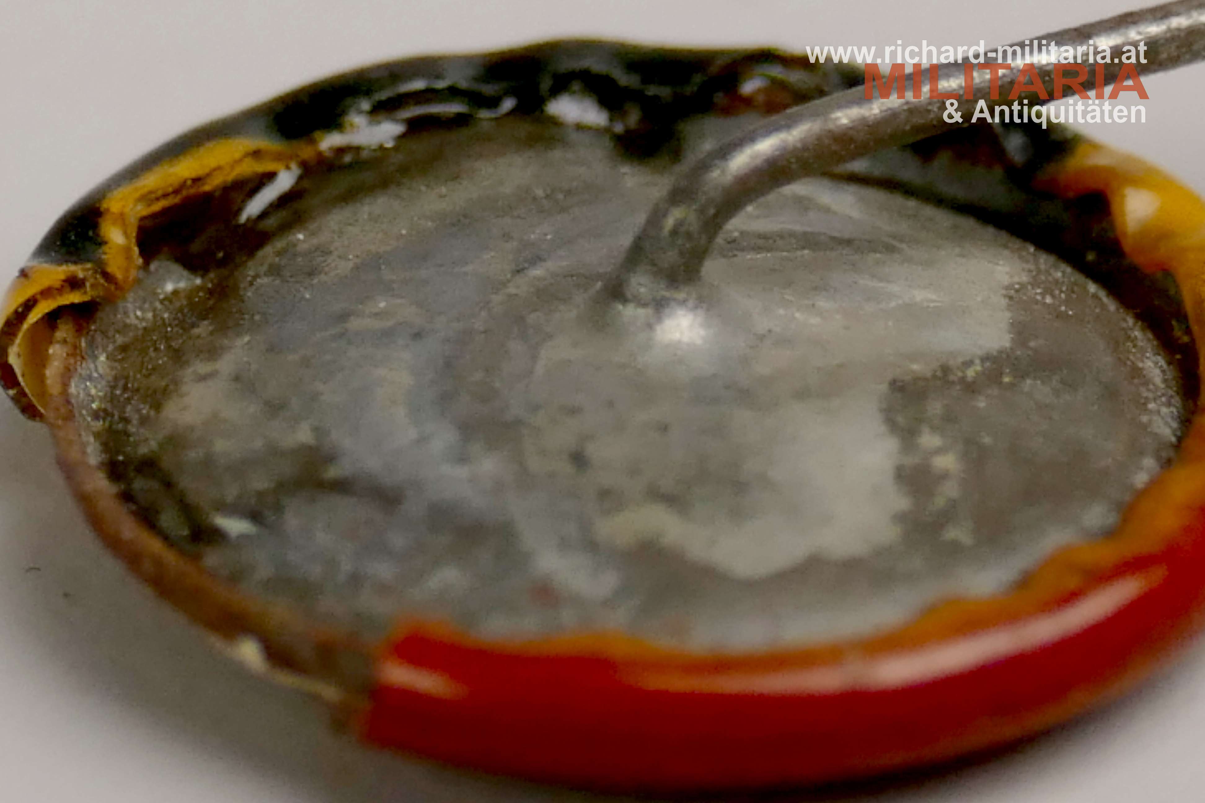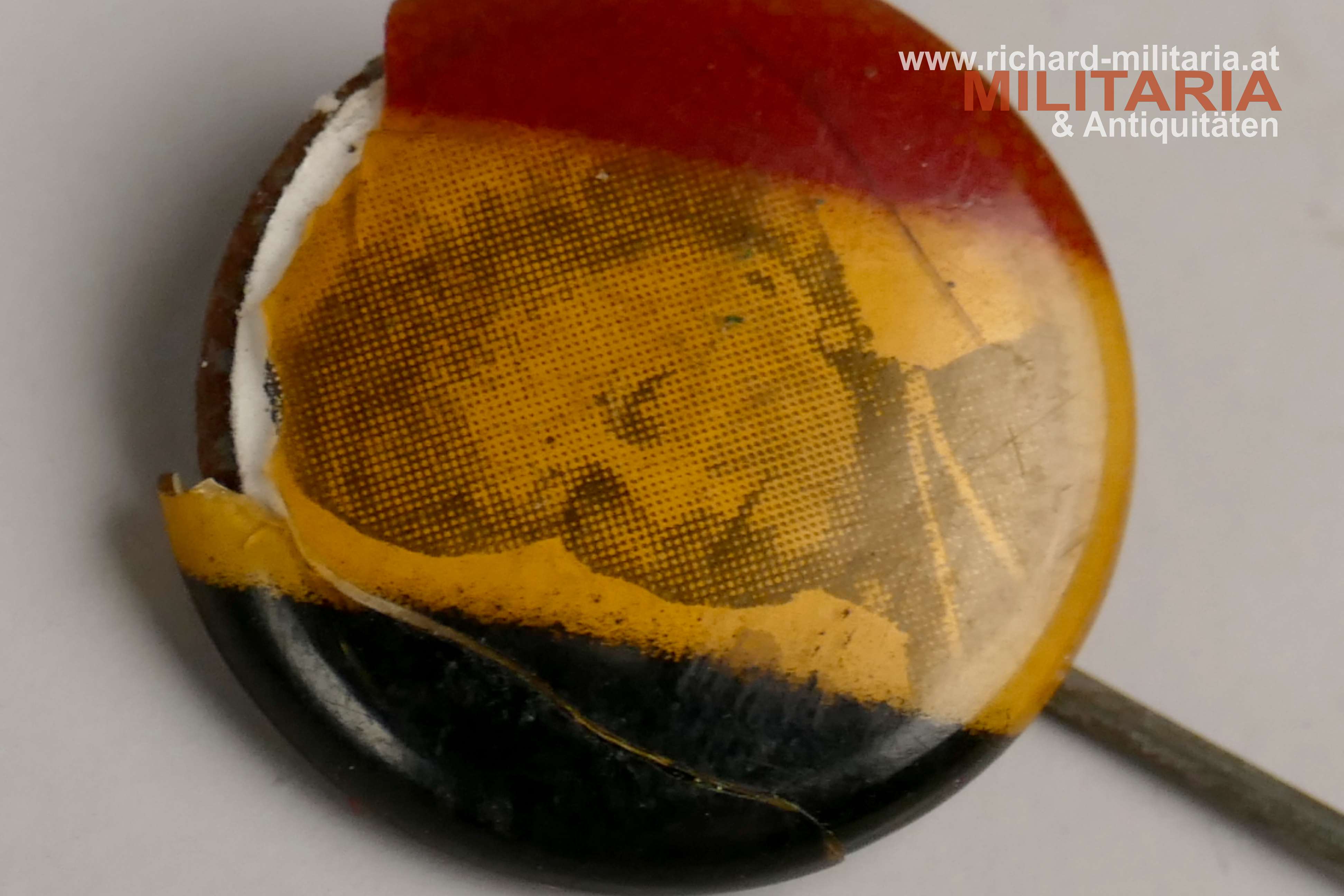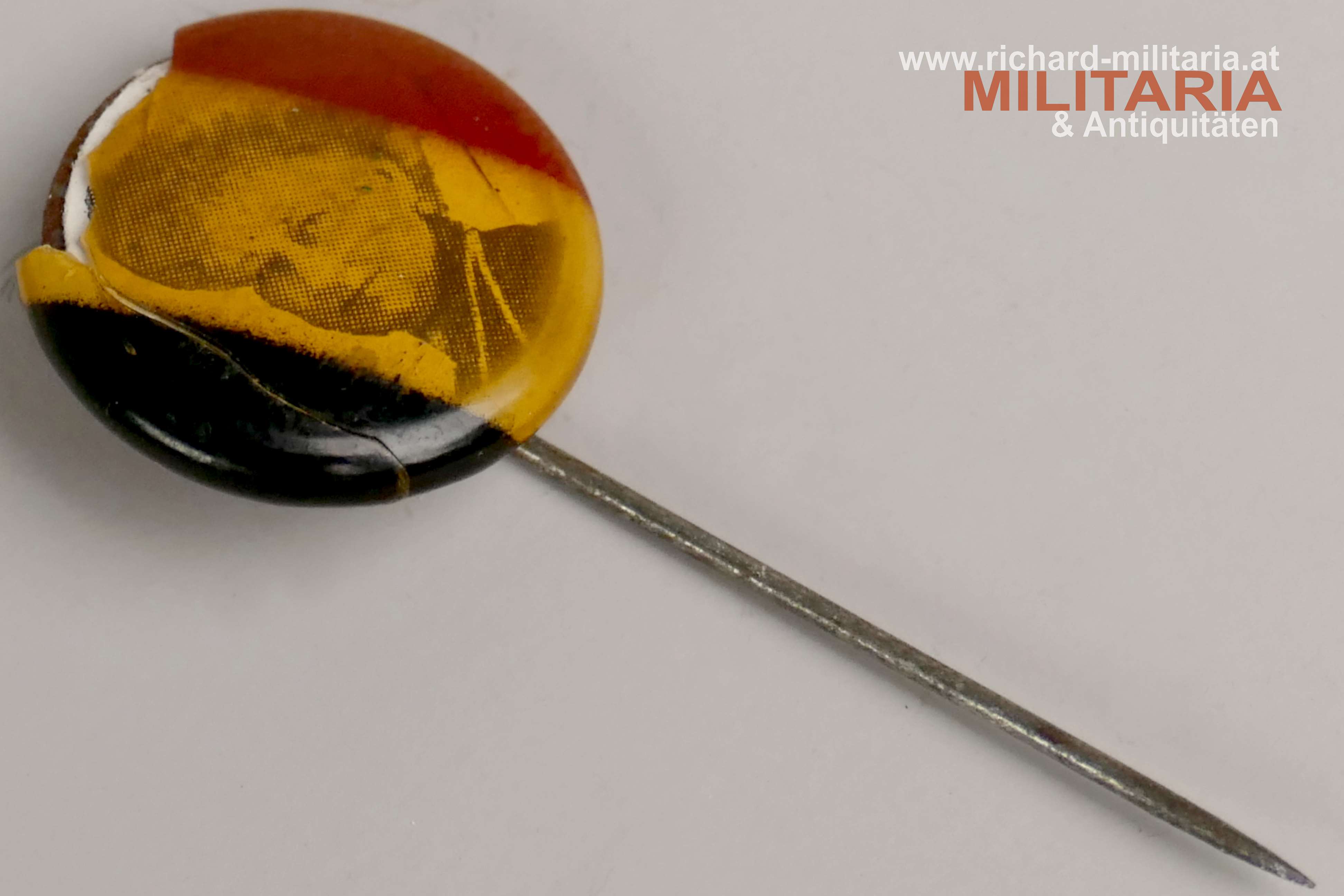 Patriotische Anstecknadel, Foto von der Frau von Kaiser Wilhelm - Auguste Viktoria, Pin ist in den Deutschlandfarben gehalten, am Rand deutlich beschädigt, originale Nadel;
