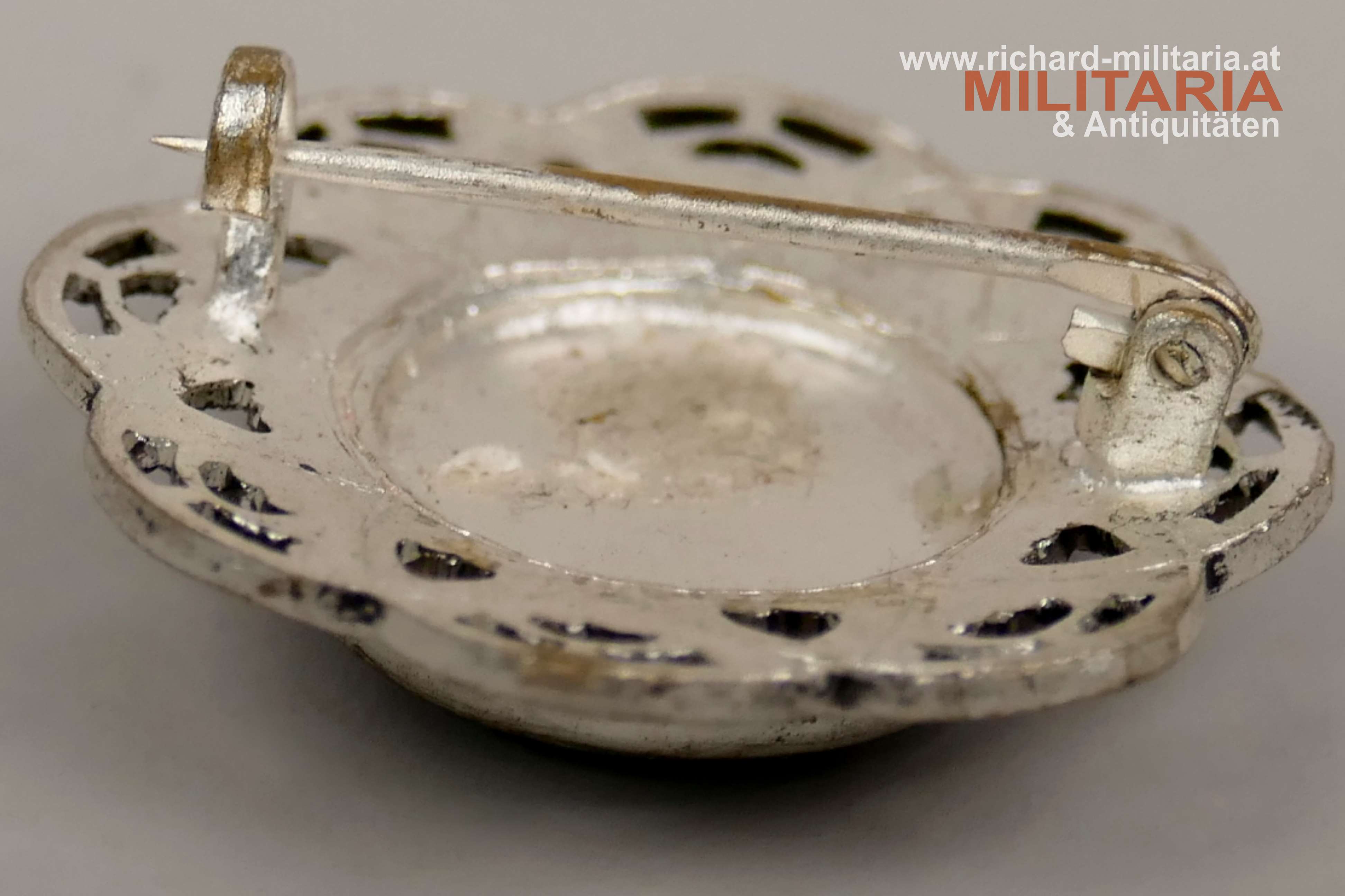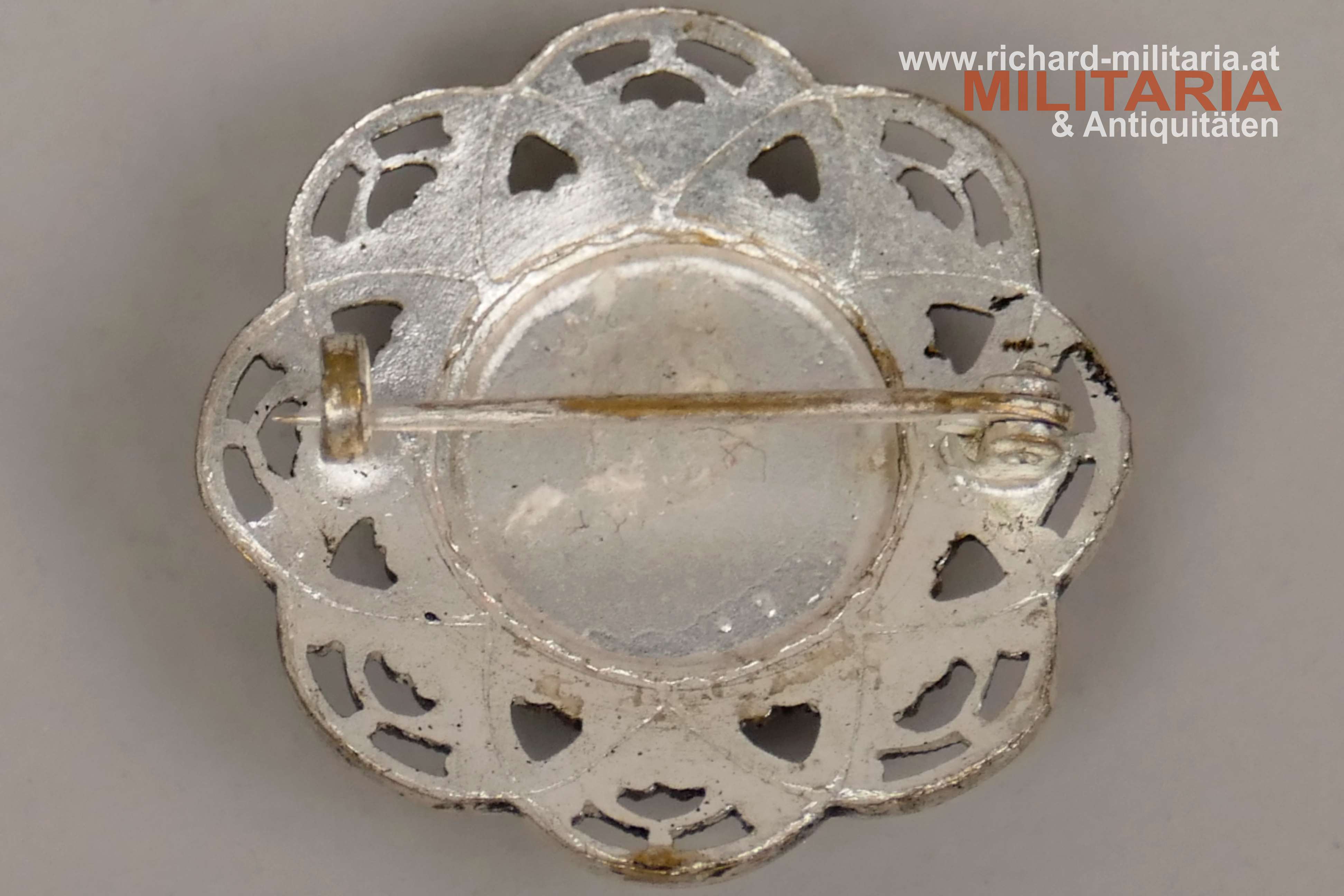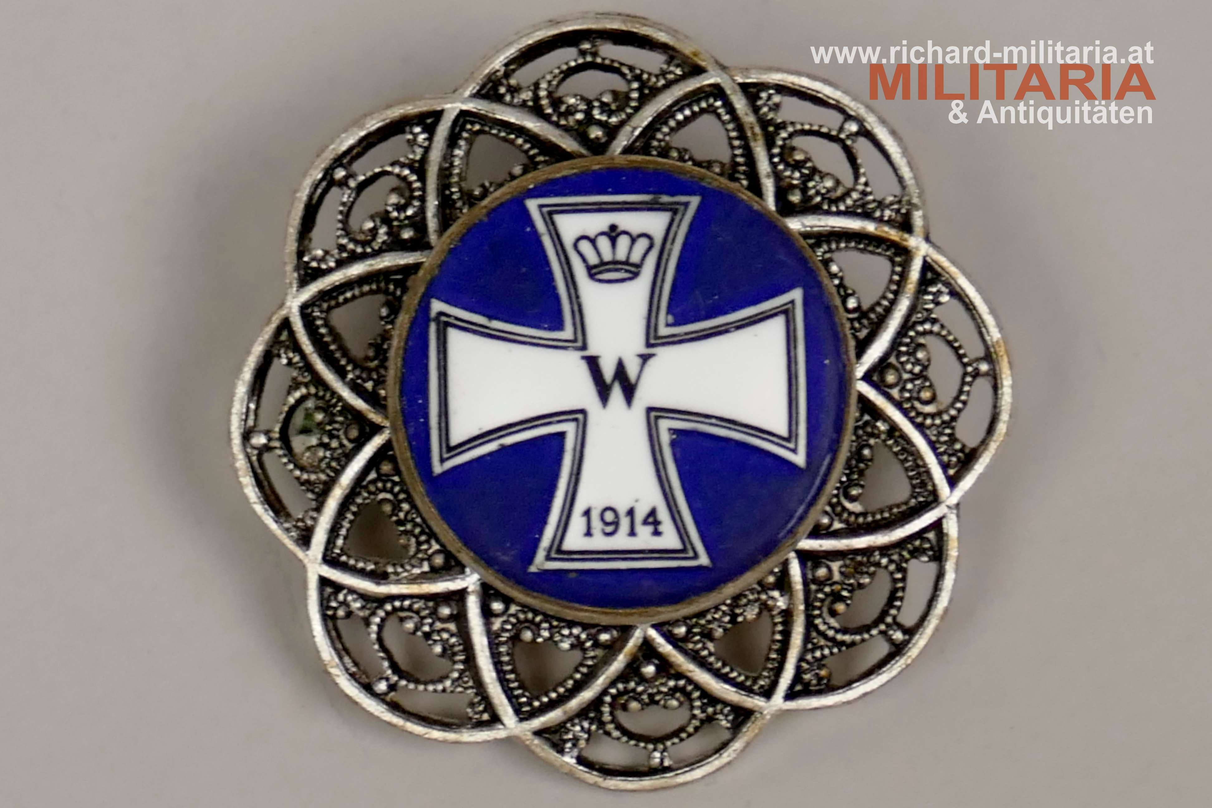 patriotische Brosche 1914 - Eisernes Kreuz in einer Filigraneinfassung; Tombak versilbert und teilweise emailliert; originales Nadelsystem;