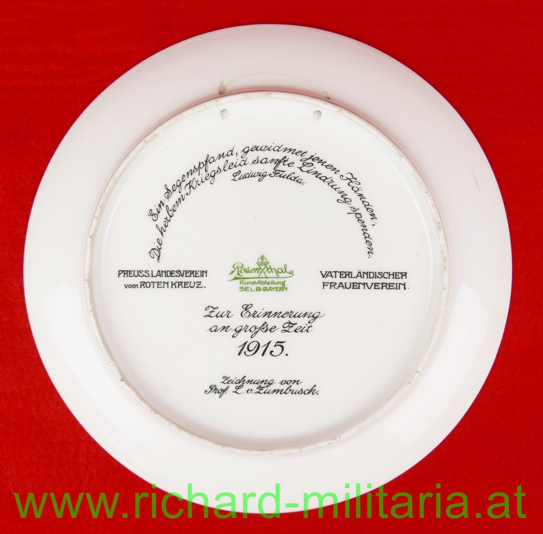 Produktinformationen "Patriotischer Porzellan Teller " Zur Erinnerung an grosse Zeit 1915 " LV Rotes Kreuz"