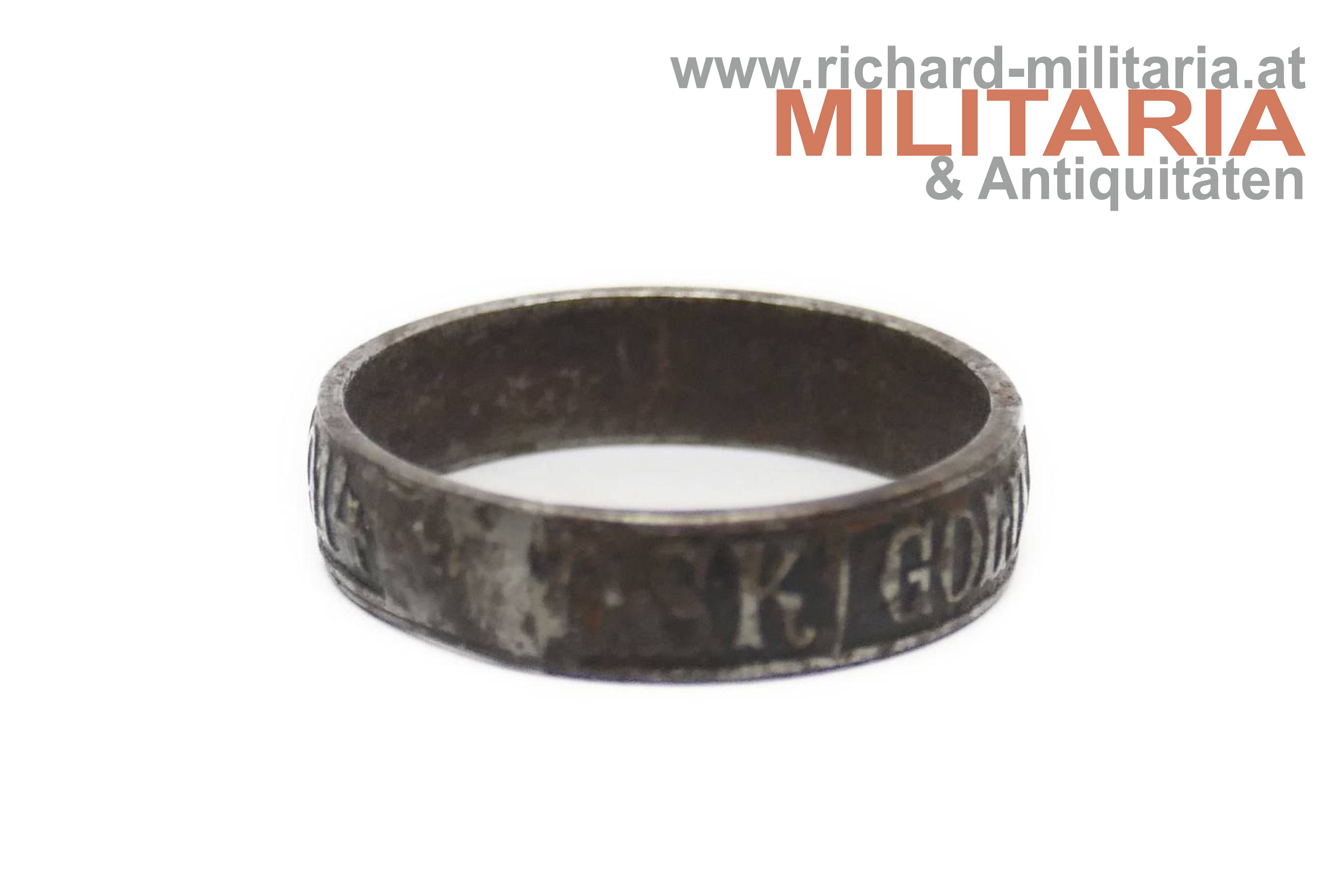 patriotischer Ring - "Gold gab ich für Eisen 1914 - Ö.S.K."; Eisen mit Oxidationsspuren;