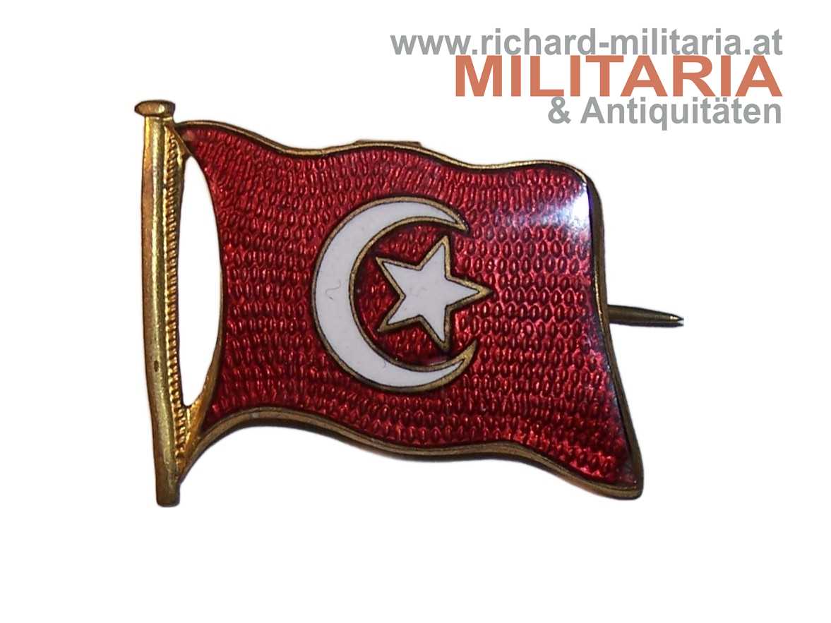 patriotisches Abzeichen - türkische Flagge; Tombak vergoldet und emailliert; originales Nadelsystem;