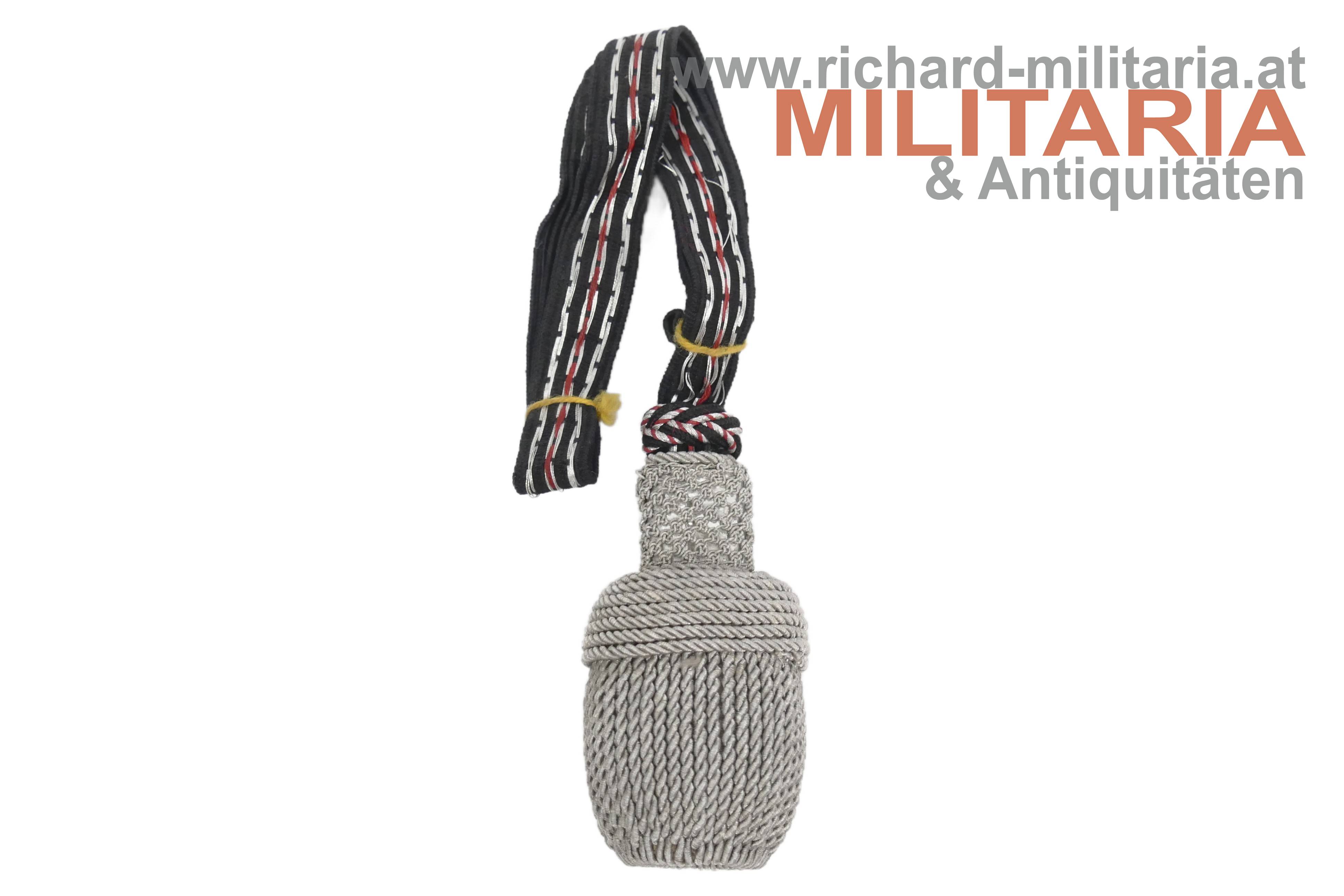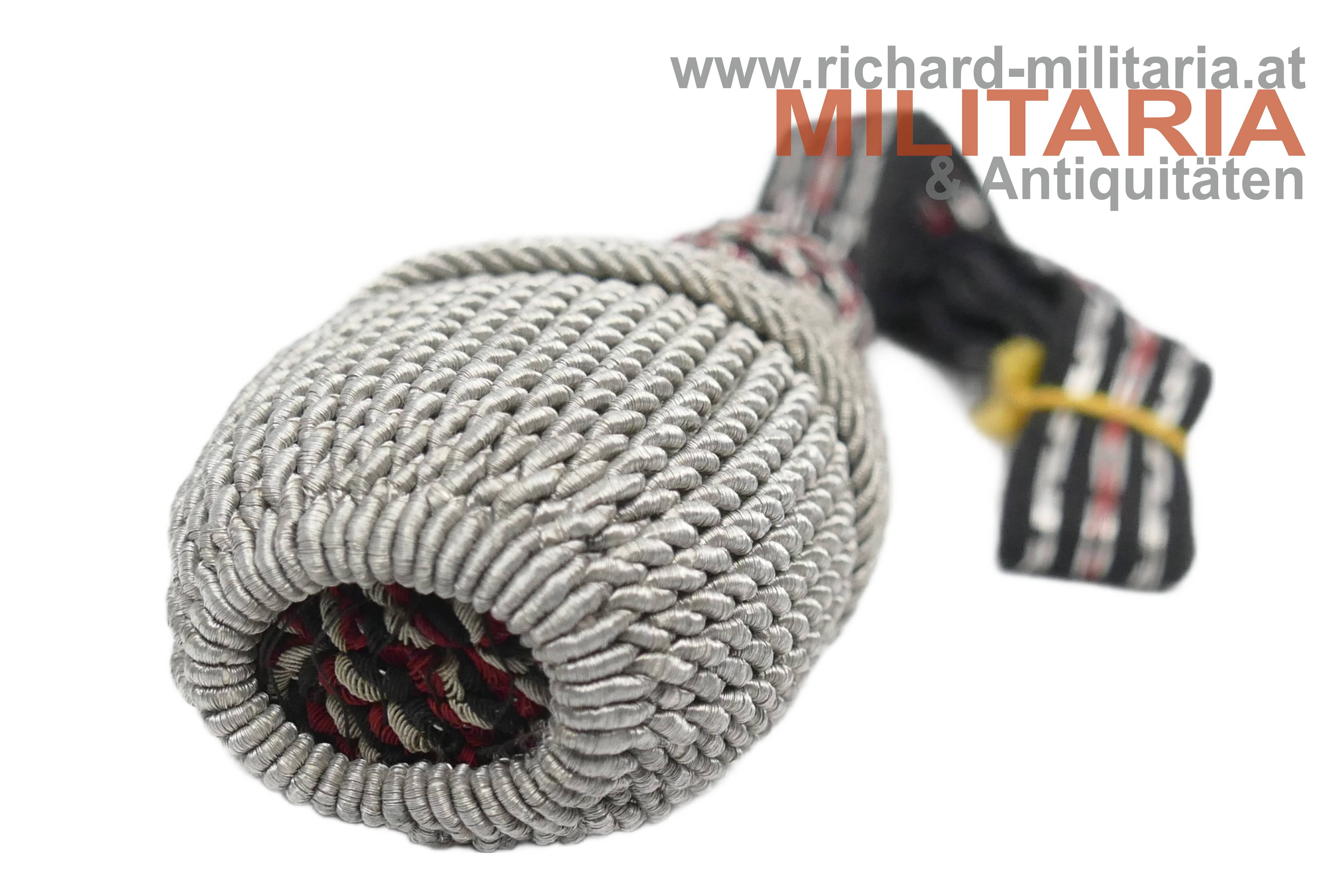 Führerdegenportepee für die Polizei im Dritten Reich; schwarzes Gewebeband mit Durchzügen aus Aluminiumfäden; in der Mitte mit rotem Durchzug aus Stofffade; Quaste aus silbernen Aluminiumfäden;