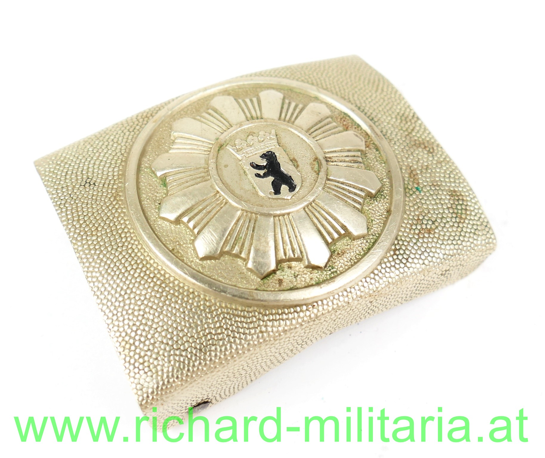 Polizei Westberlin um 1950 - Koppelschloss, Nickel durchgeprägt, Schwärzung des Berliner Bären zu 100 % erhalten,