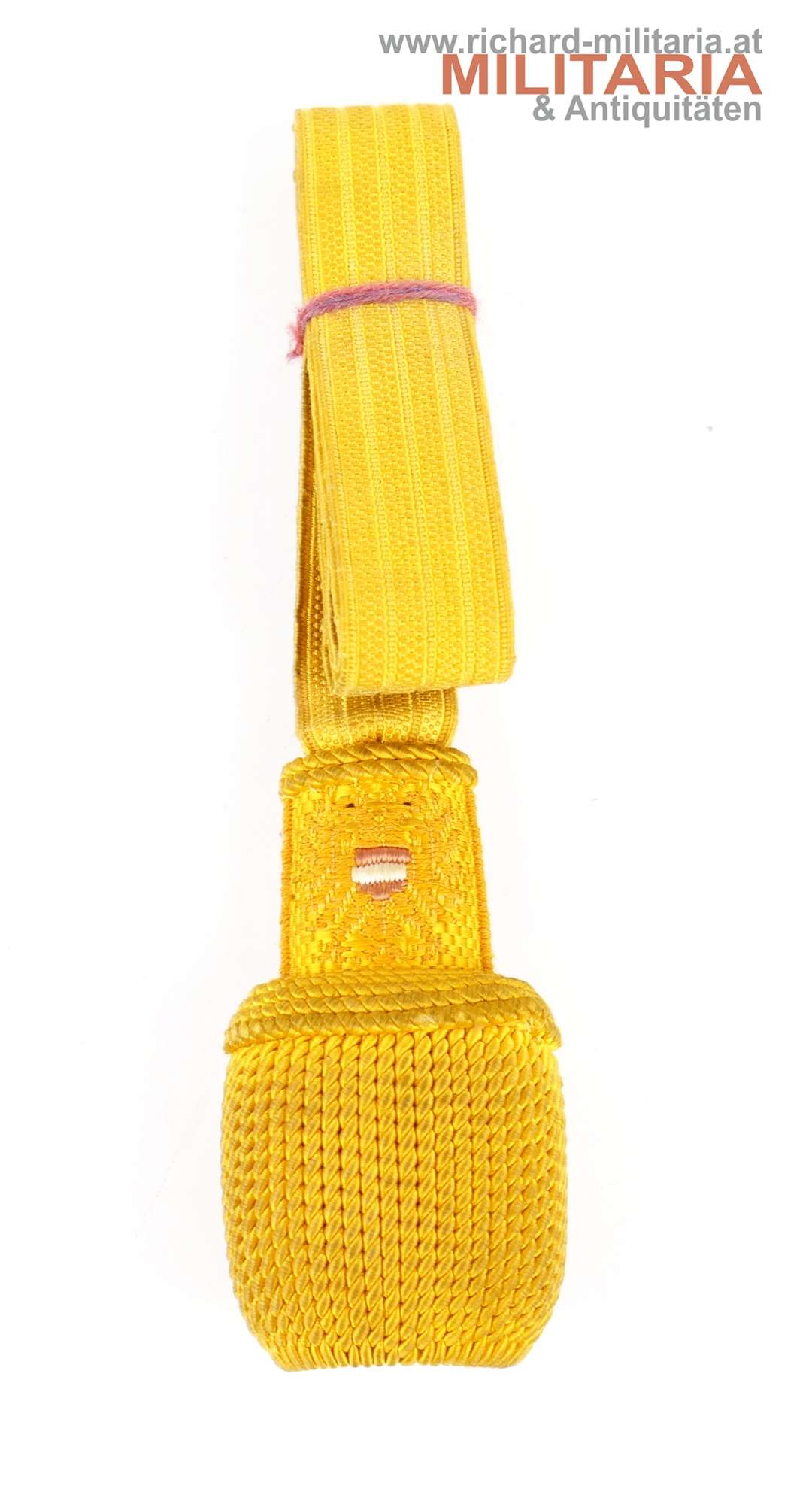 Portepee für Chargen des Österreichischen Bundesstaates (1934-38) M.34, geschlossene Ausführung für das Bajonett, Fertigung aus kaisergelber Schafwolle, Band mit drei Durchzügen, Bundesstaat-Adler mit österreichischem Bindenschild an der Quaste, ungeöffnet