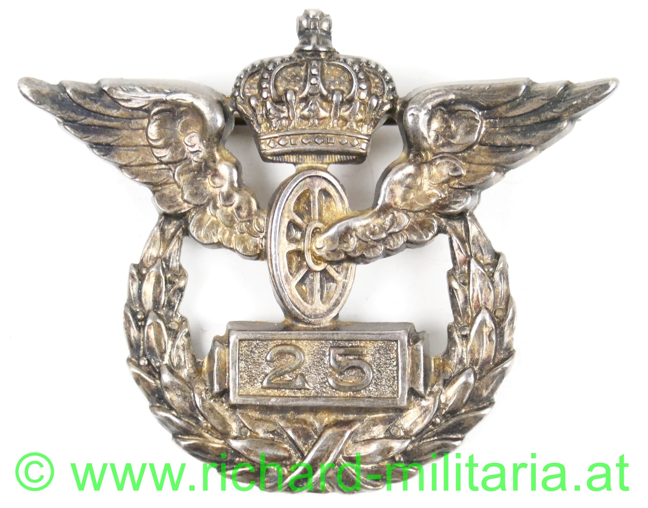 Erinnerungszeichen der preussischen Staatsbahn für 25 Jahre, echt Silber punziert mit 800 u. Halbmond mit Krone, Hersteller: Joh. Wagner & Sohn, Berlin; mit originaler Nadel