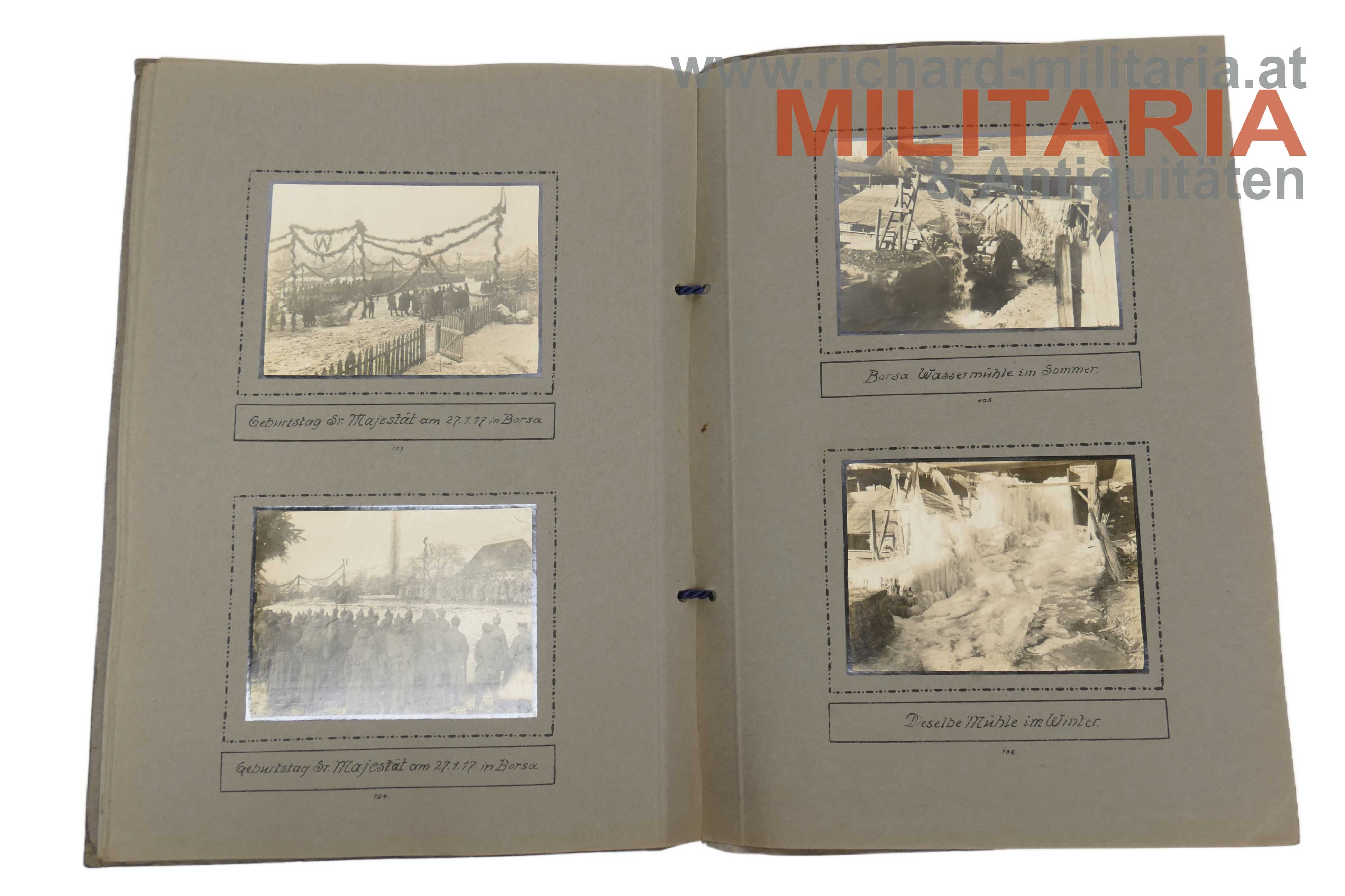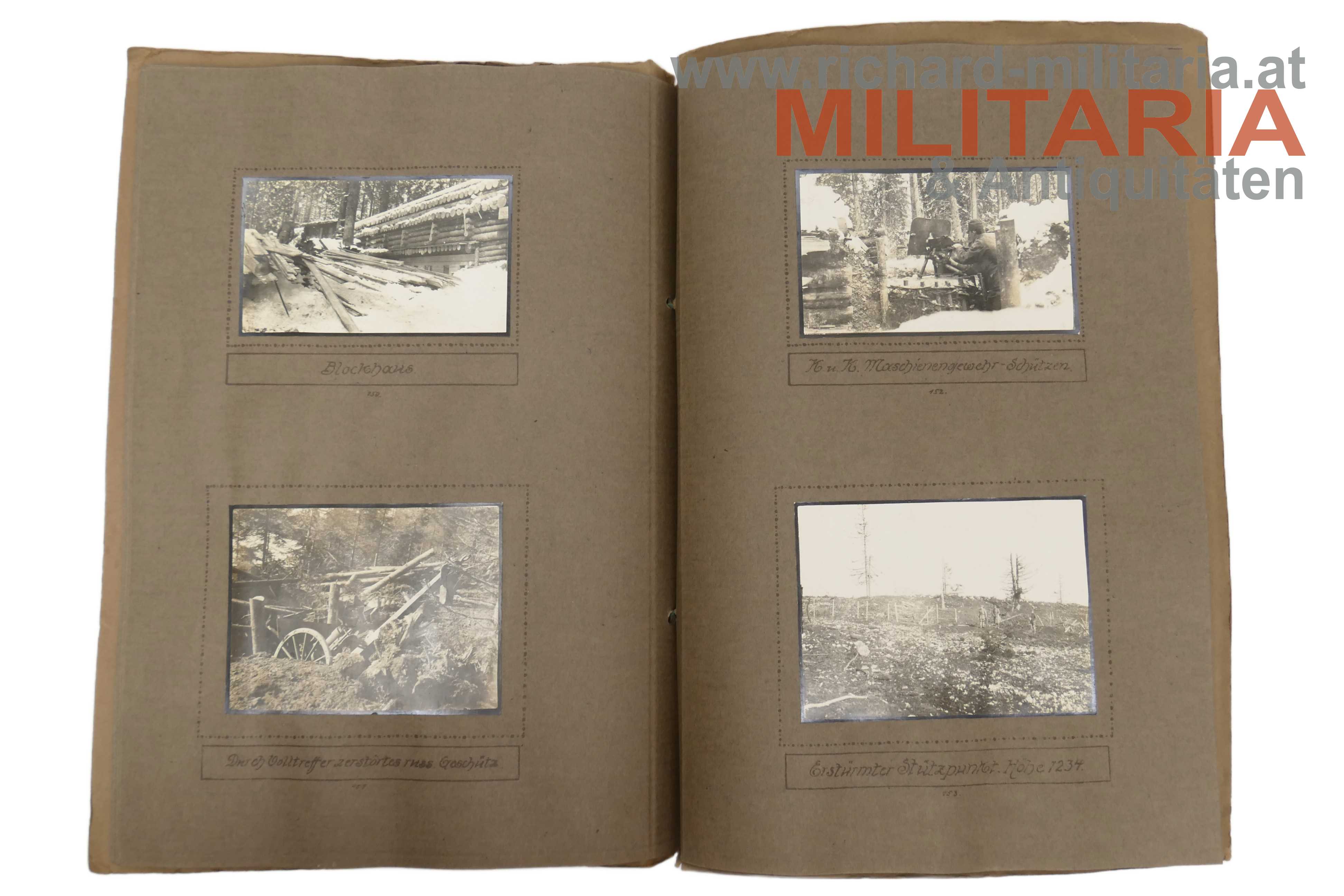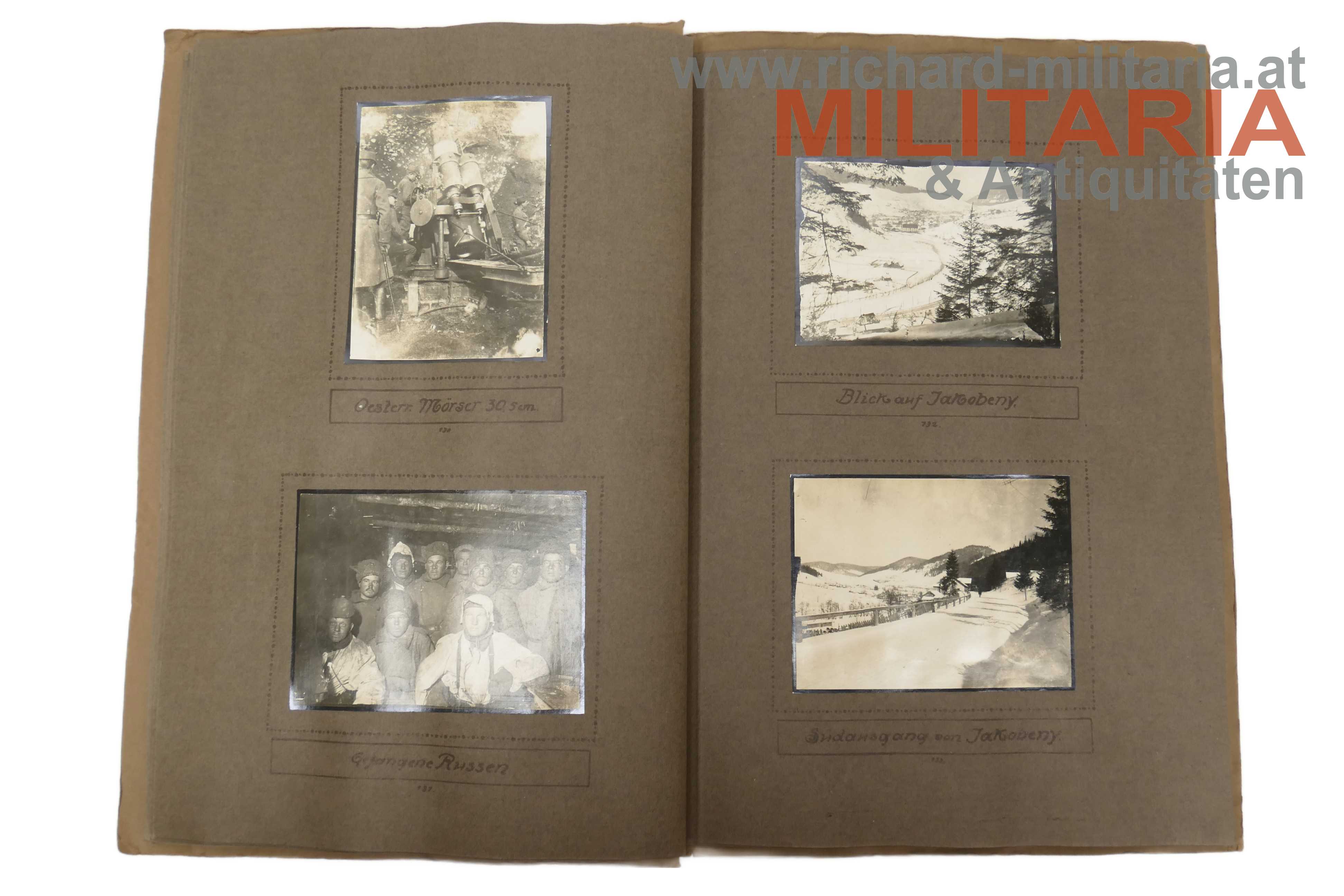 Preußen/Österreich - 3 Fotoalben der 1. Infanterie-Division in den Jahren 1916 und 1917; Galizien/Russland; von einem deutschen Soldaten erstellte Schmuckalben mit Malereien und Verzierungen; alle Fotos detailliert beschriftet und nummeriert; österr.-ungarische Soldaten und deutsche Soldaten gemeinsam im Kampf an der Galizien-Front!