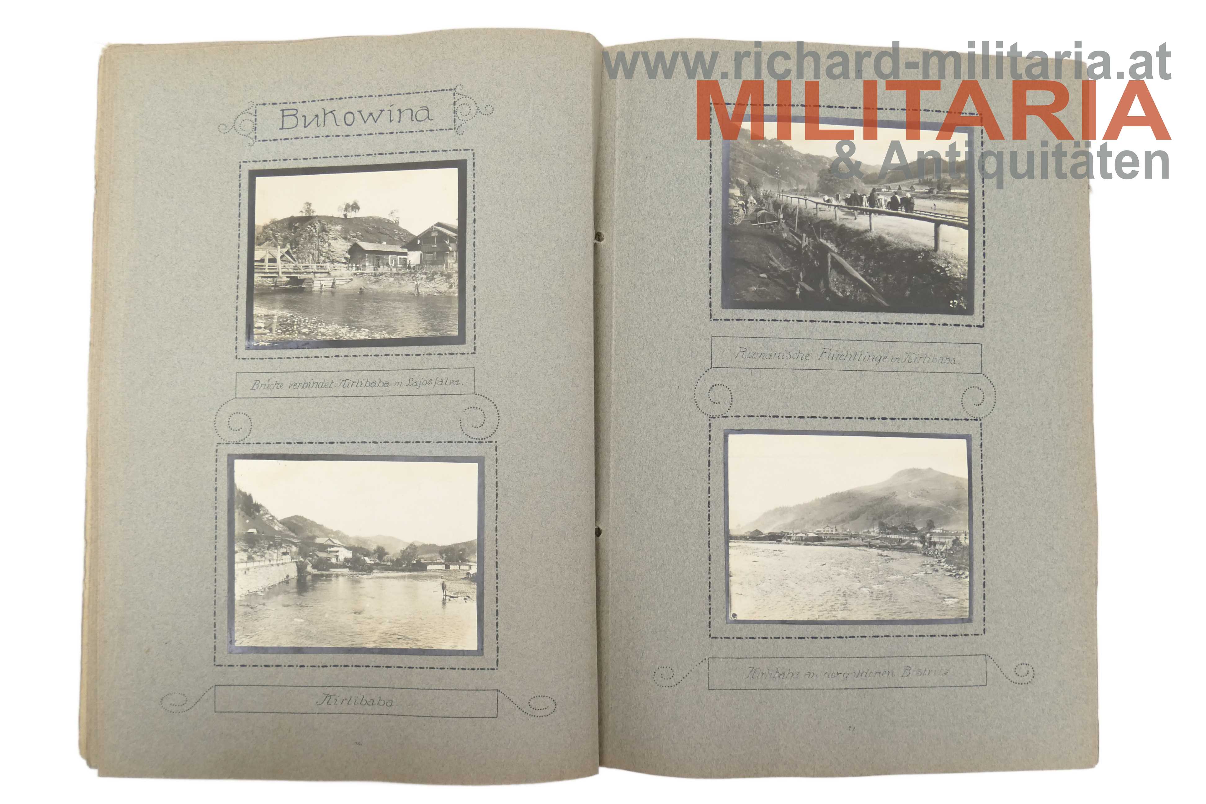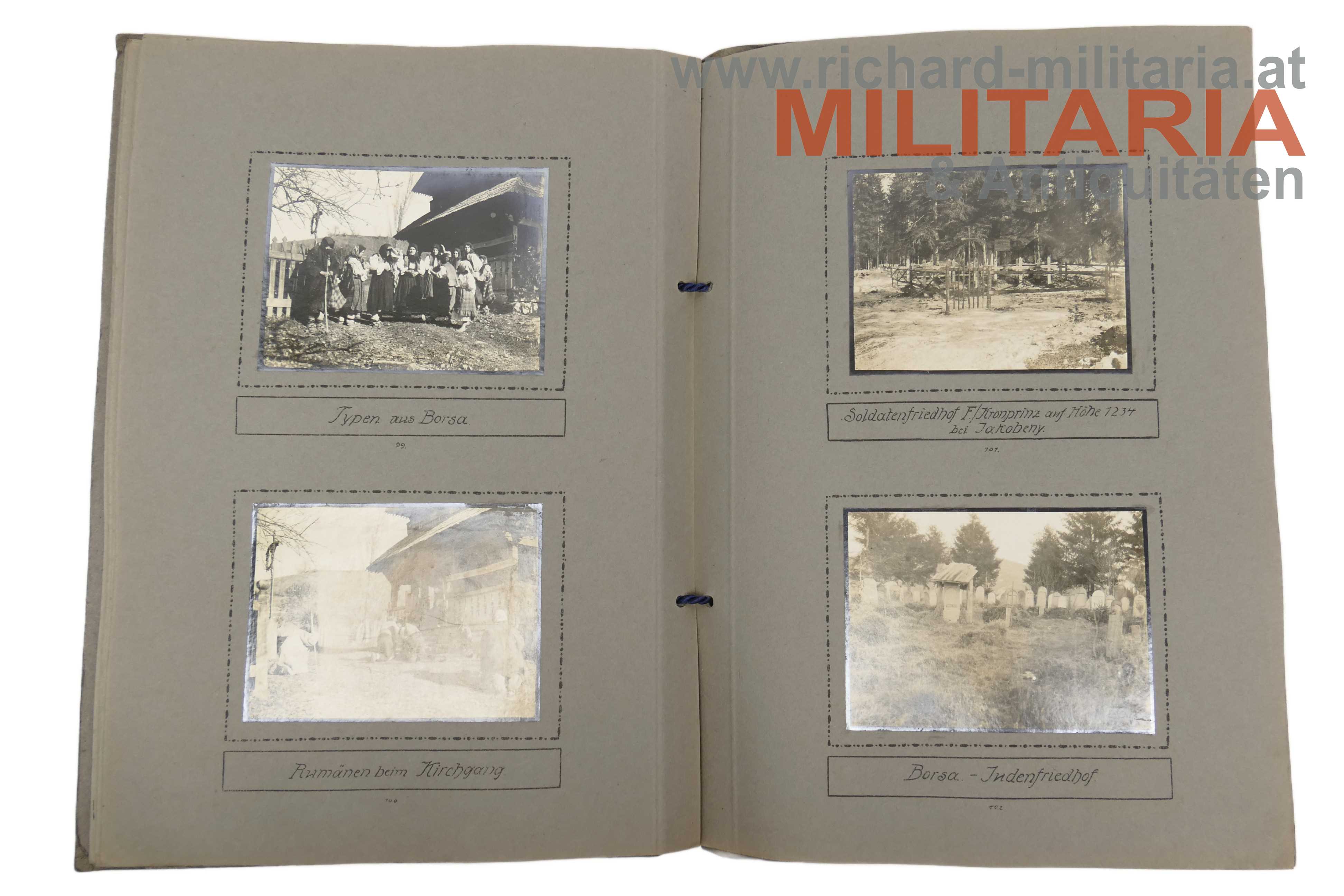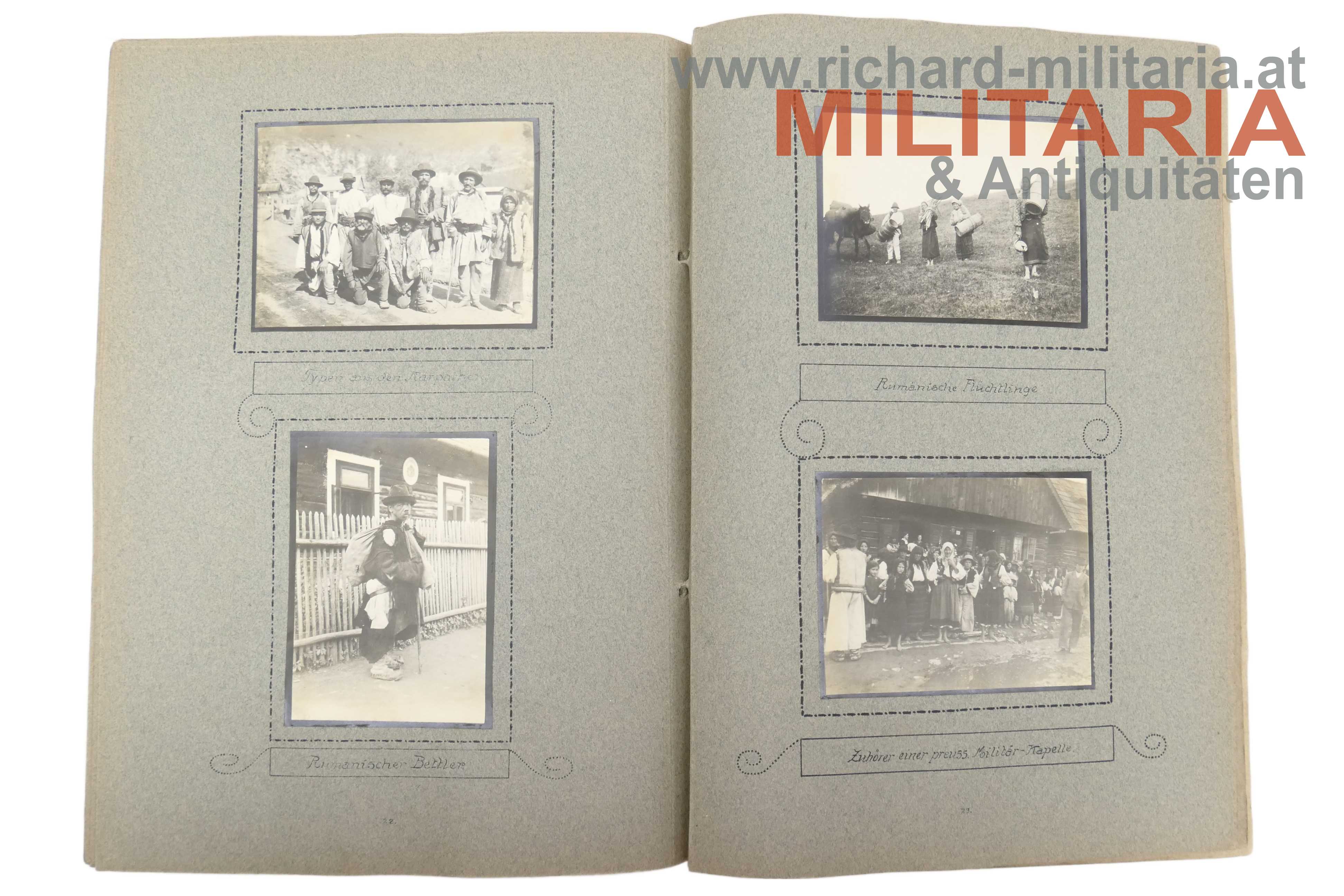 Preußen/Österreich - 3 Fotoalben der 1. Infanterie-Division in den Jahren 1916 und 1917; Galizien/Russland; von einem deutschen Soldaten erstellte Schmuckalben mit Malereien und Verzierungen; alle Fotos detailliert beschriftet und nummeriert; österr.-ungarische Soldaten und deutsche Soldaten gemeinsam im Kampf an der Galizien-Front!