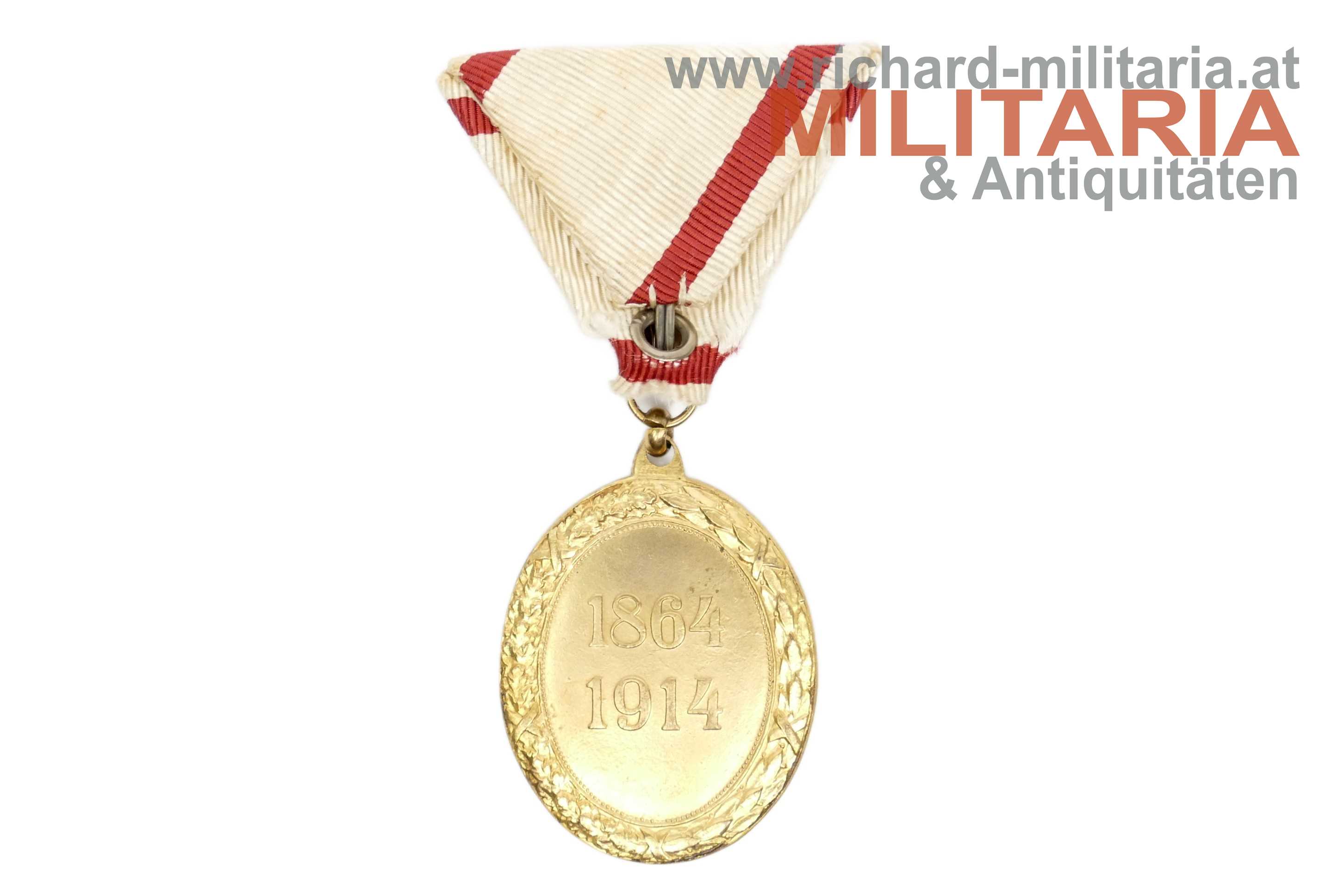 Rotes Kreuz - Bronzene Ehrenmedaille mit Kriegsdekoration; Bronze feuervergoldet; Kriegsdekoration emailliert - unbeschädigt; am originalen leicht ausgefransten Band;