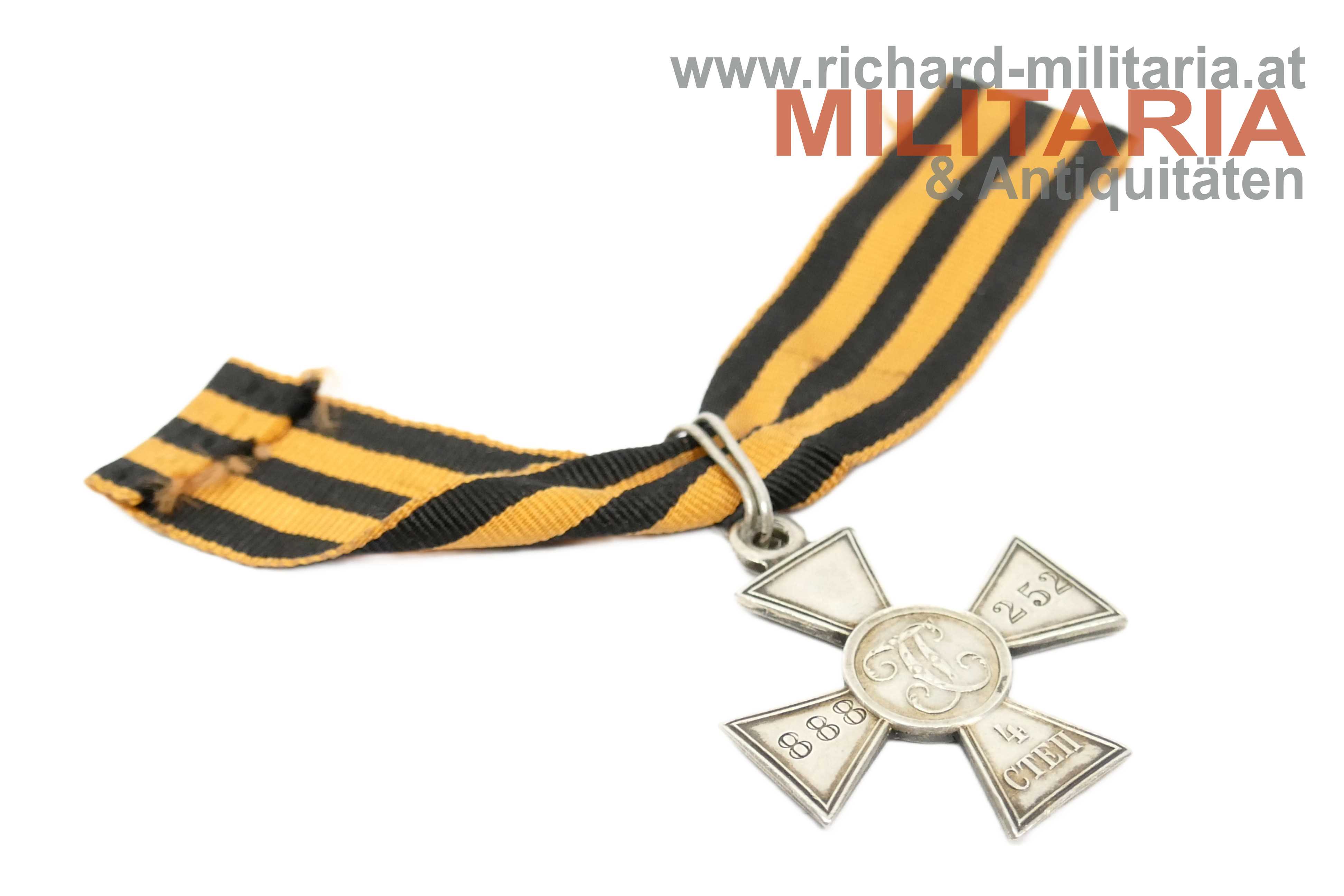 Russland - St. Georgs-Kreuz 4. Klasse; Silber; mit der Nummer "888 252" auf dem linken bzw. rechten Kreuzarm; am späteren passenden Durchzugsband;