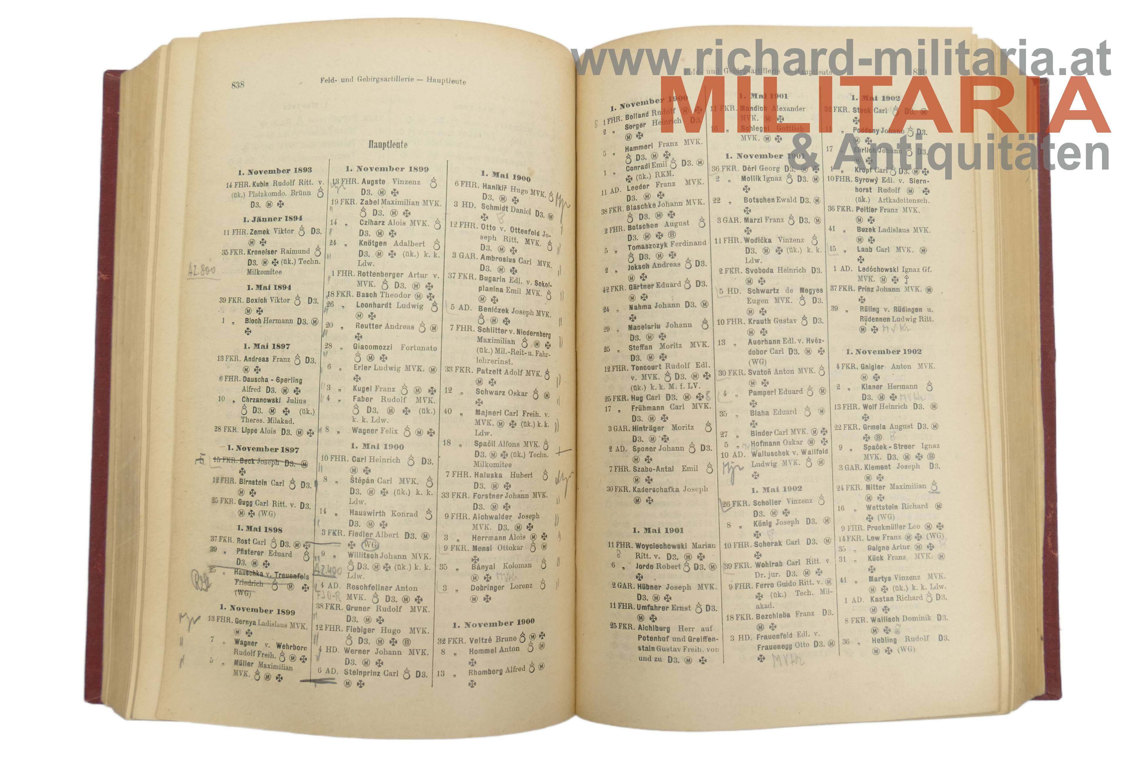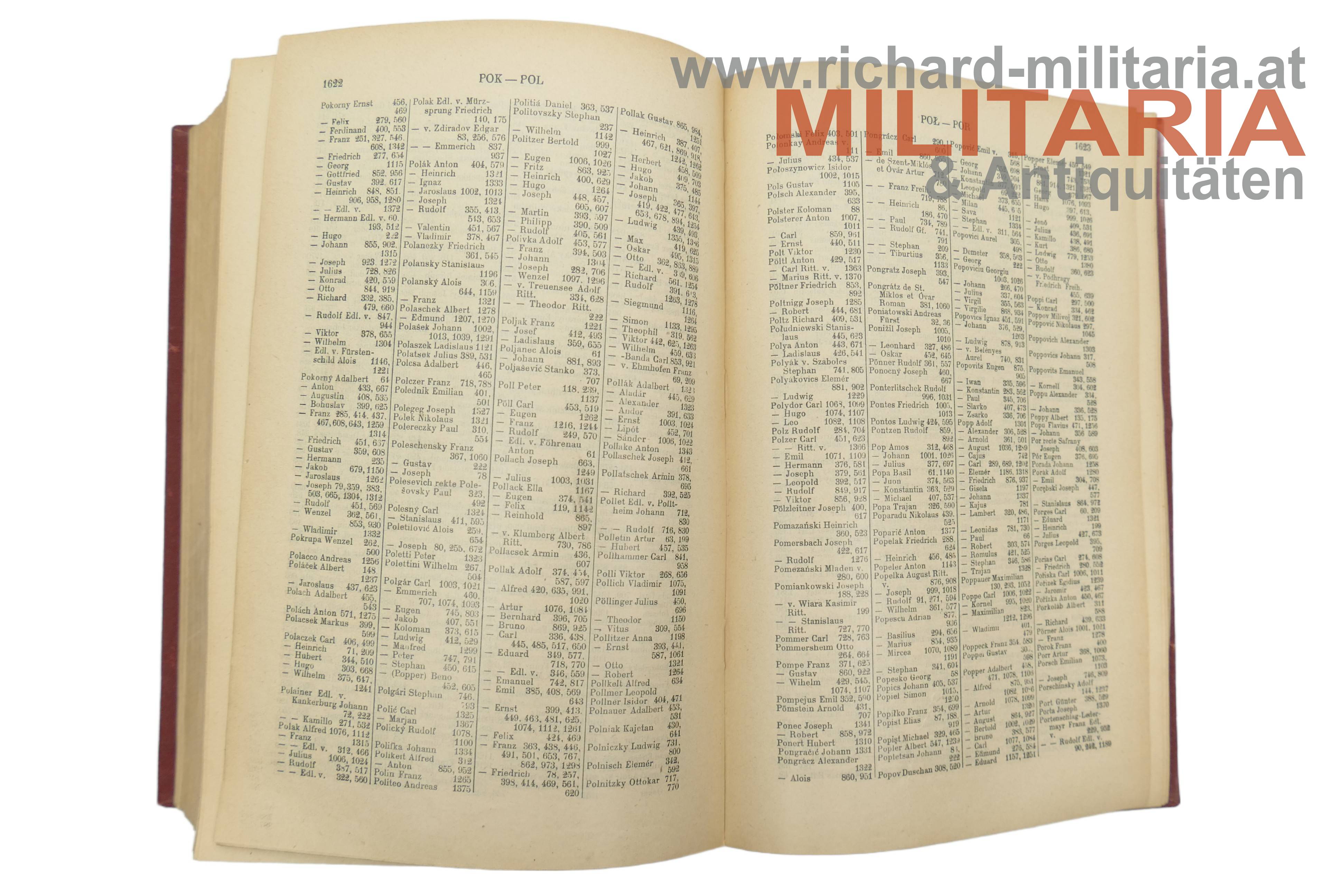Schematismus für das k. u. k. Heer und die k. u. k. Kriegsmarine 1911; roter Einband mit Abnutzungsspuren; 1711 Seiten - vollständig; benutzt.