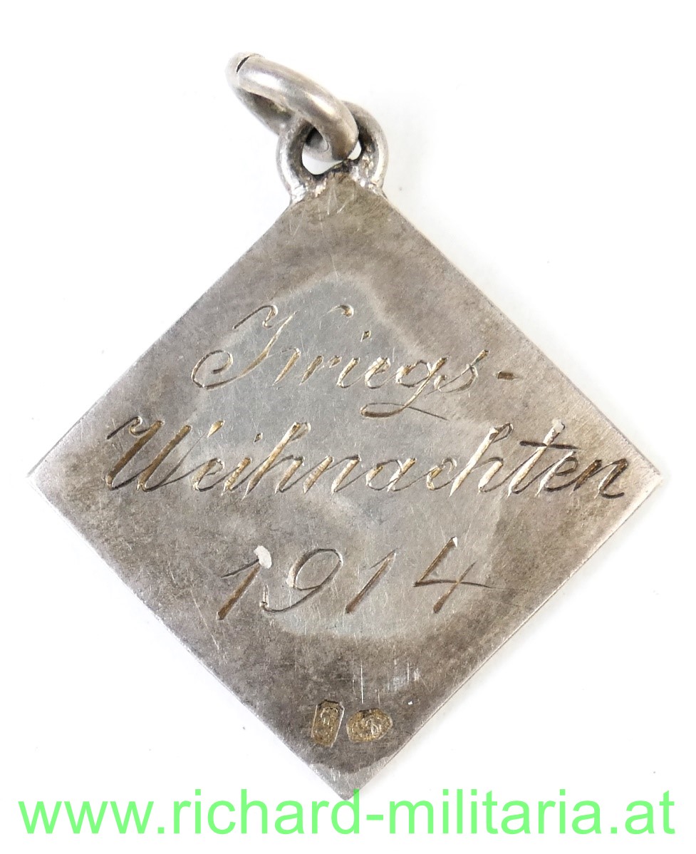 Schmuckanhänger vom Roten Kreuz mit Widmung: "Kriegsweihnachten 1914", Silber punziert, emailliertes Rotes Kreuz,