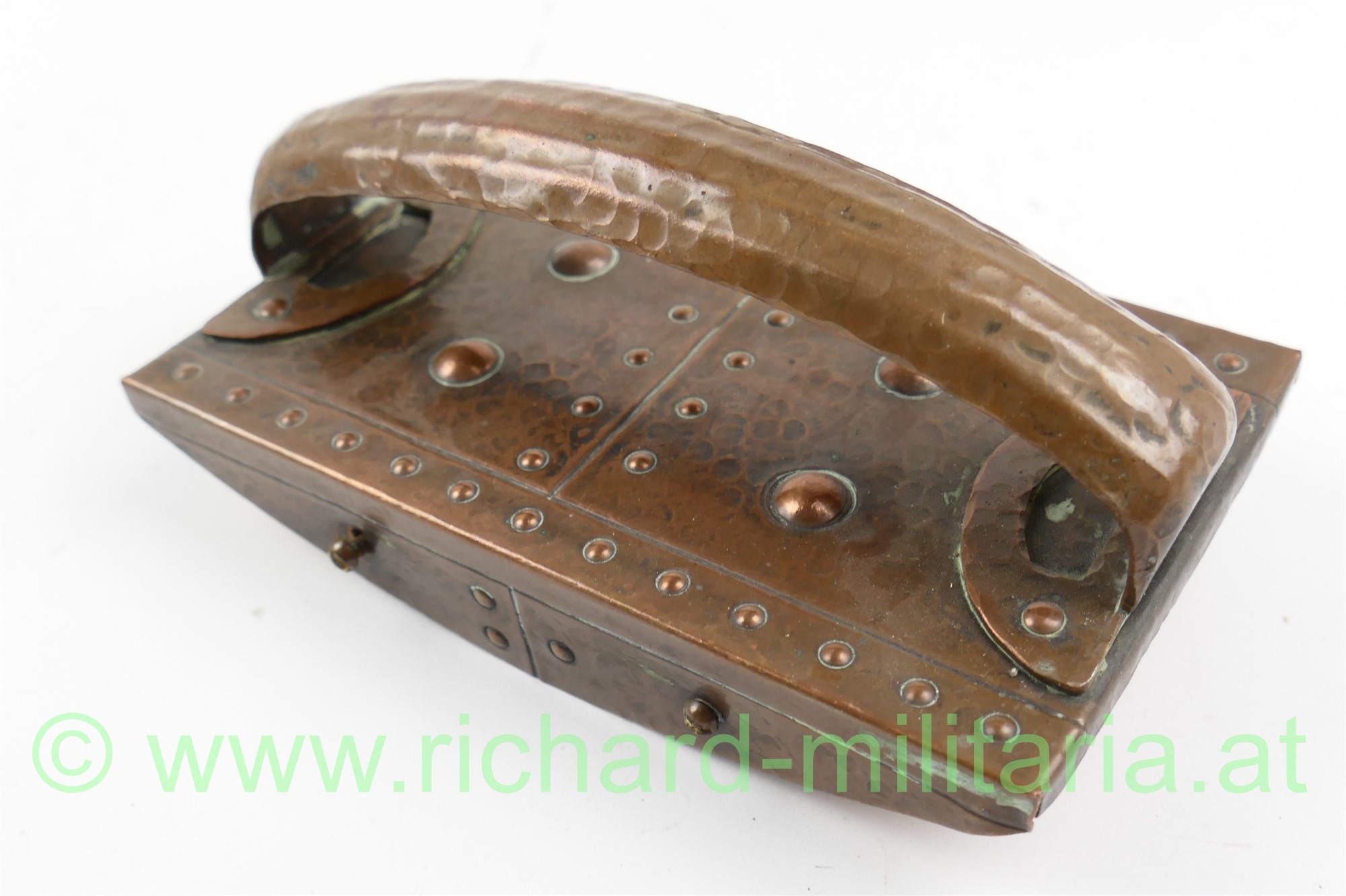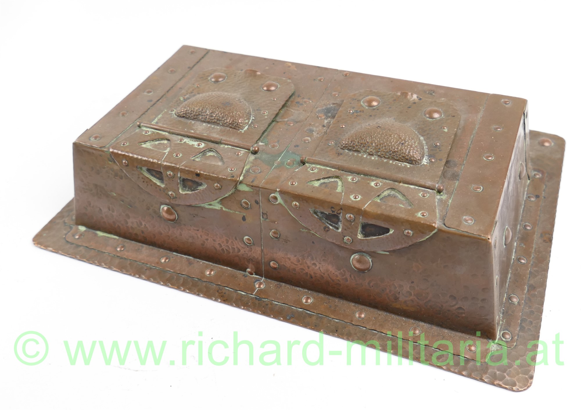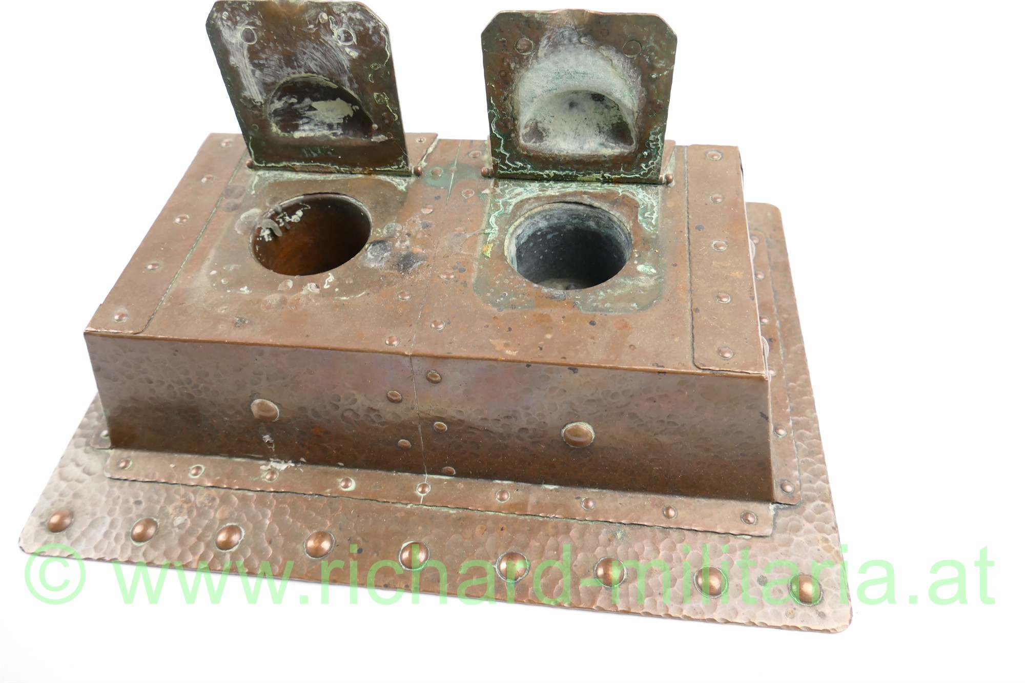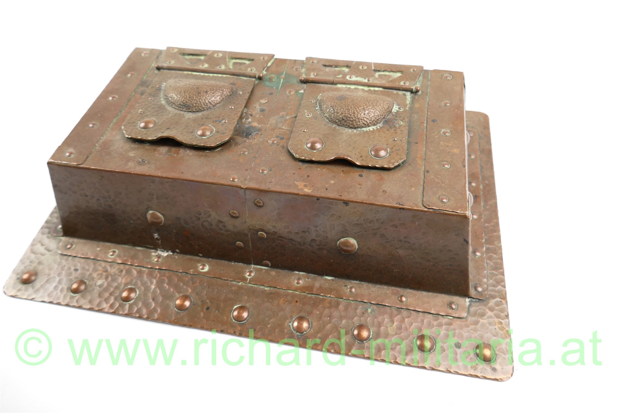 Komplette, handgefertigte Schreibtischgarnitur, Kupfer, sehr guter Zustand;