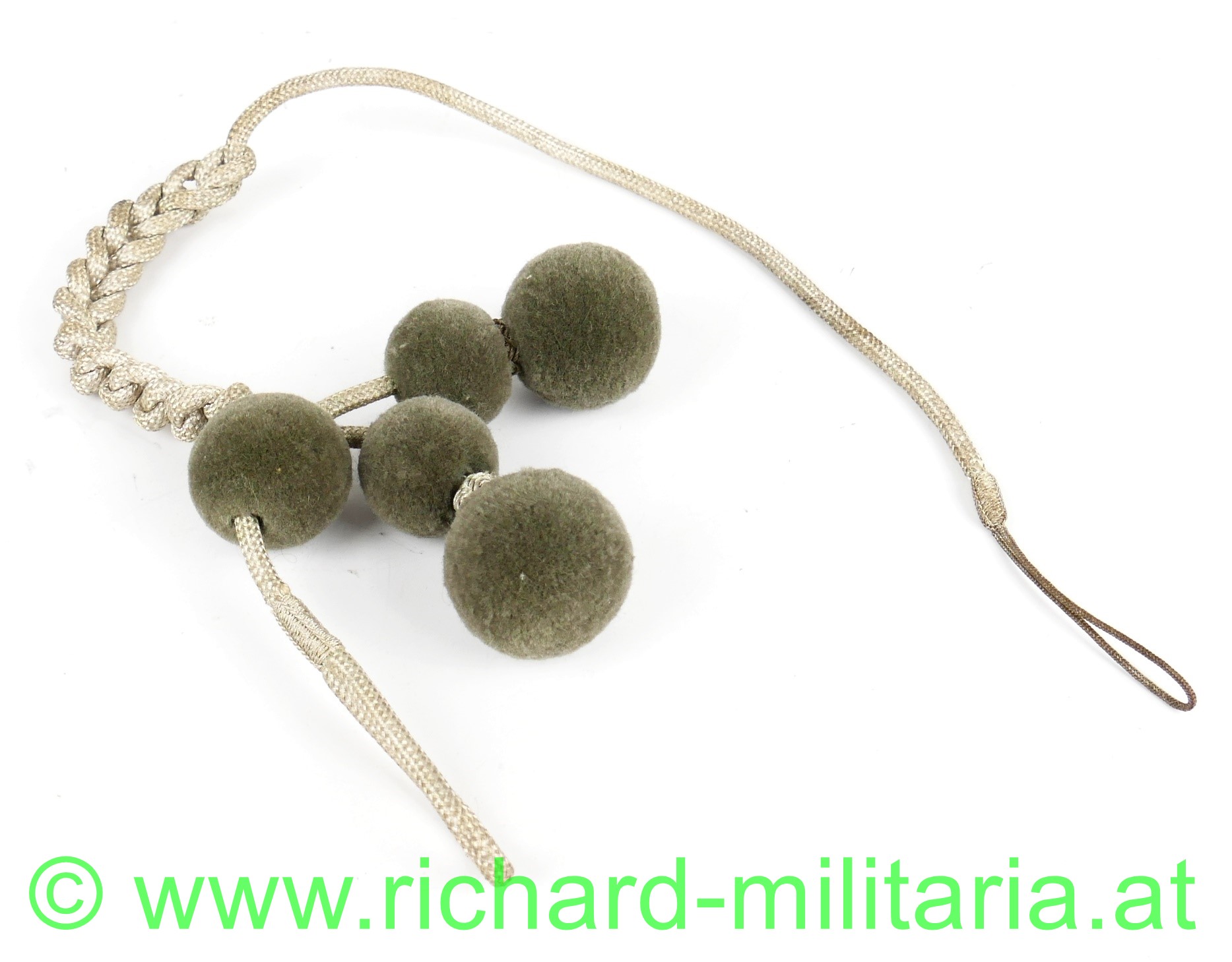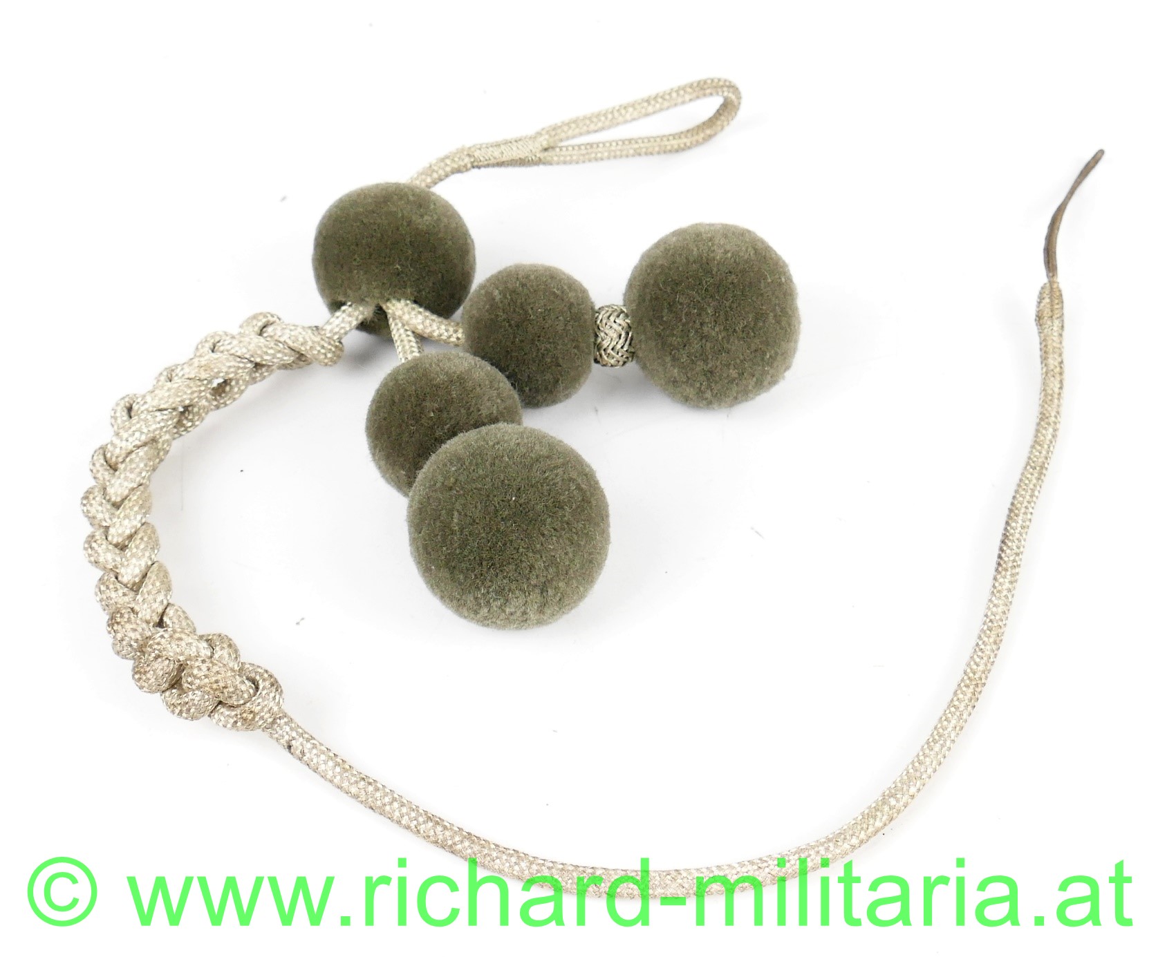 Infanterie Schützenauszeichnung der 1. Republik - Österreich, Rundschnur aus Silber-Lurex, daran angehängt 5 feldgraue Wollballen,