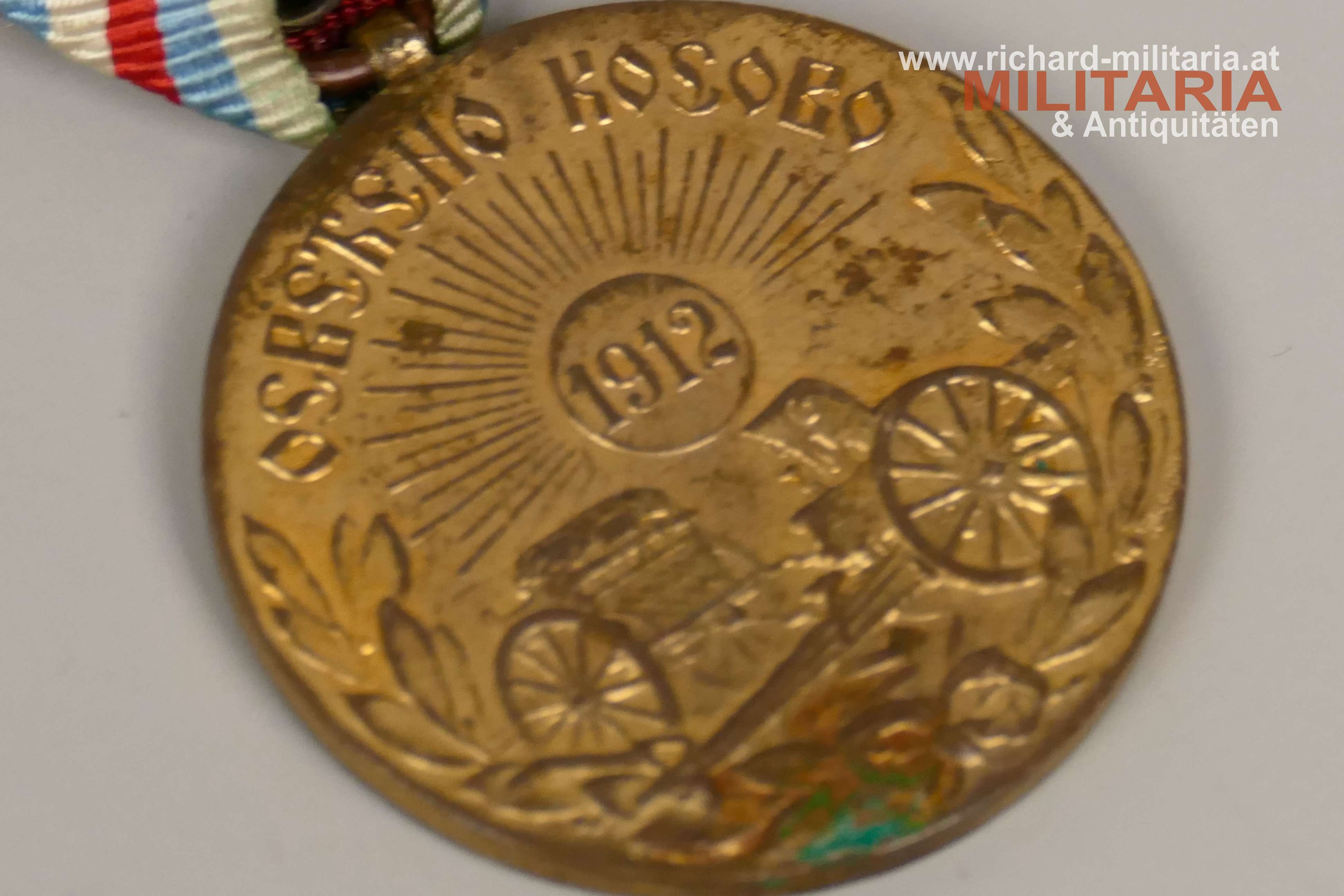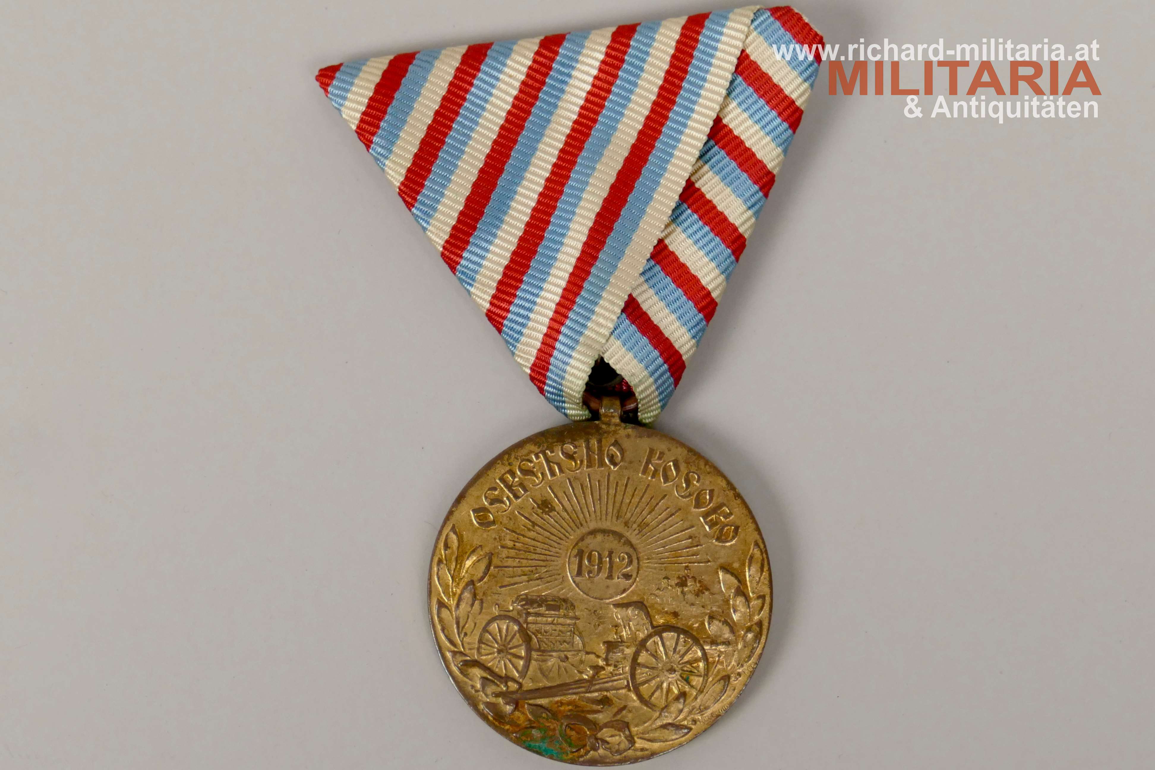 Serbien Medaille - Befreiung des Kosovo 1912, zur Erinnerung an den serbisch-türkischen Krieg, Bronze vergoldet, Durchmesser 36 mm, dazugehöriges Dreiecksband,