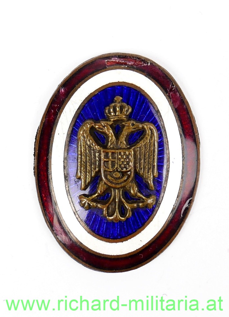 Serbien Mützenkokarde für Polizei, Tombak emailliert, Email mit Tragespuren; Rückseite mit Querspange,