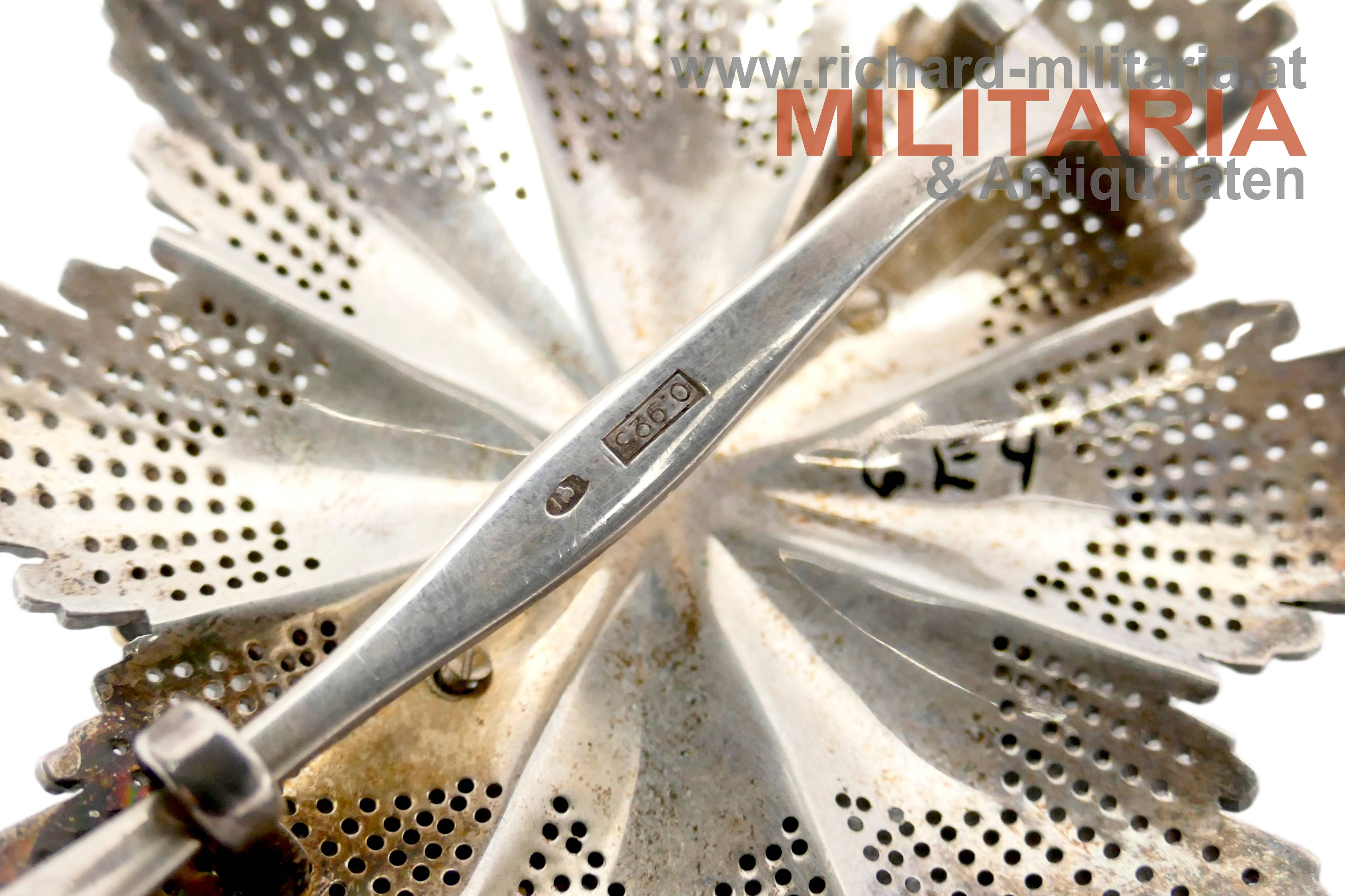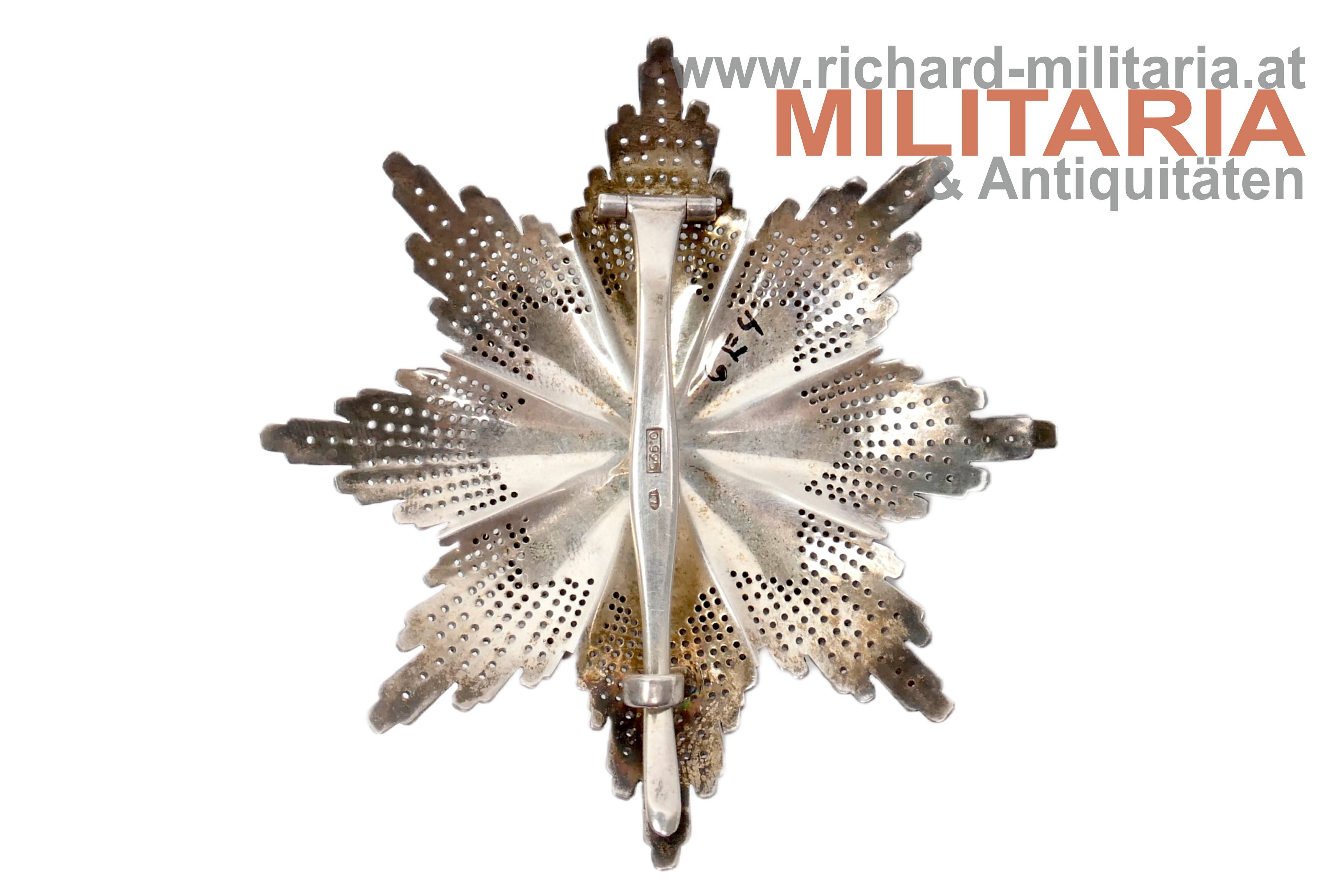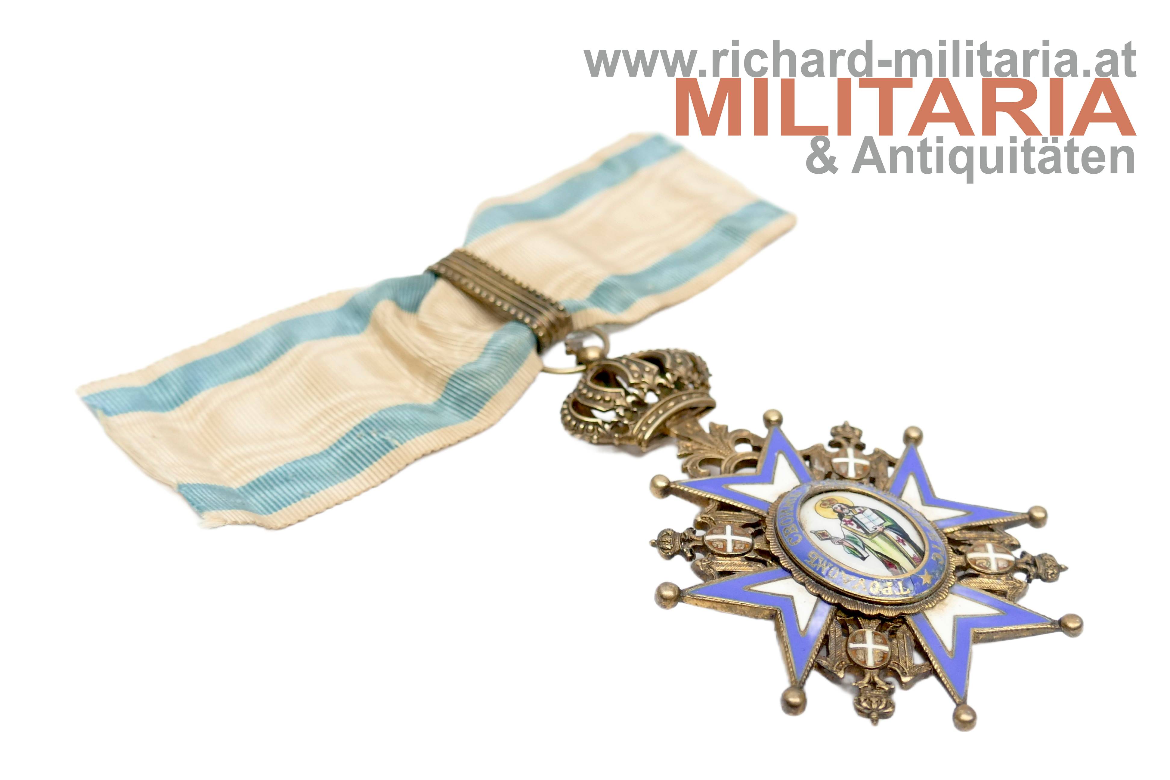 Serbien - St. Sava-Orden - Set der 2. Klasse (3. Modell) im privat beschafften Etui; Bruststern Silber mit emaillierter teilweise vergoldeten Auflage; Silberpunze "0.925" und Herstellerpunze auf der Nadel; revers am Korpus beschriftet; Emaillierung in sehr guter Erhaltung; Halskreuz Silber vergoldet und teilweise emailliert; Emaillierung in guter Erhaltung; kleinere Emailbeschädigungen am Mitellmedaillon; am gekürzten originalen Bandabschnitt; privat beschafftes hochwertiges Etui; in guter Erhaltung;