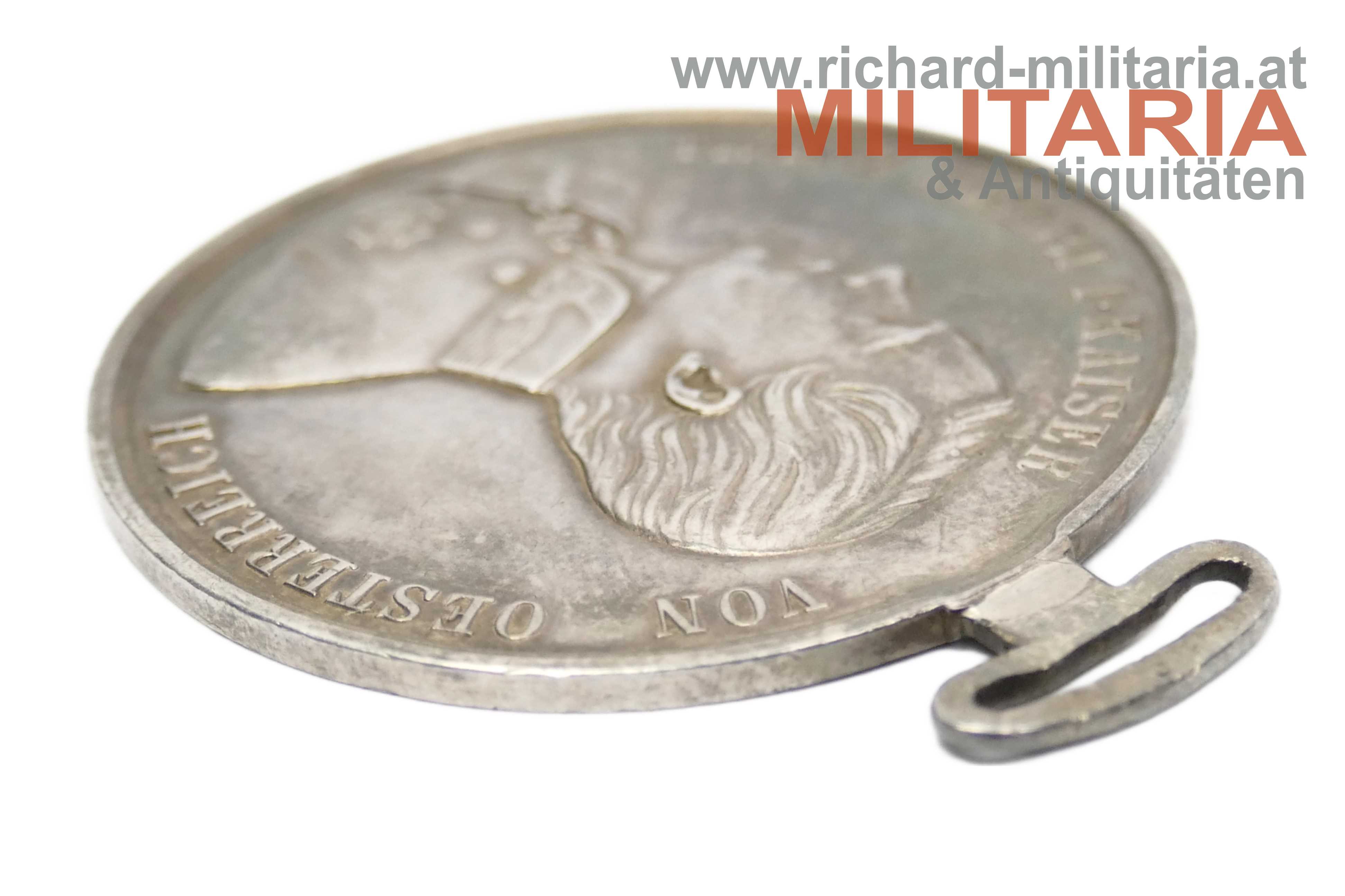 Silberne Tapferkeitsmedaille 1. Klasse Kaiser Franz Joseph - 1. Typ (1848-1859); Silber; Variante ohne Stempelschneider; Henkelöse etwas zusammengestaucht aber insgesamt schöner Zustand;