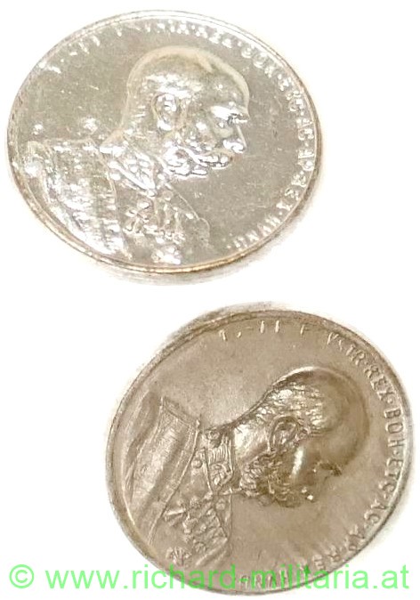 Silberne Tapferkeitsmedaille Kaiser Franz Josef 1. Klasse - Auflage für die Feldspange, Tombak versilbert, 2 Splinte, DM ca.: 14,5
