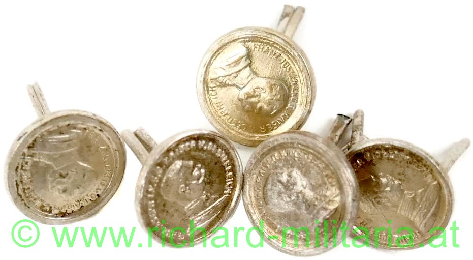 Silberne Tapferkeitsmedaille Kaiser Franz Josef - Auflage für die Feldspange, 2 Splinte, Bronze versilbert, DM: 9mm